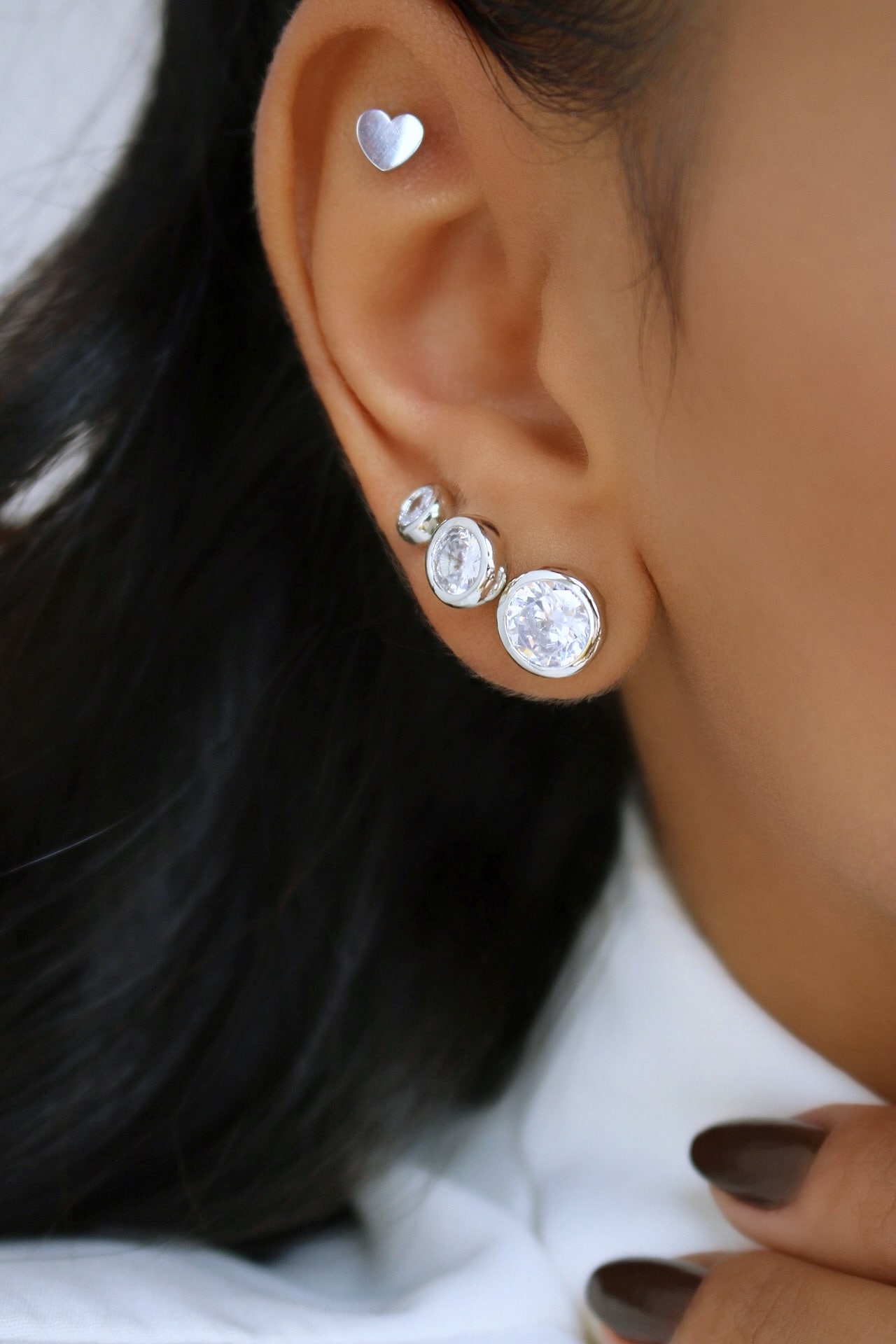 BRINCO ZIRCONIA ENCAIXE METADE LISO E METADE CRAVEJADO