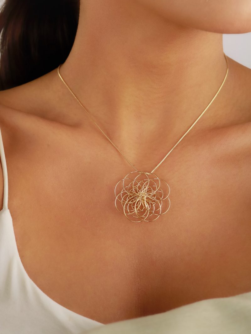 GARGANTILHA PEROLA COM FLOR PENDURADA E PEROLAS PEQUENAS 30CM