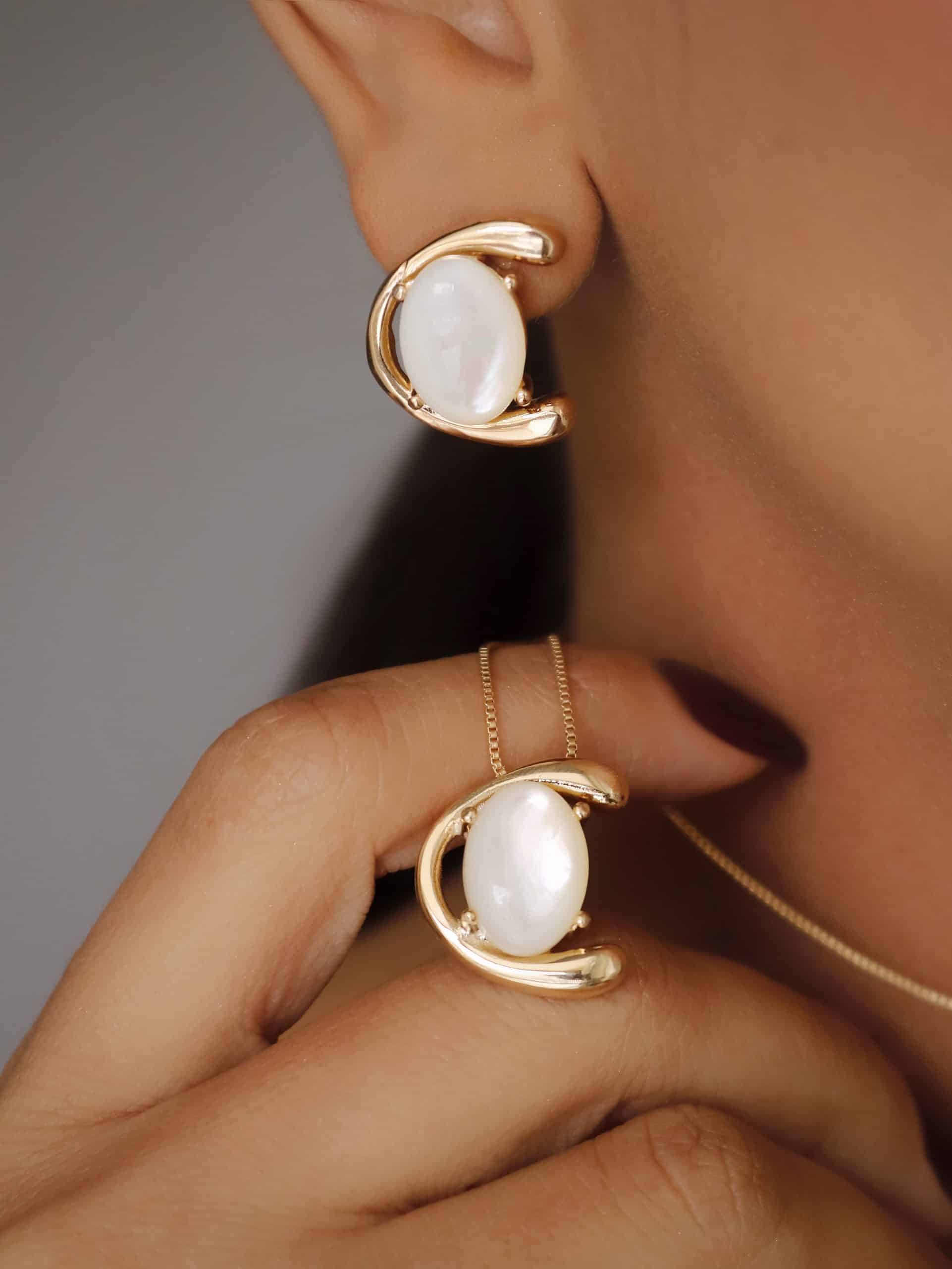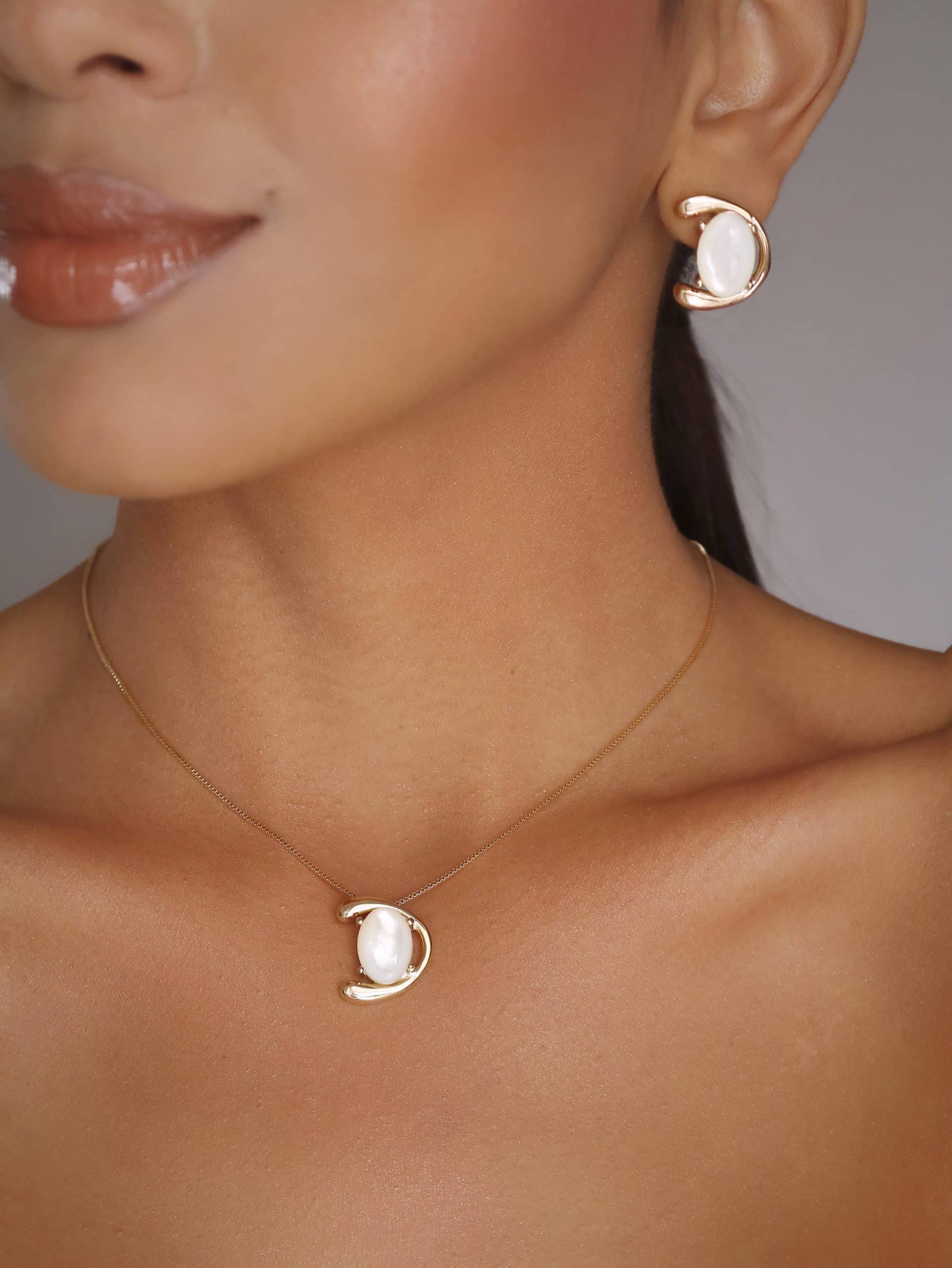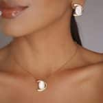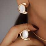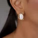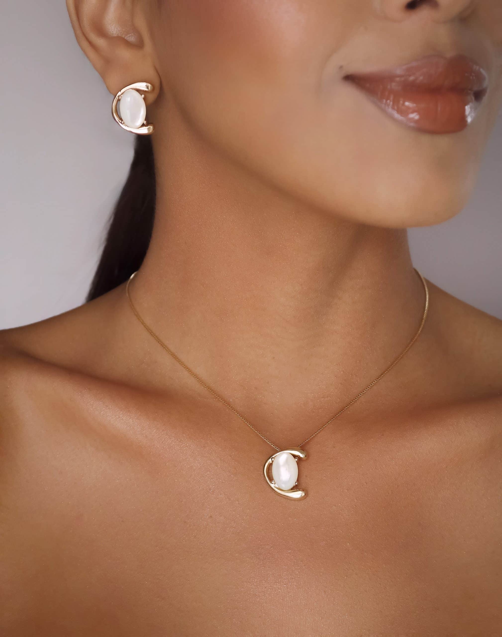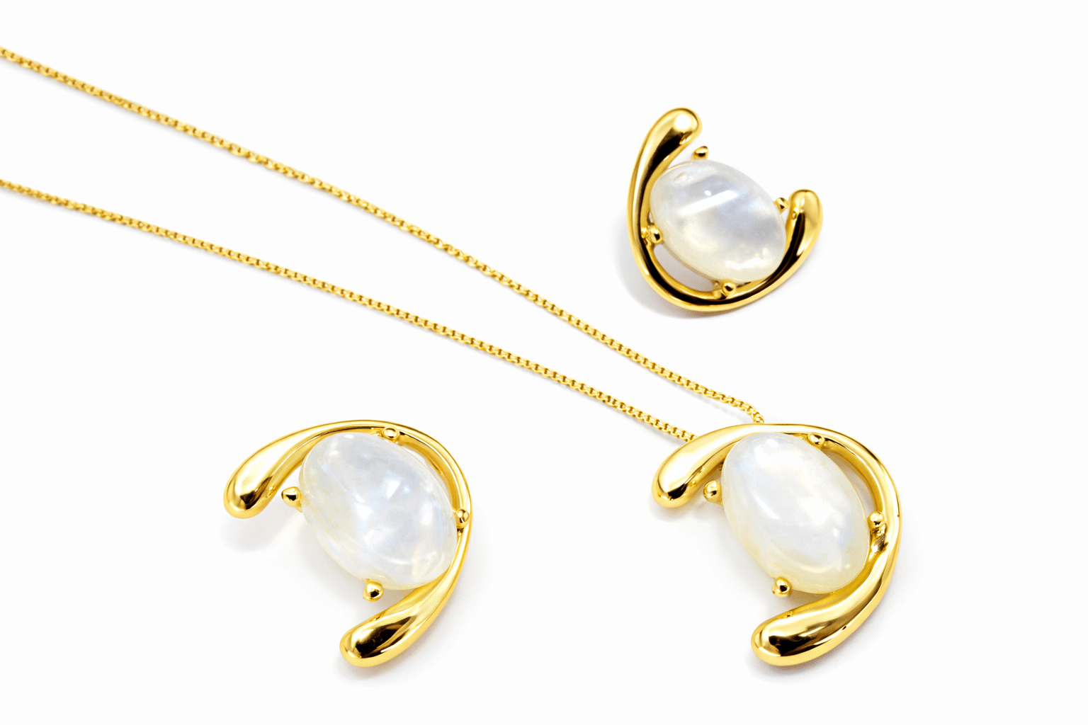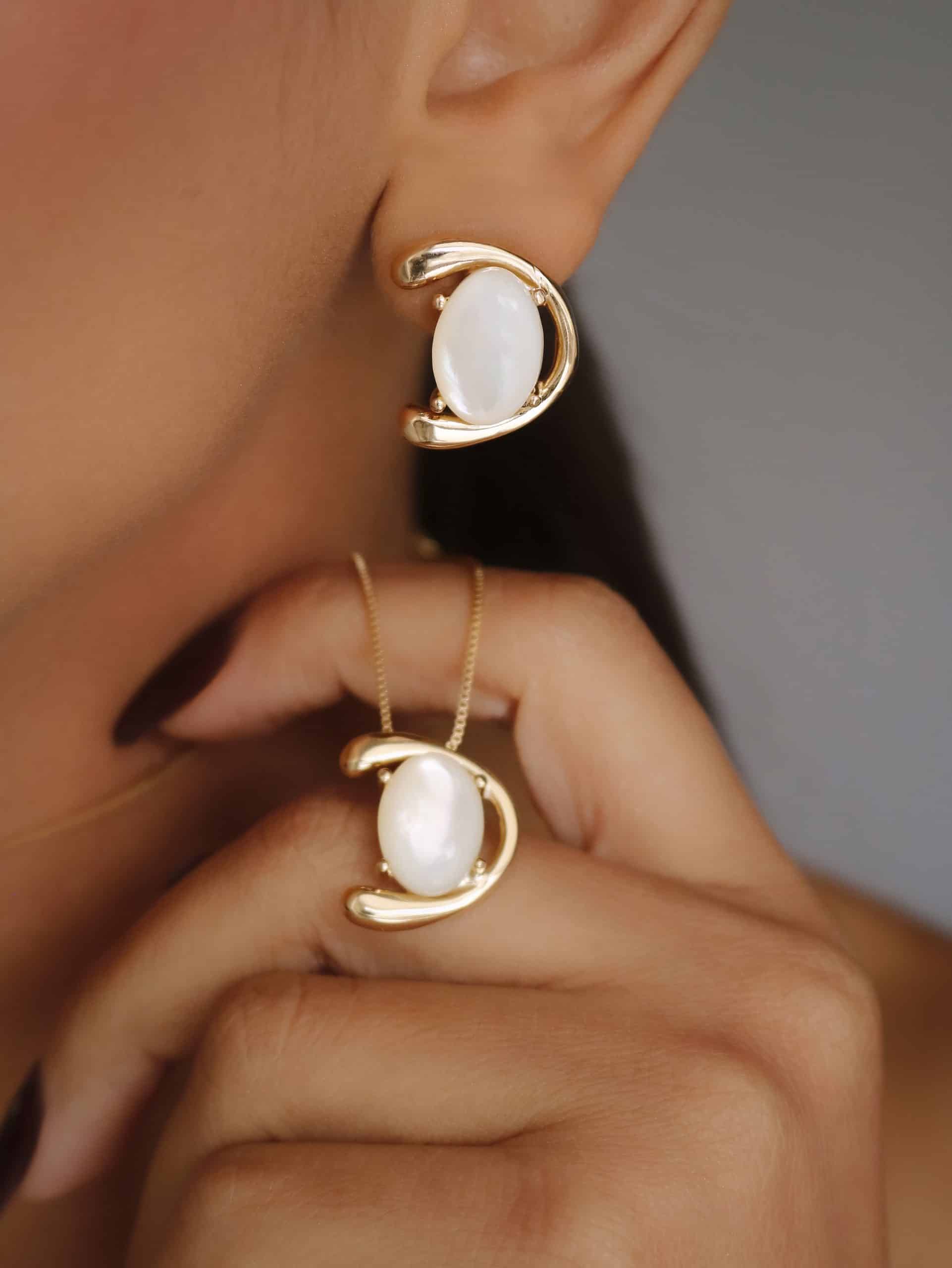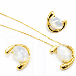 CONJUNTO LISO MEIA LUA COM UMA PEDRA OVAL NO MEIO 17.7 MM 40CM