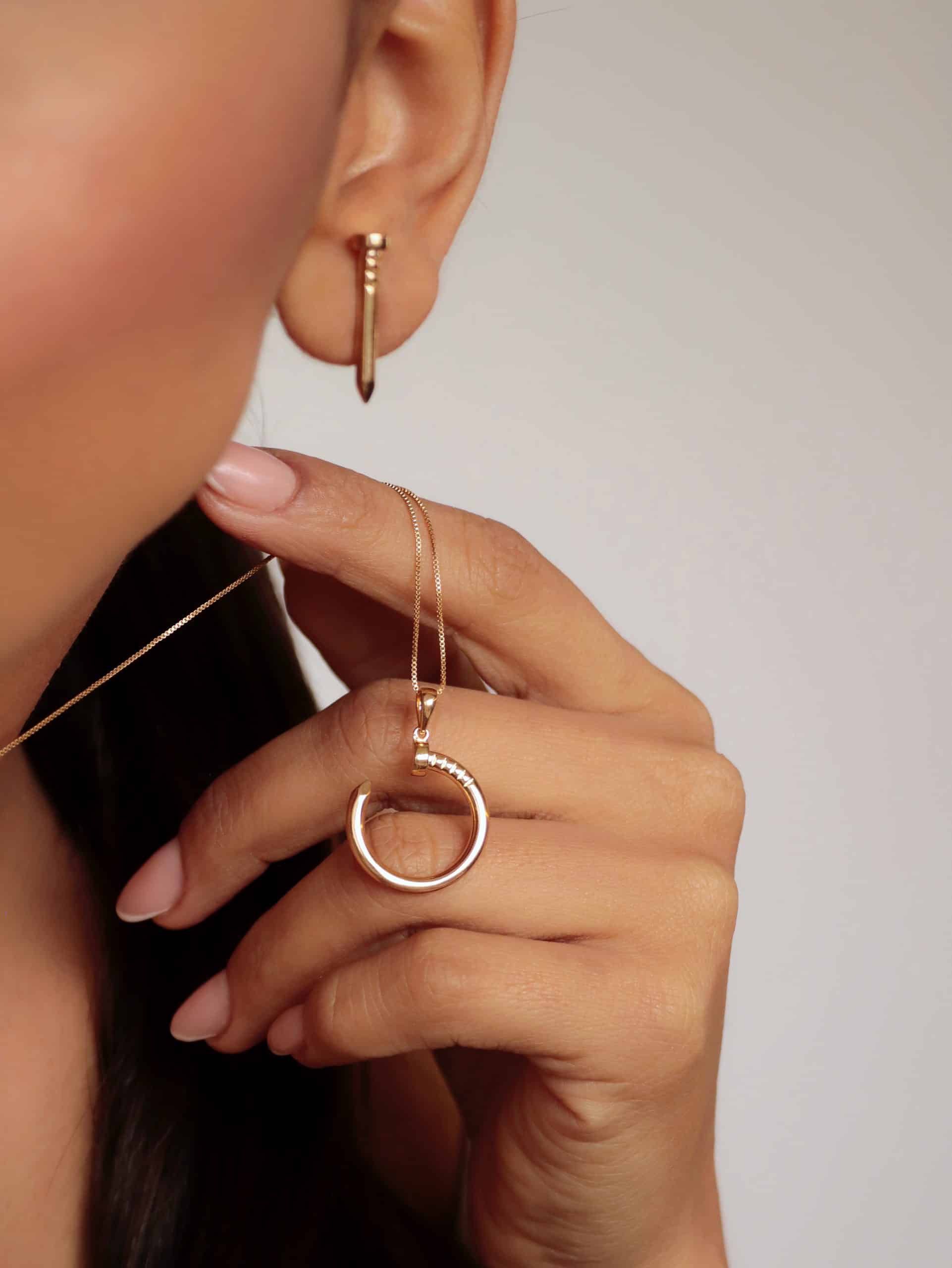 CONJUNTO ZIRCONIA PREGO COM O PINGENTE PREGO CURVADO E PARTES CRAVEJADAS 40CM