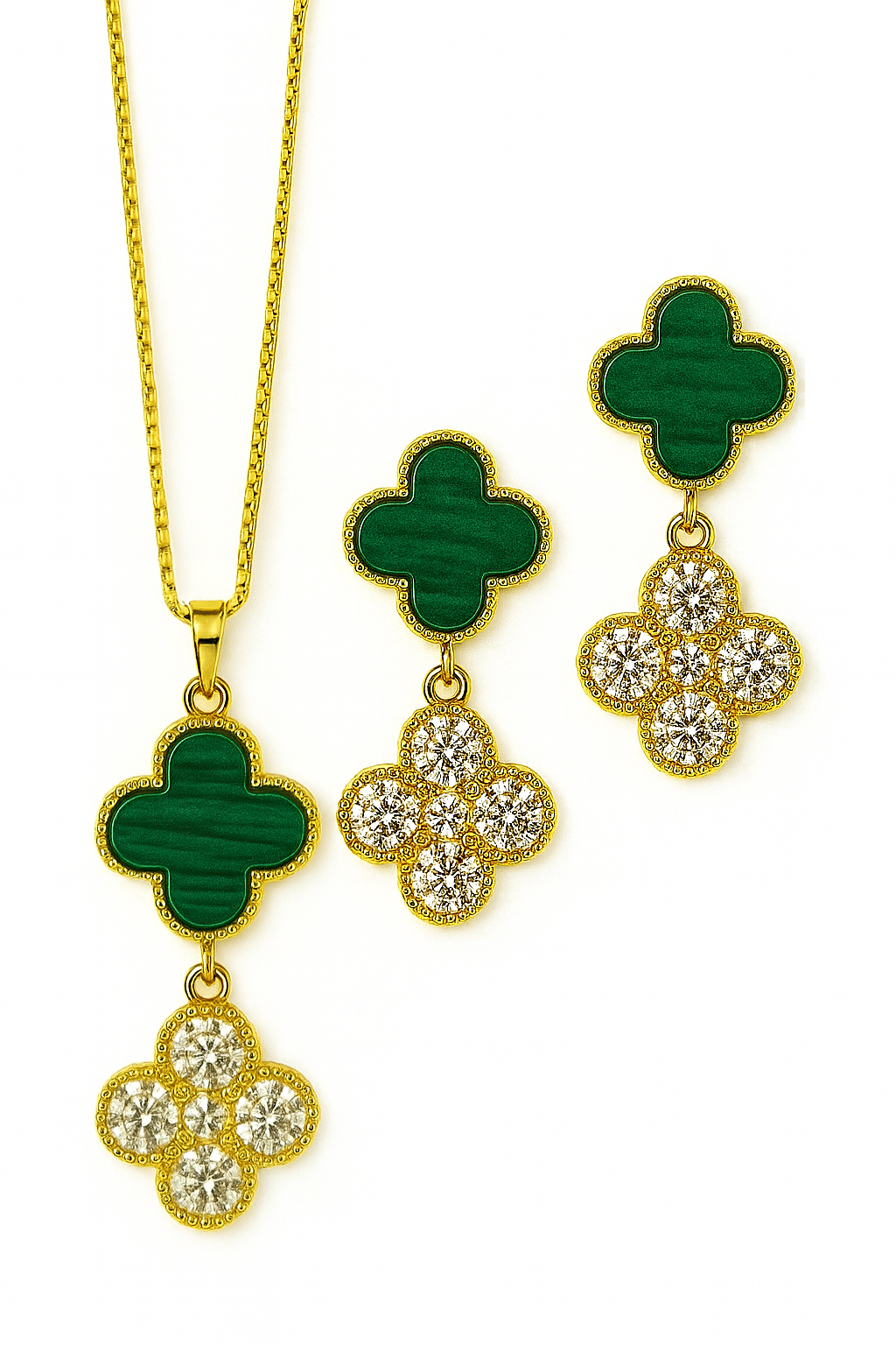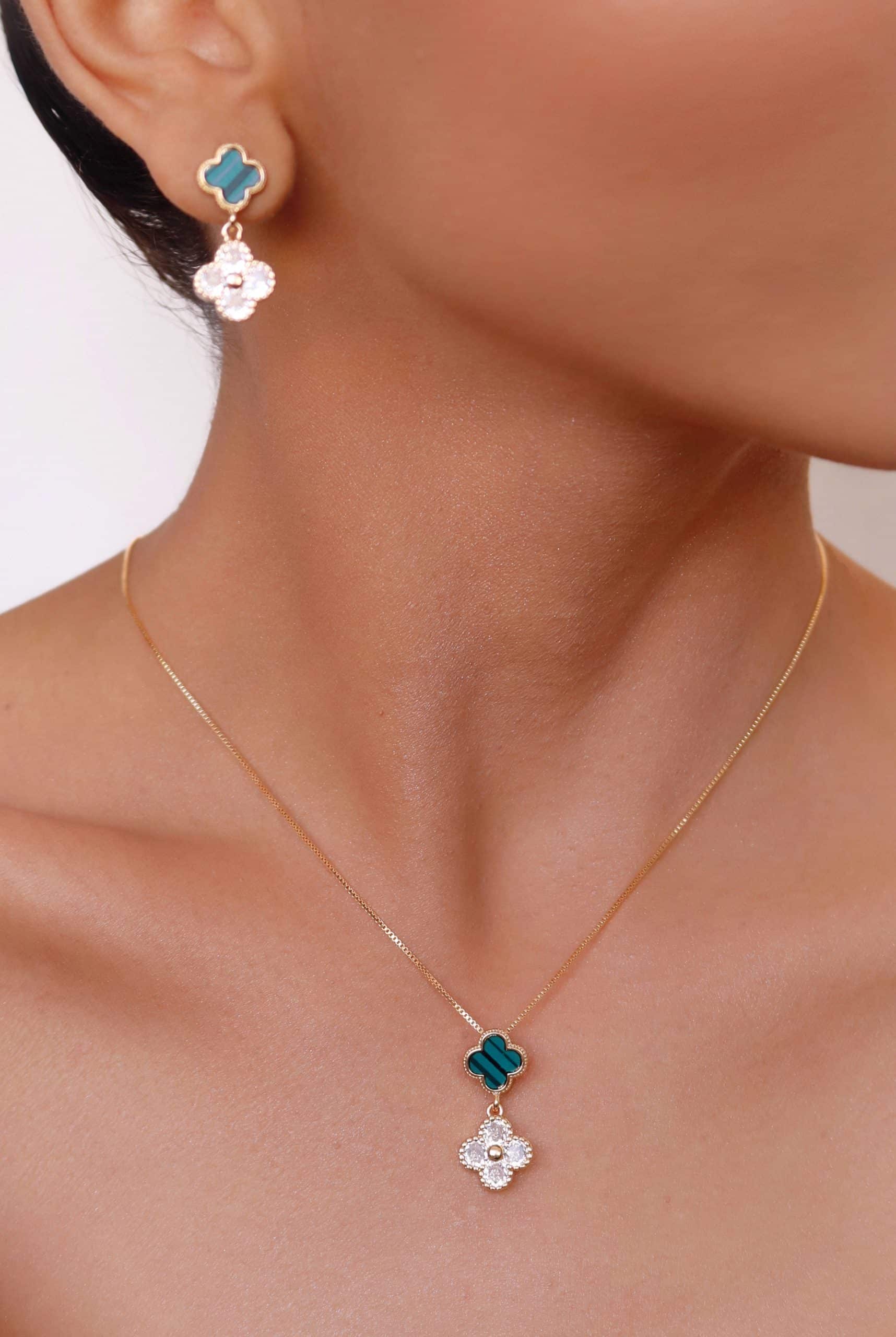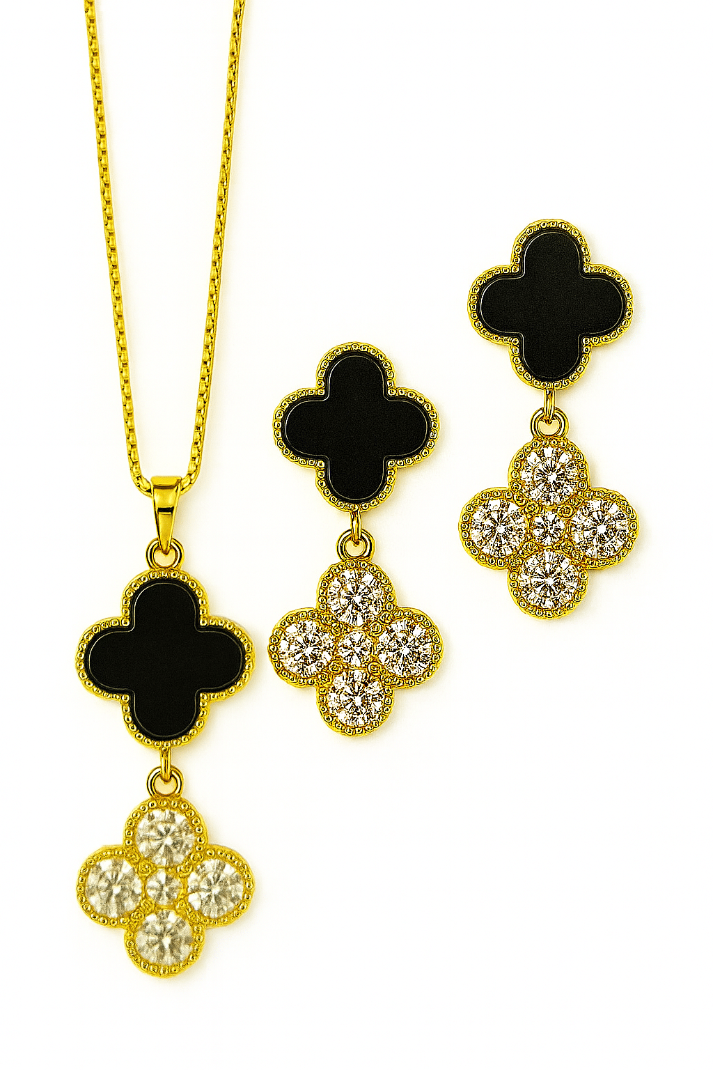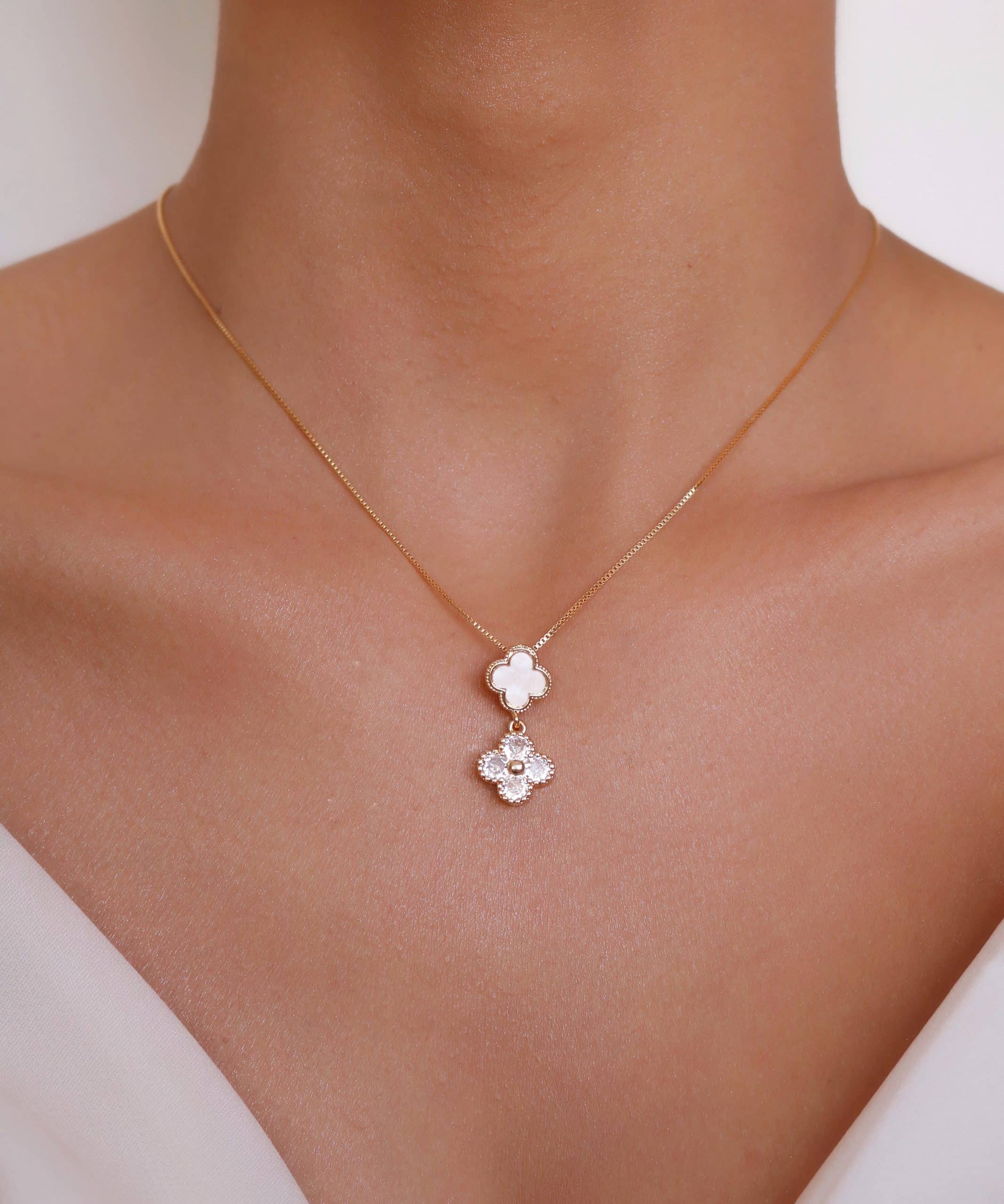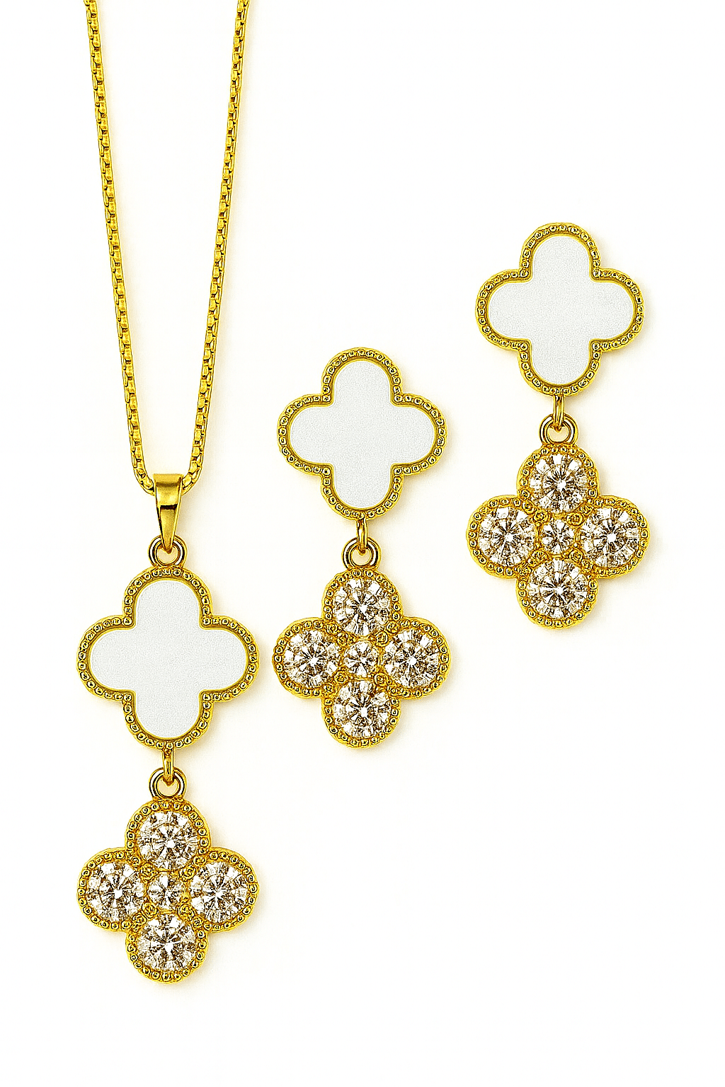 CONJUNTO ZIRCONIA COM UMA FLOR CRAVEJADA E A OUTRA COM RESINA CORES 40CM