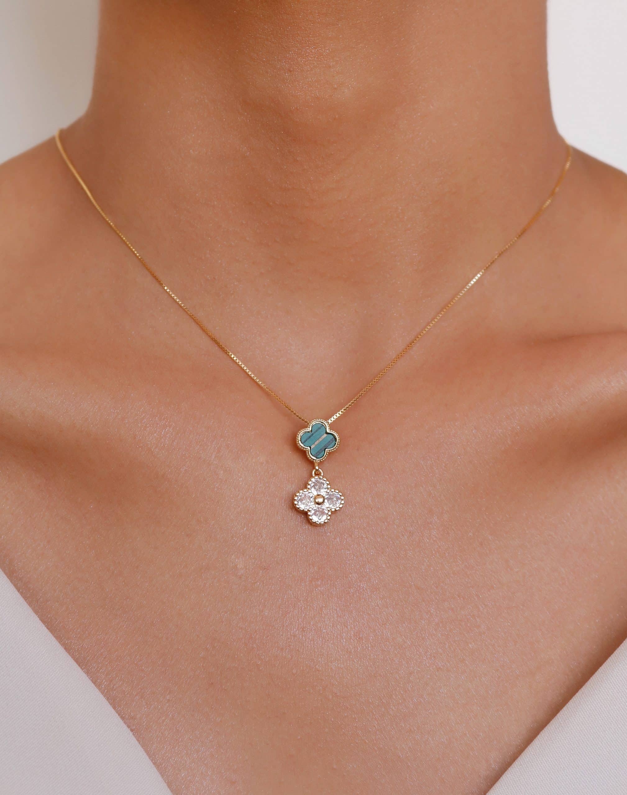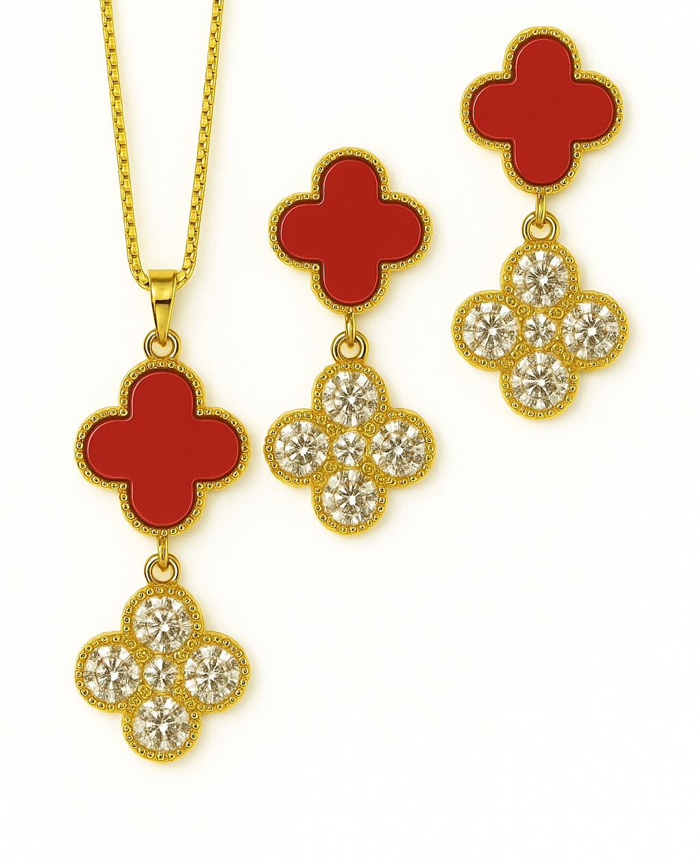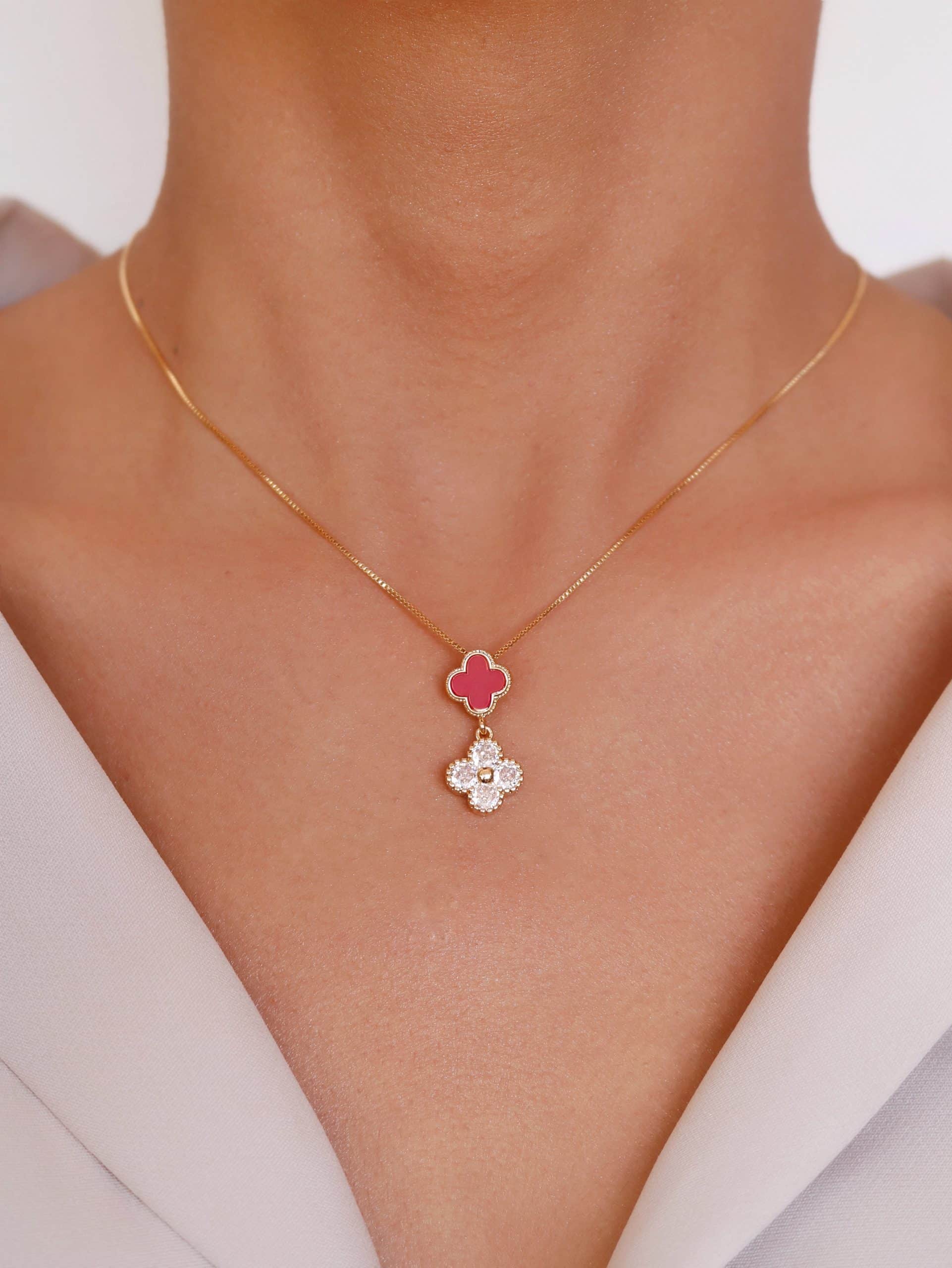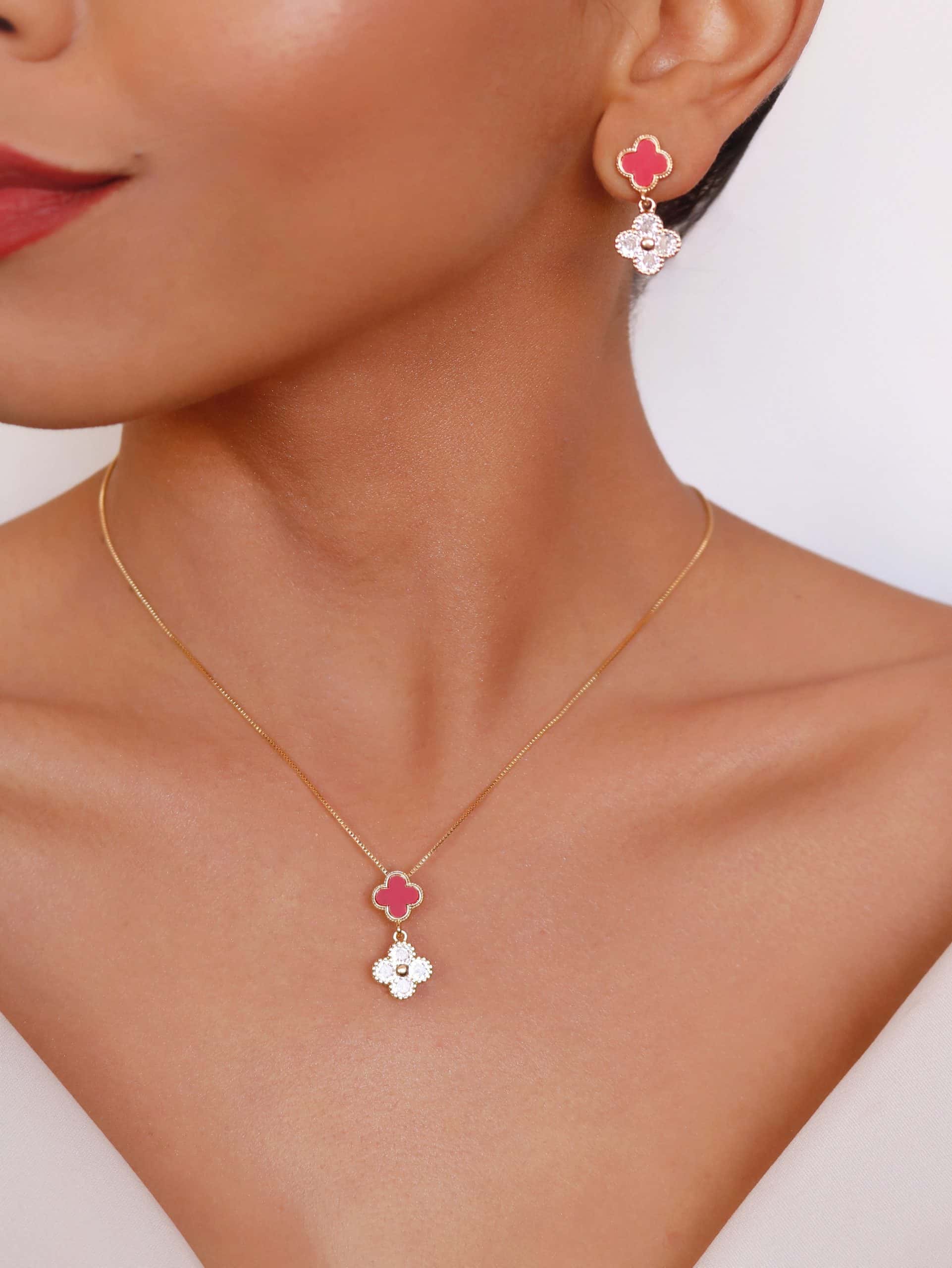 CONJUNTO ZIRCONIA COM UMA FLOR CRAVEJADA E A OUTRA COM RESINA CORES 40CM