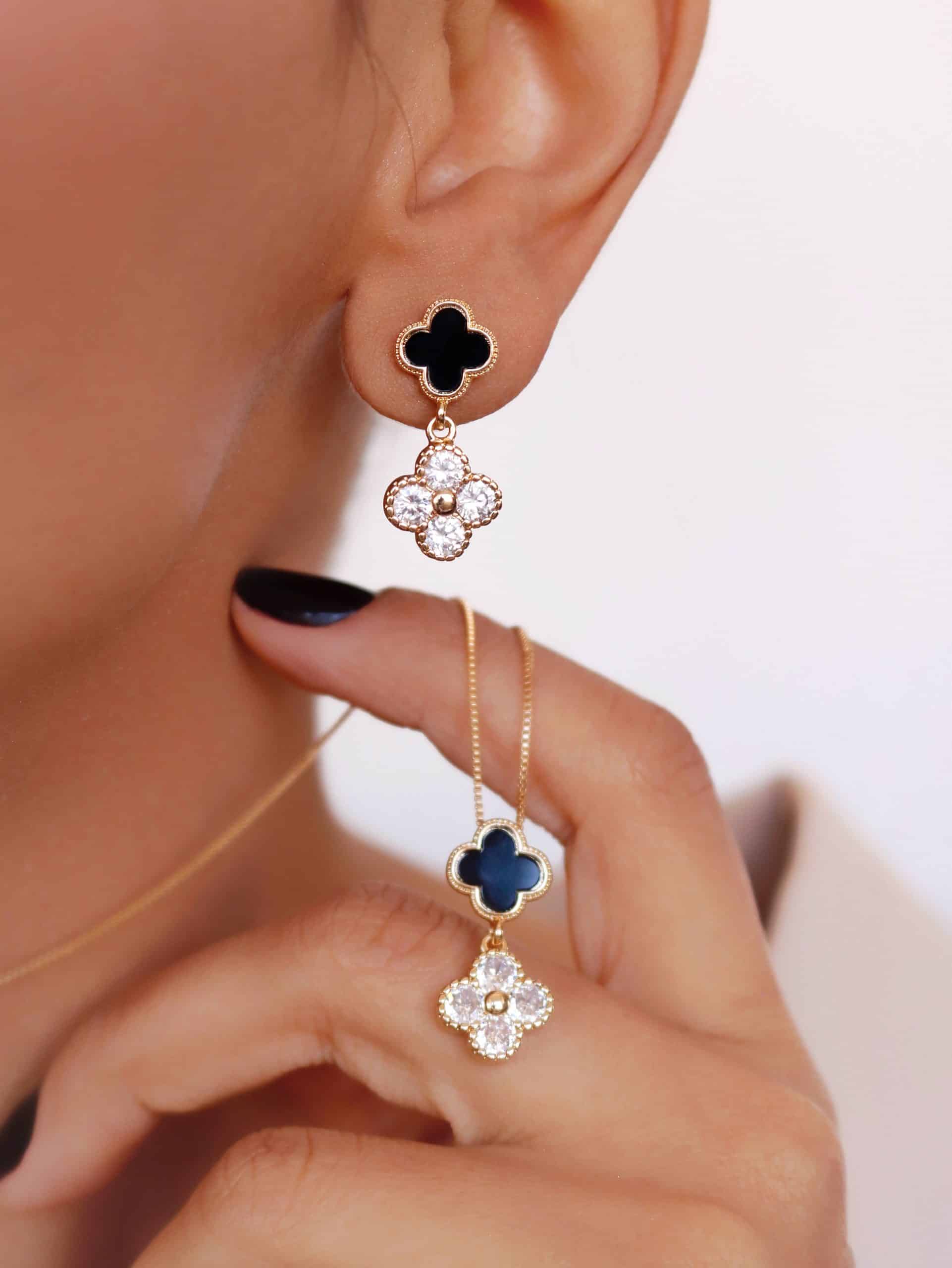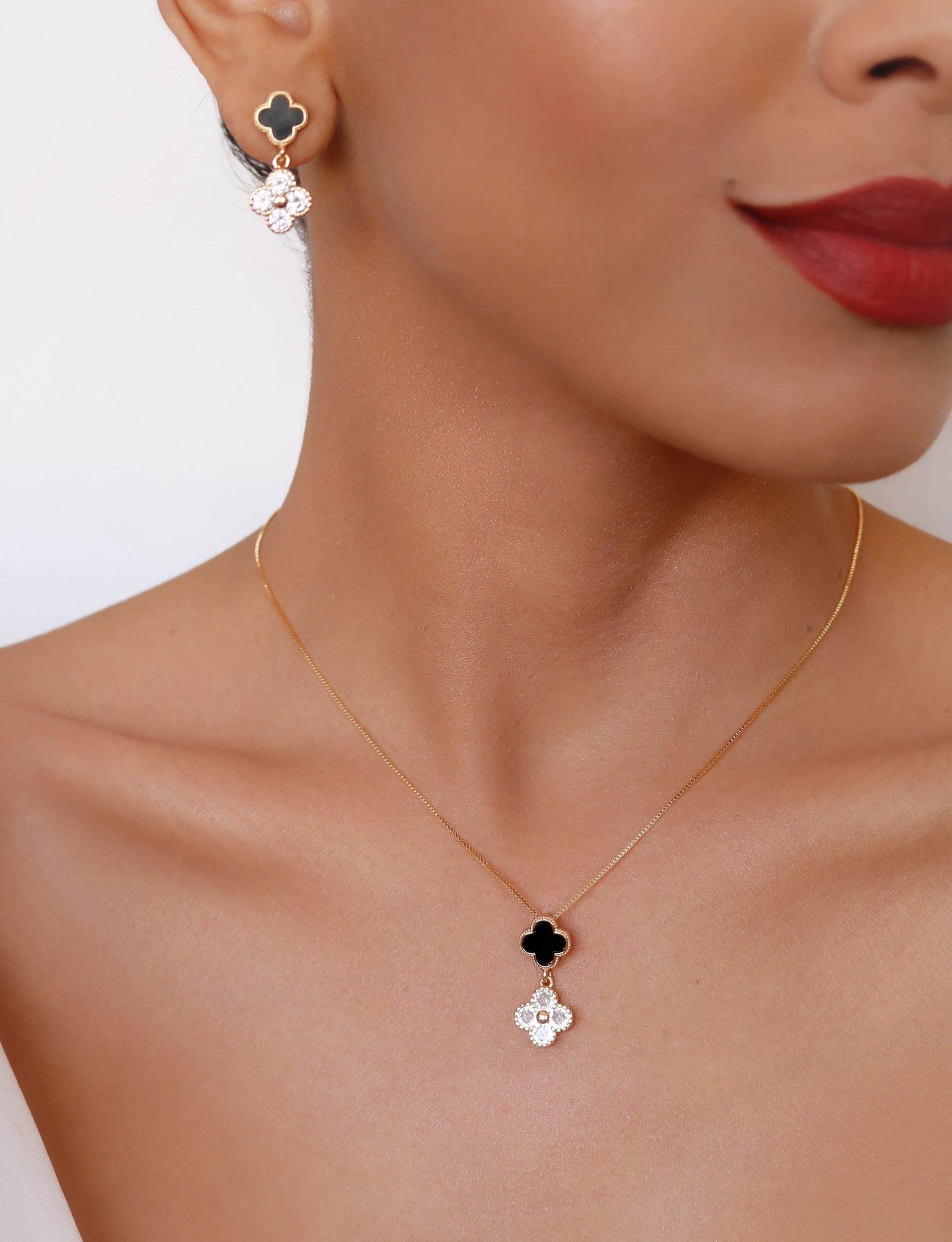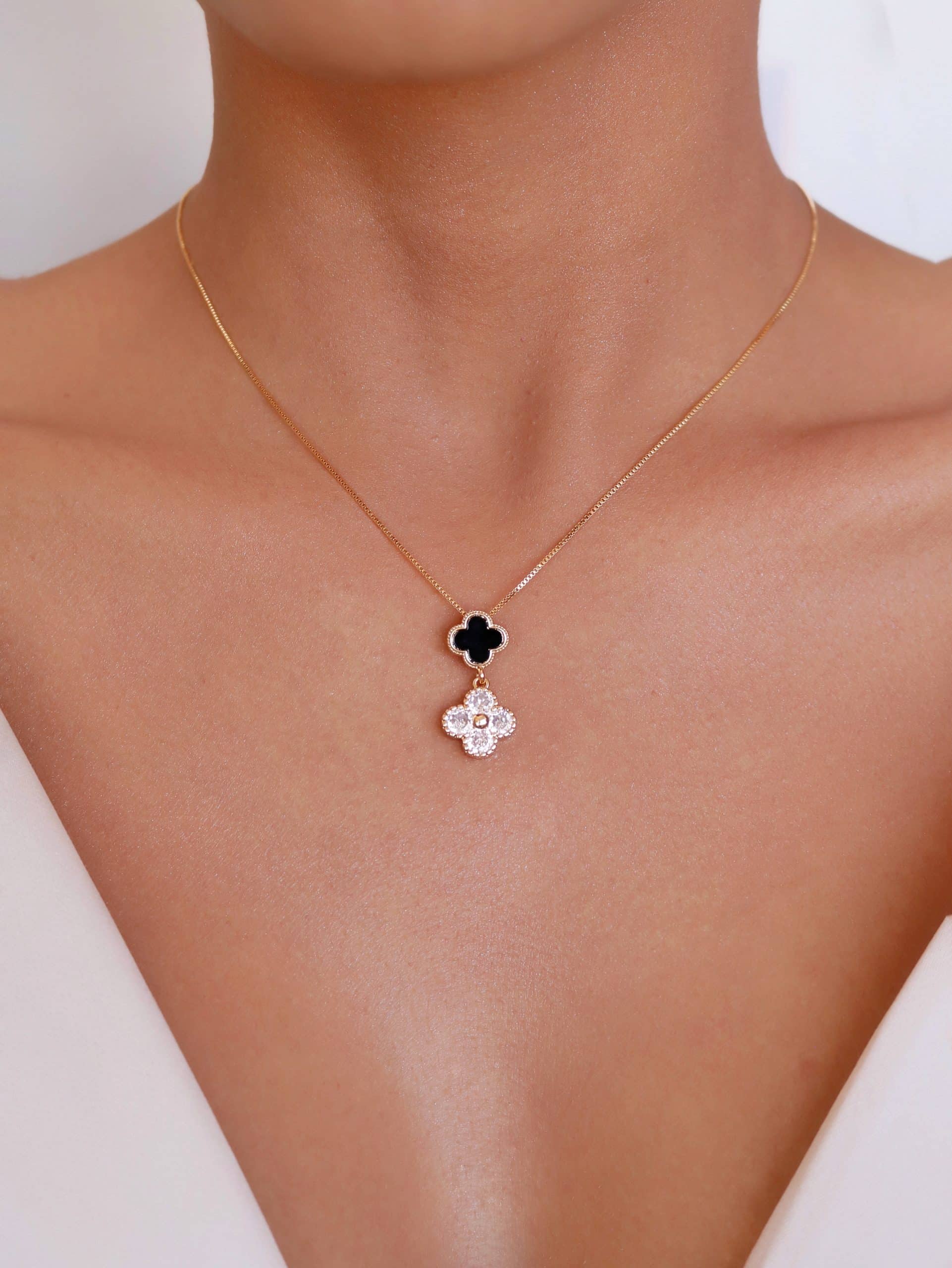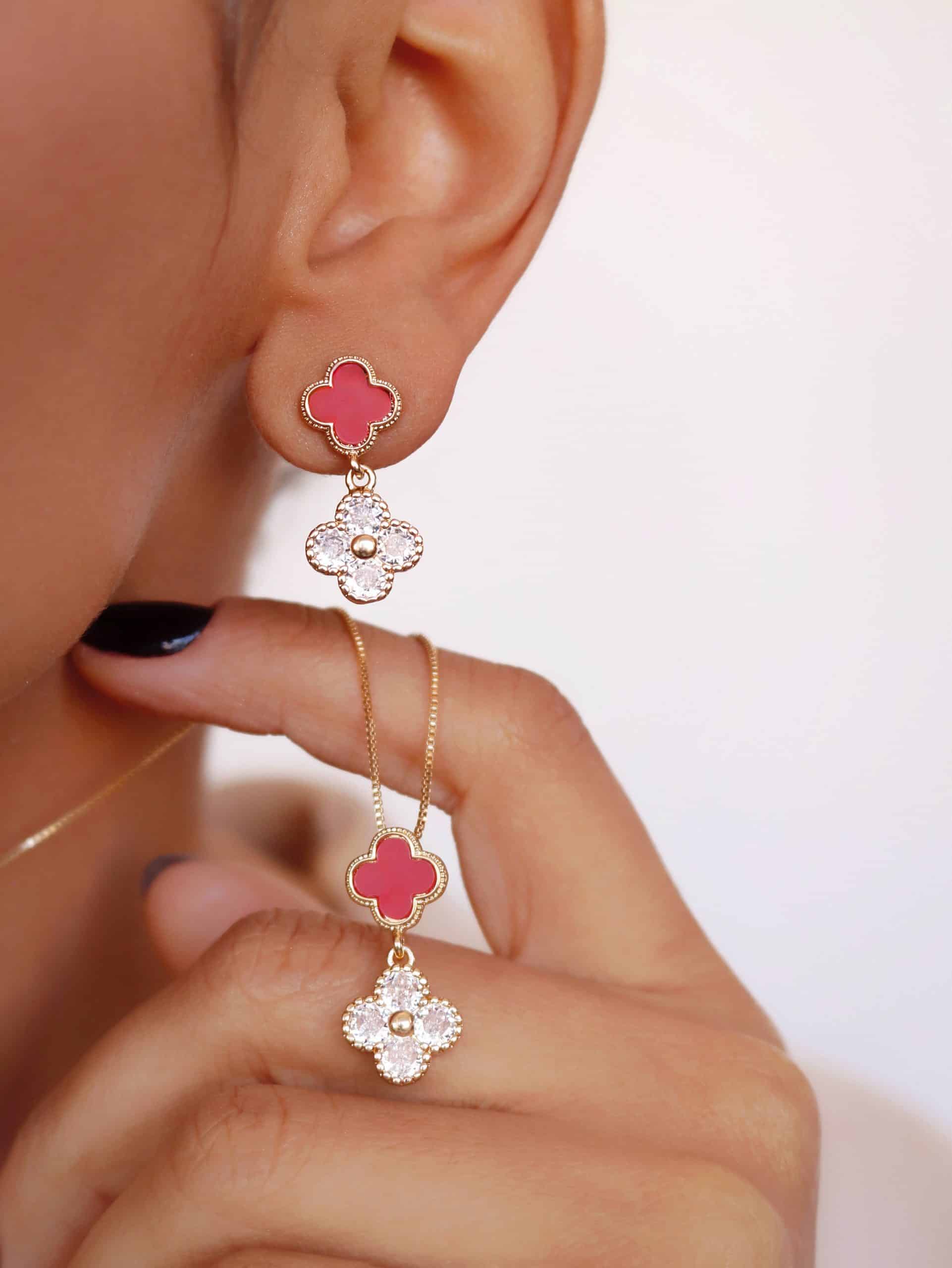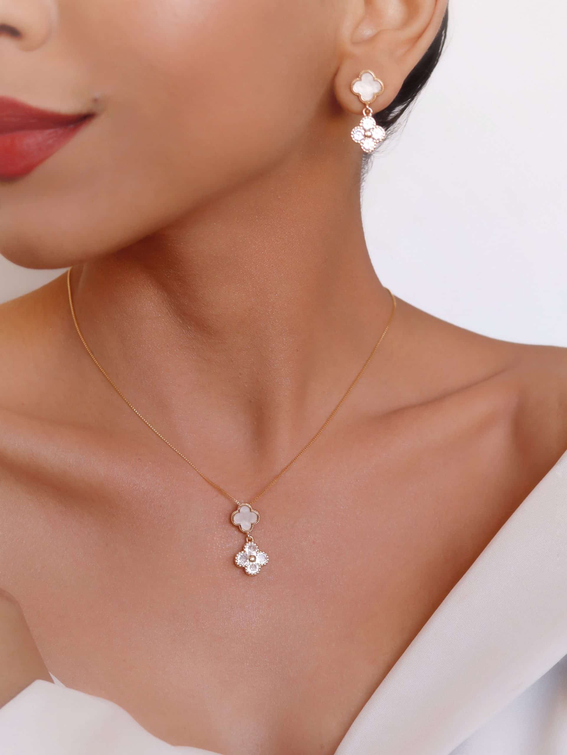 CONJUNTO ZIRCONIA COM UMA FLOR CRAVEJADA E A OUTRA COM RESINA CORES 40CM