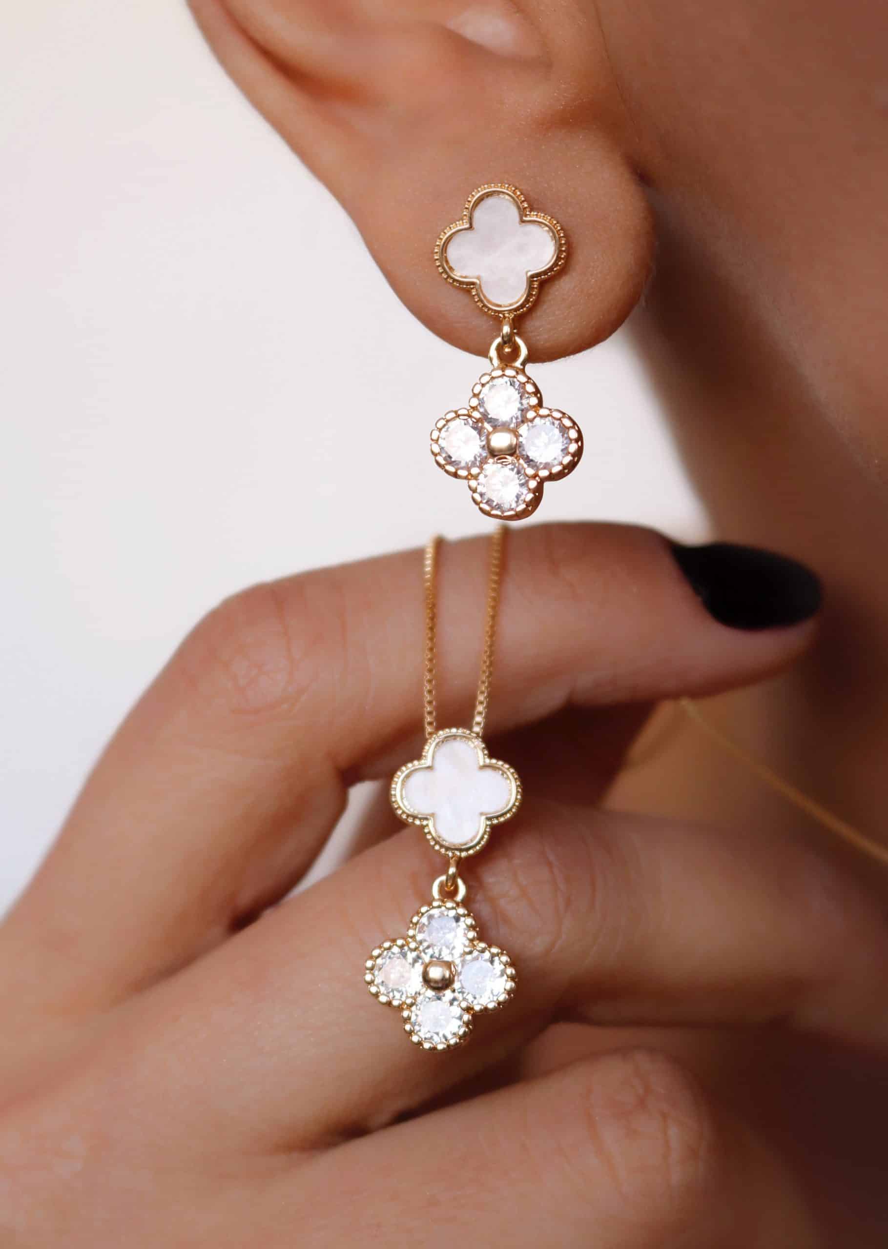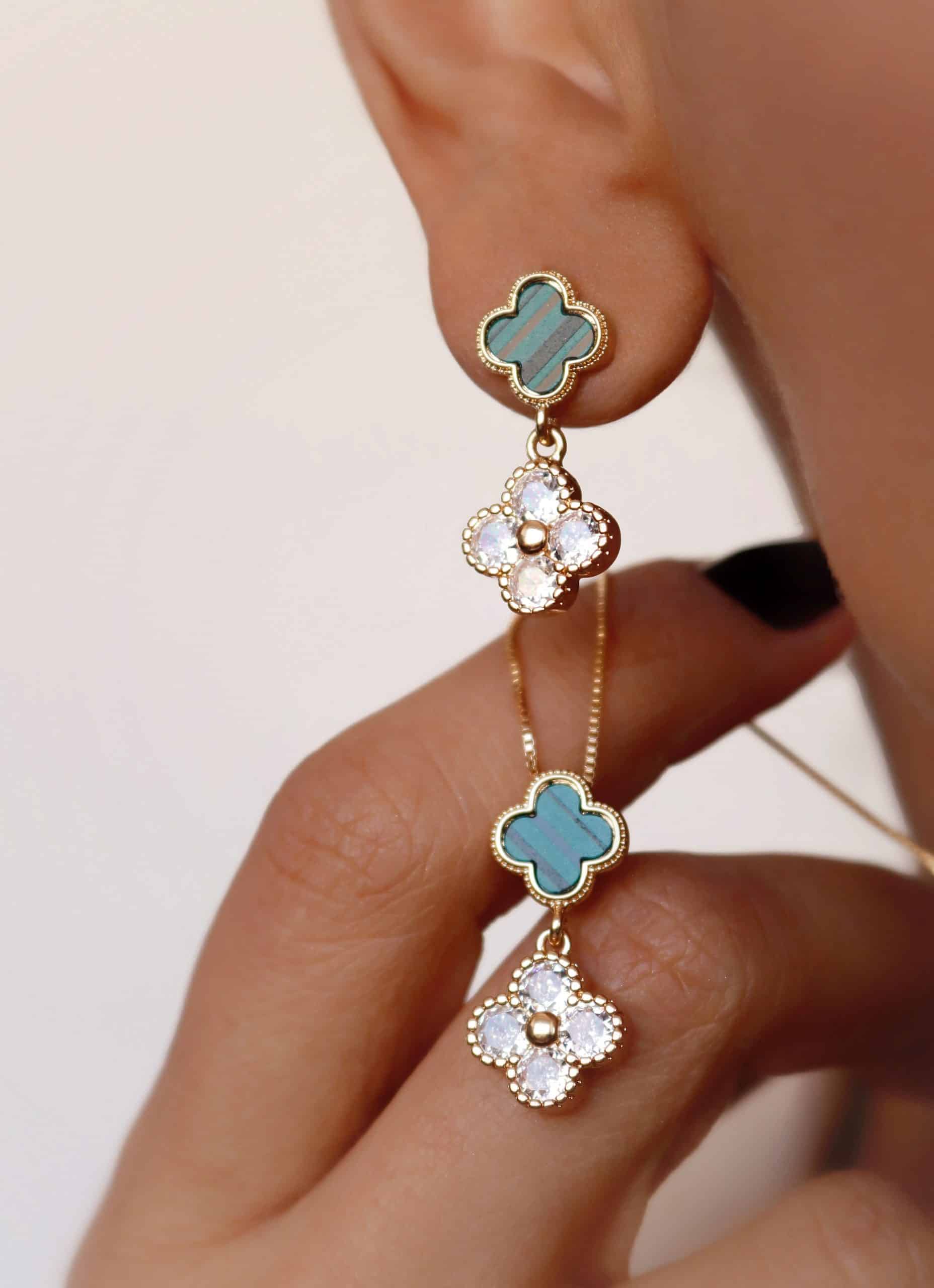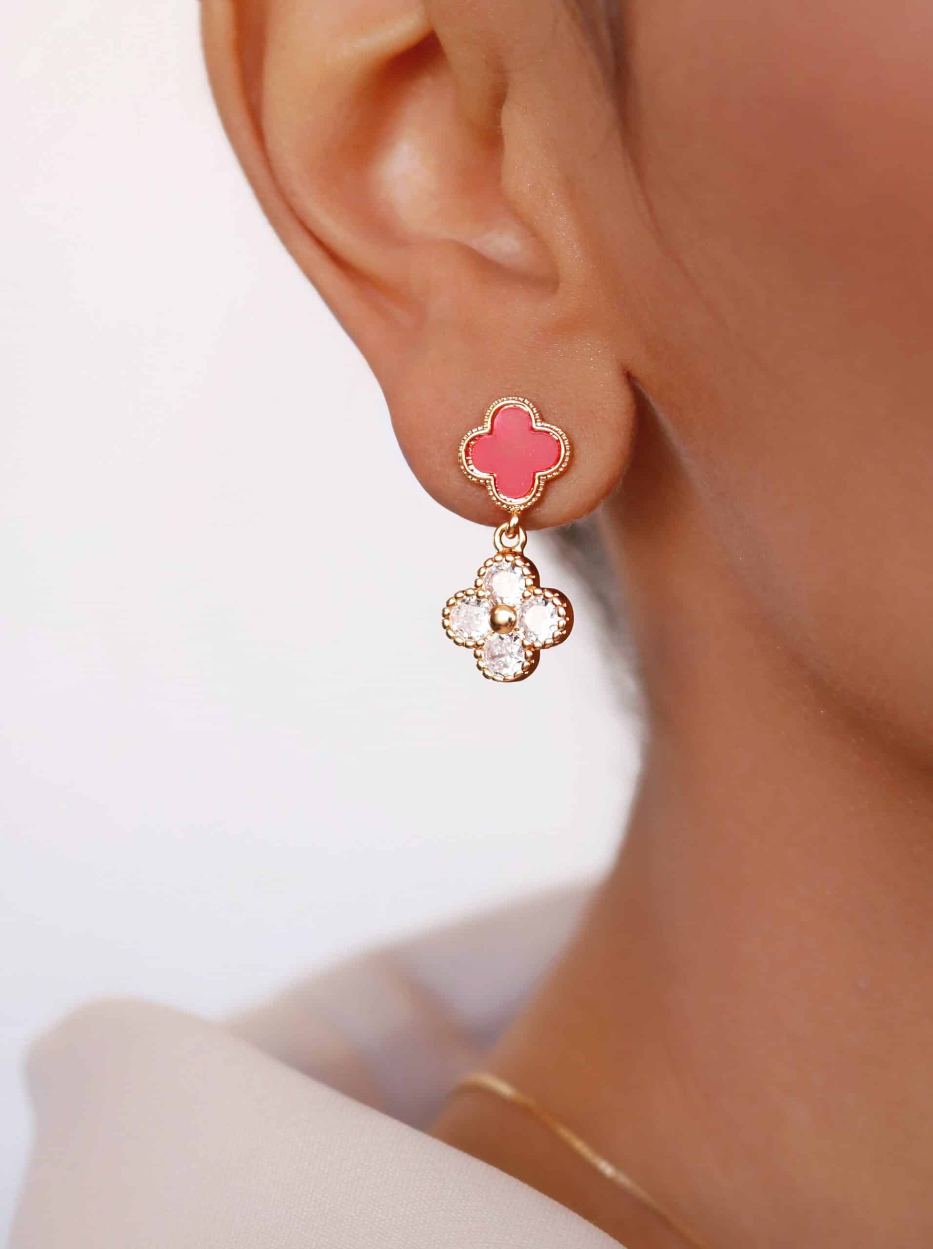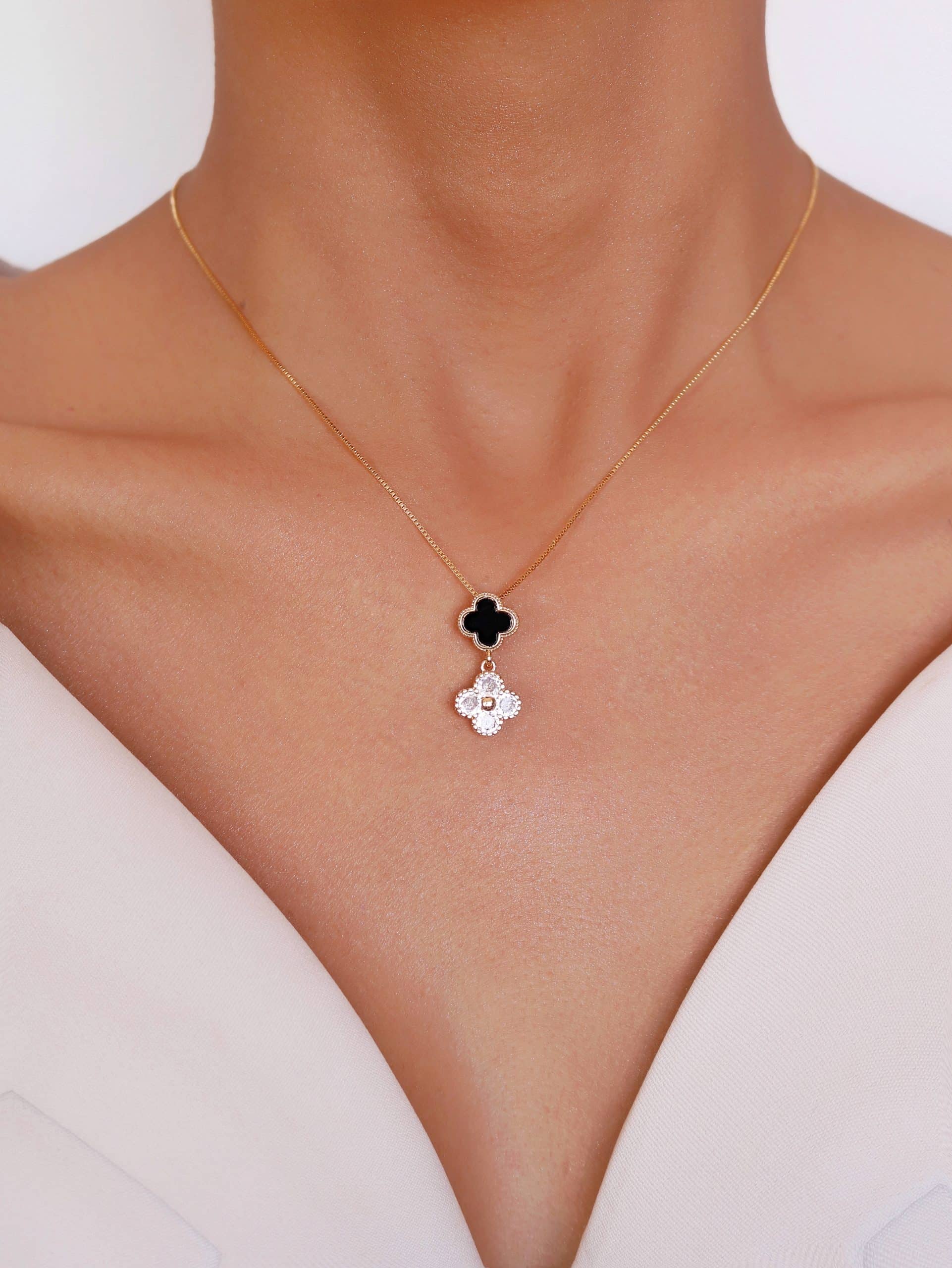 CONJUNTO ZIRCONIA COM UMA FLOR CRAVEJADA E A OUTRA COM RESINA CORES 40CM