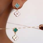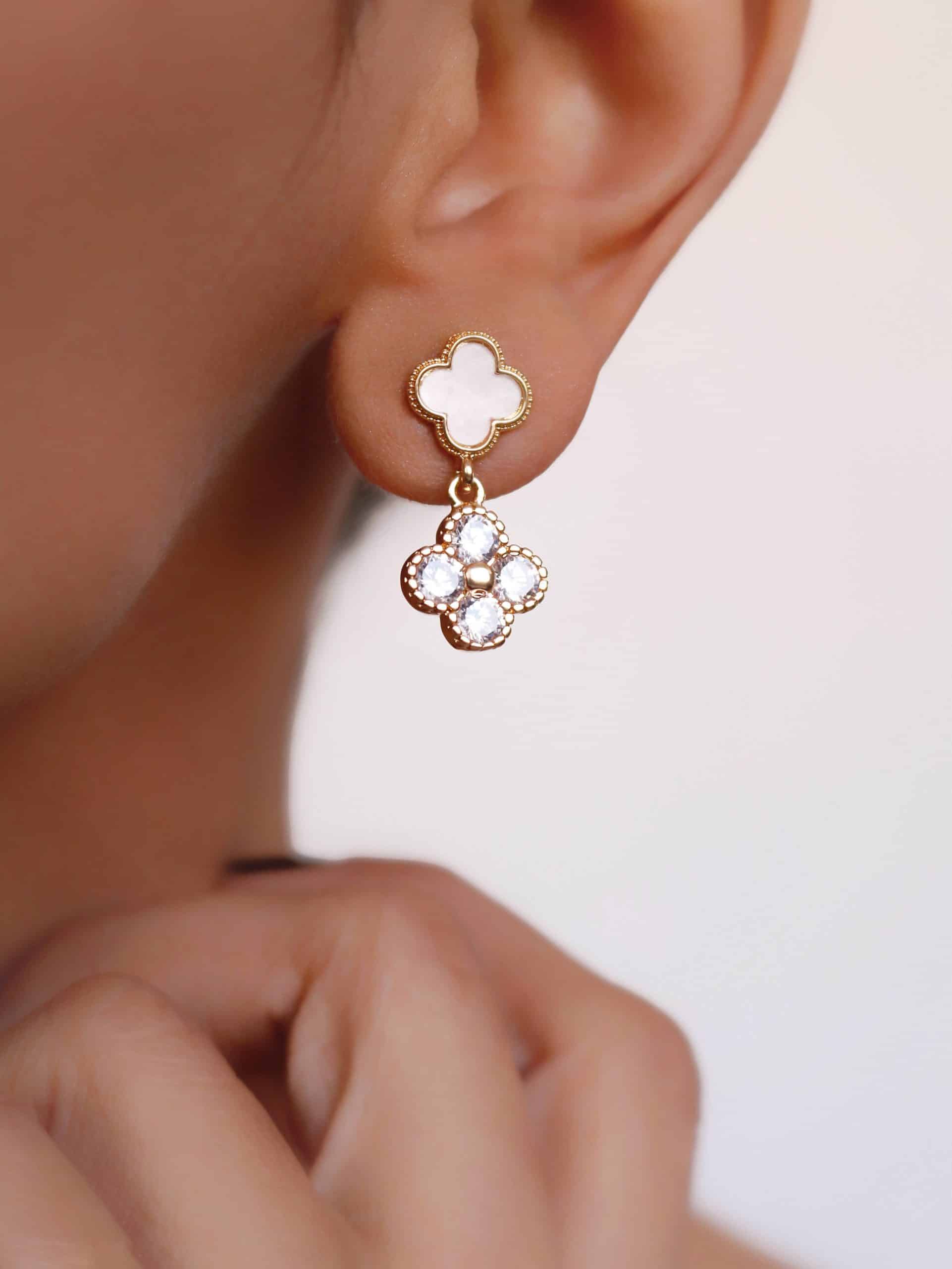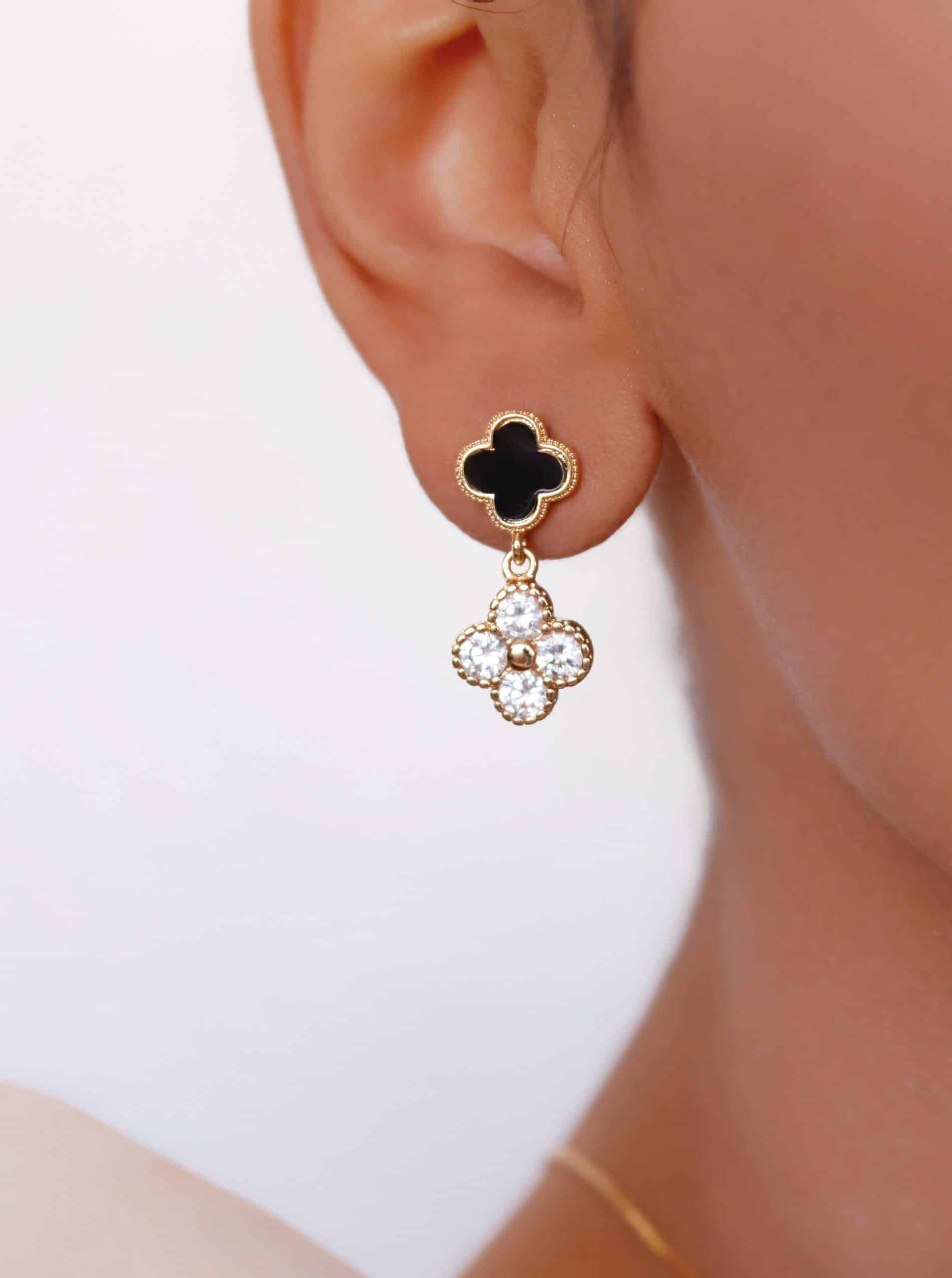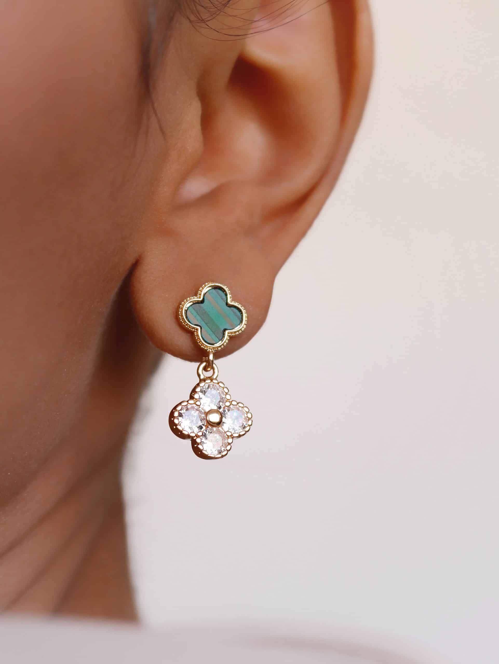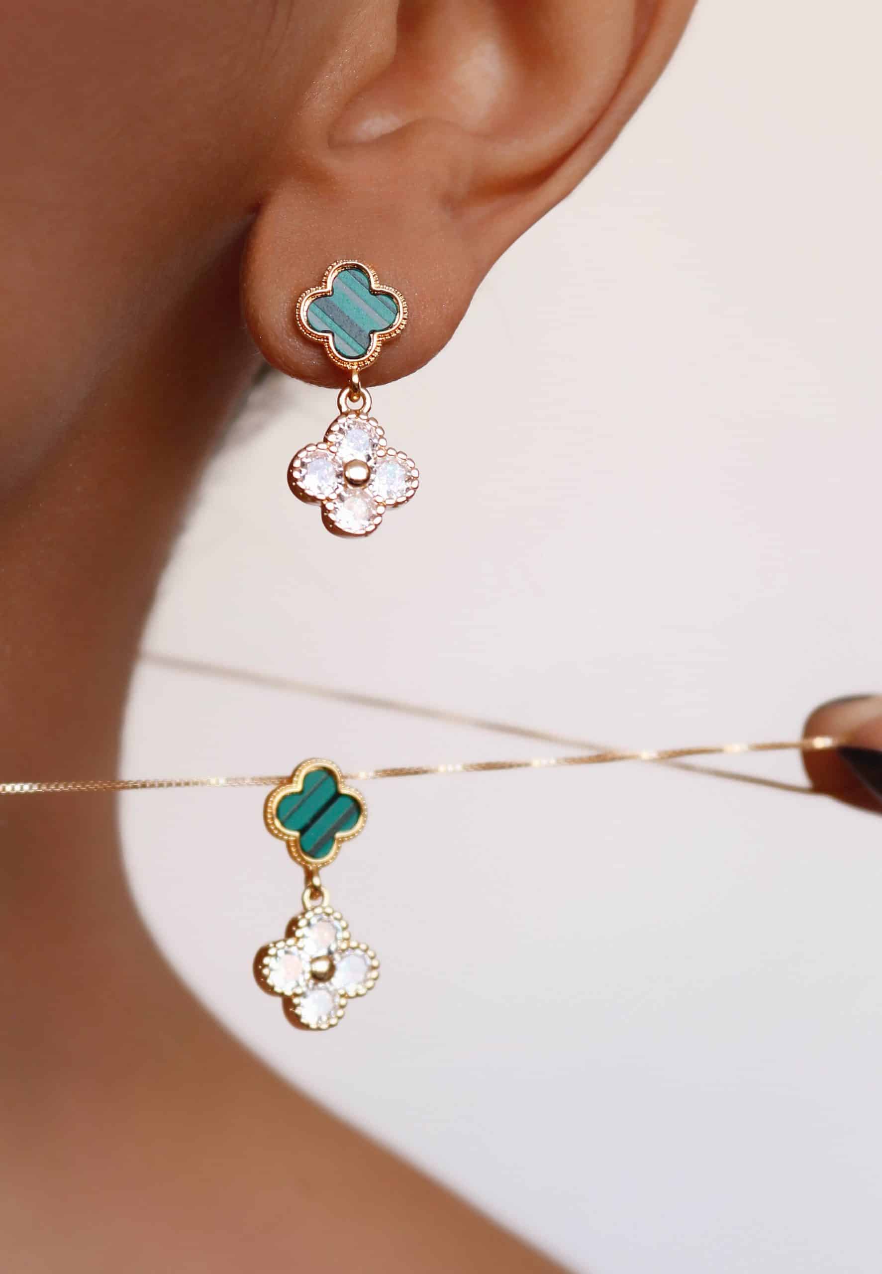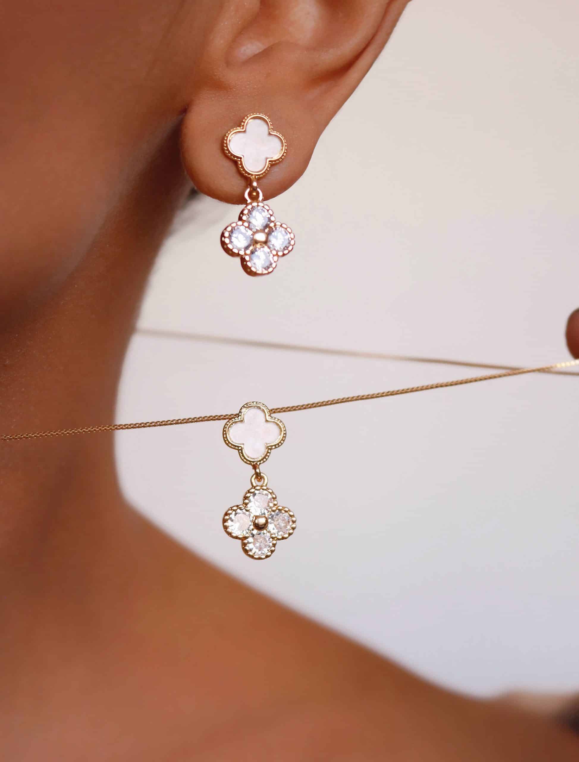 CONJUNTO ZIRCONIA COM UMA FLOR CRAVEJADA E A OUTRA COM RESINA CORES 40CM