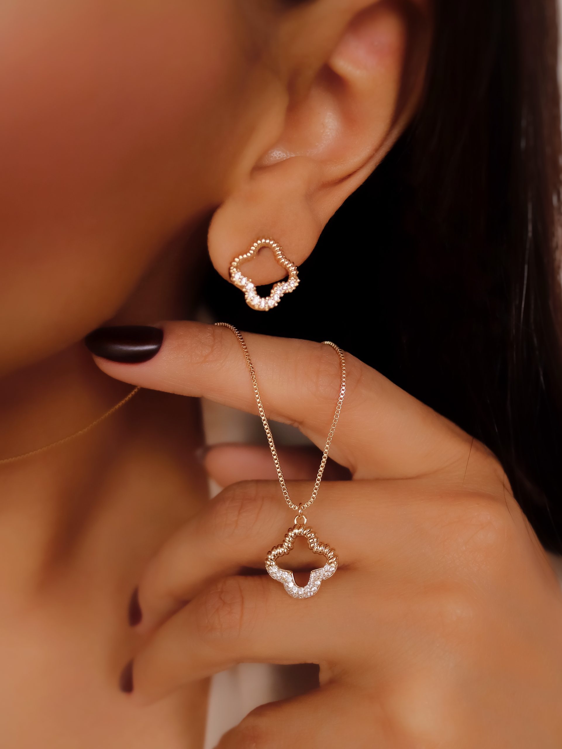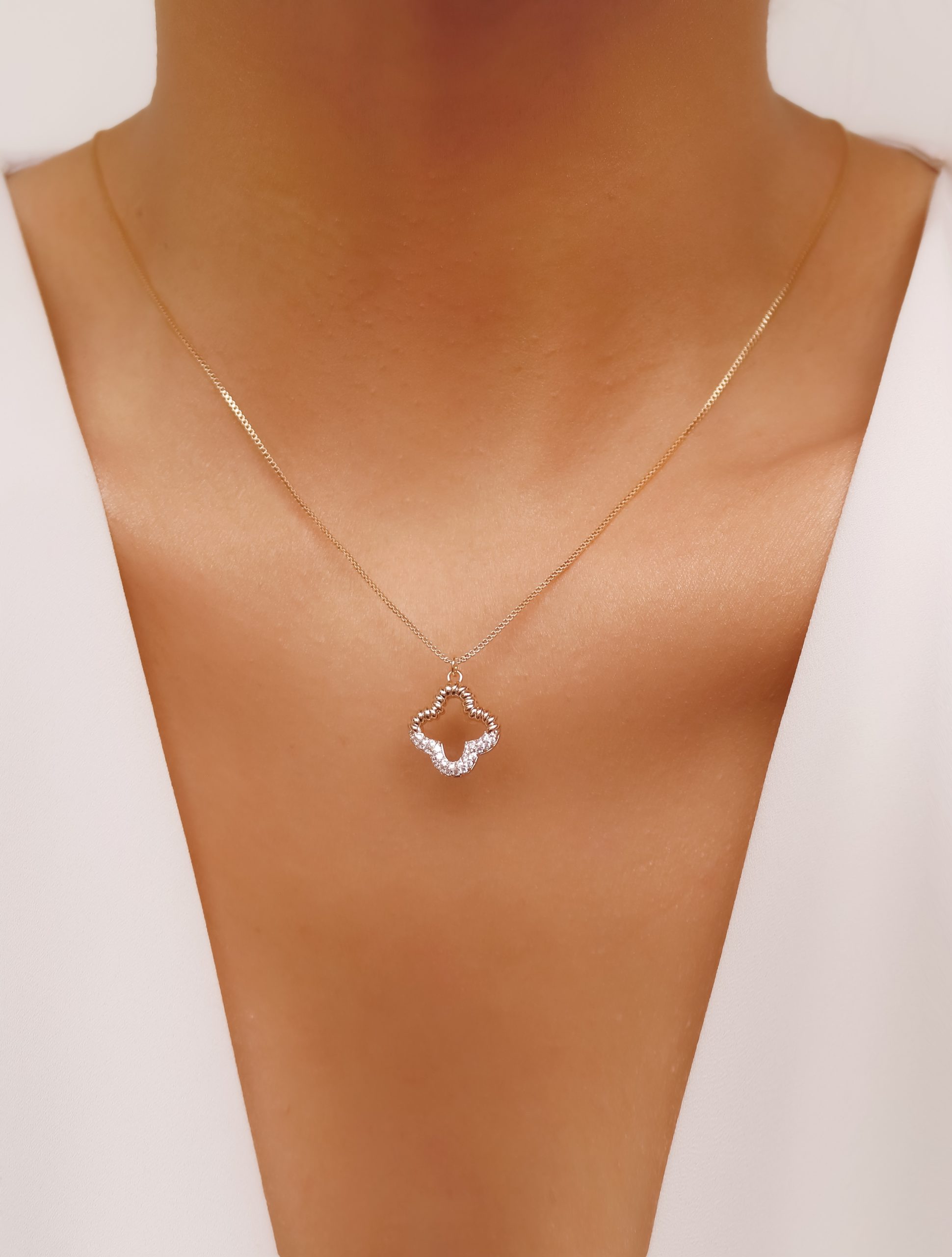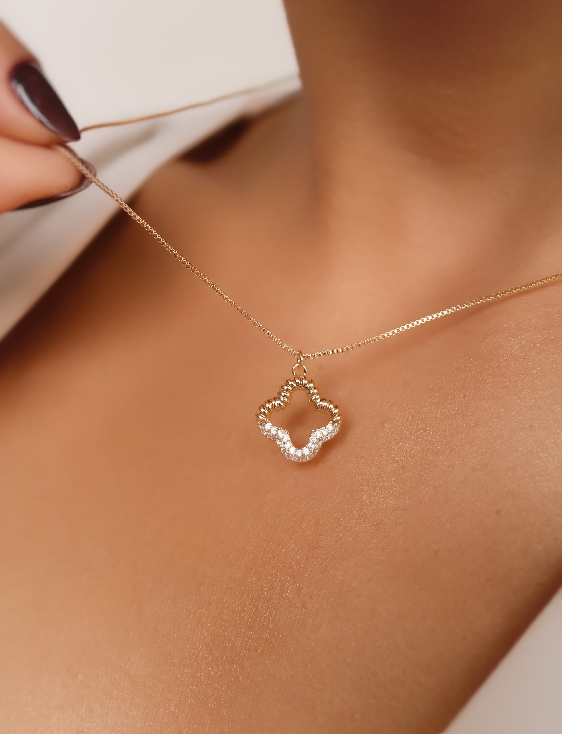 GARGANTILHA ZIRCONIA TREVO TODO CRAVEJADO E VAZADO NAS LATERAIS 40 CM