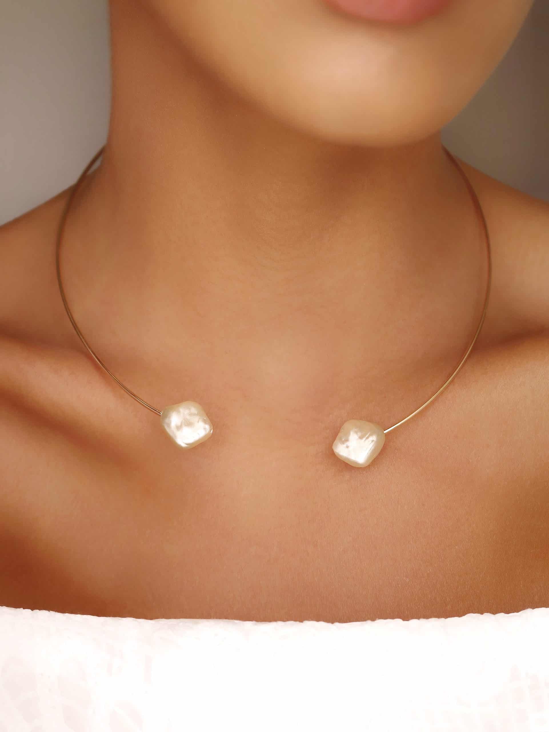 GARGANTILHA PEROLA ARO LISO METADE CANUTILHO COM UMA PEROLA PENDURADA