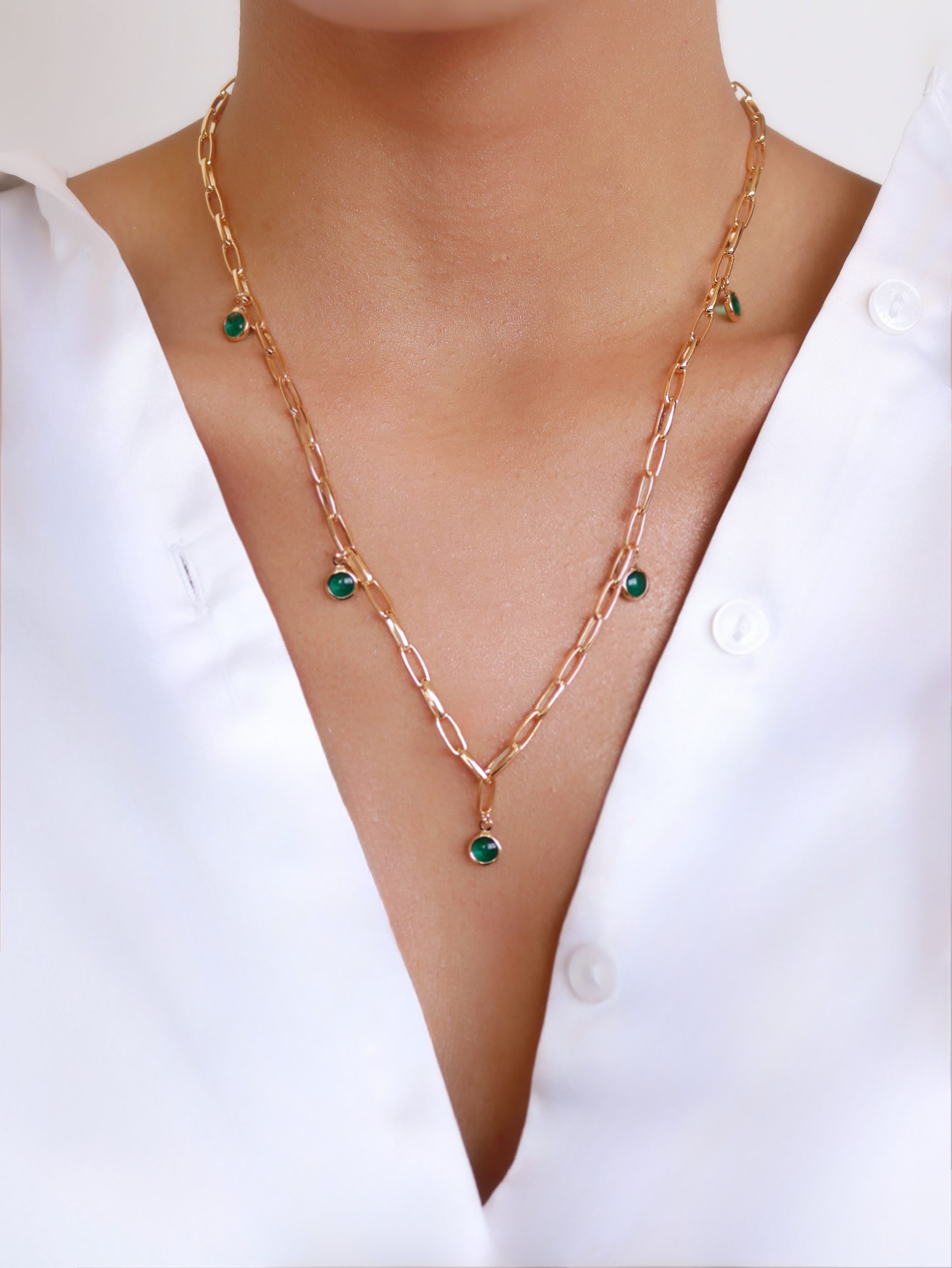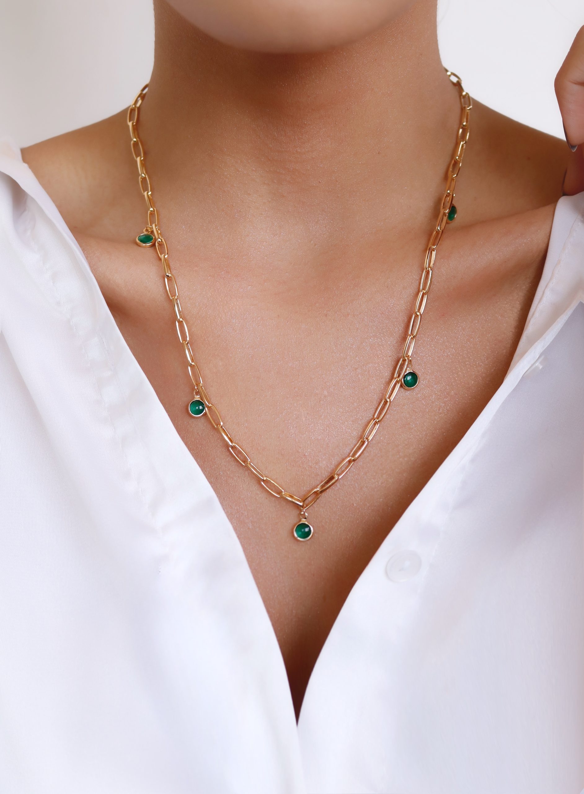 GARGANTILHA CRISTAL COM ELOS LISOS E CINCO BOLINHAS DE CRISTAL 50CM