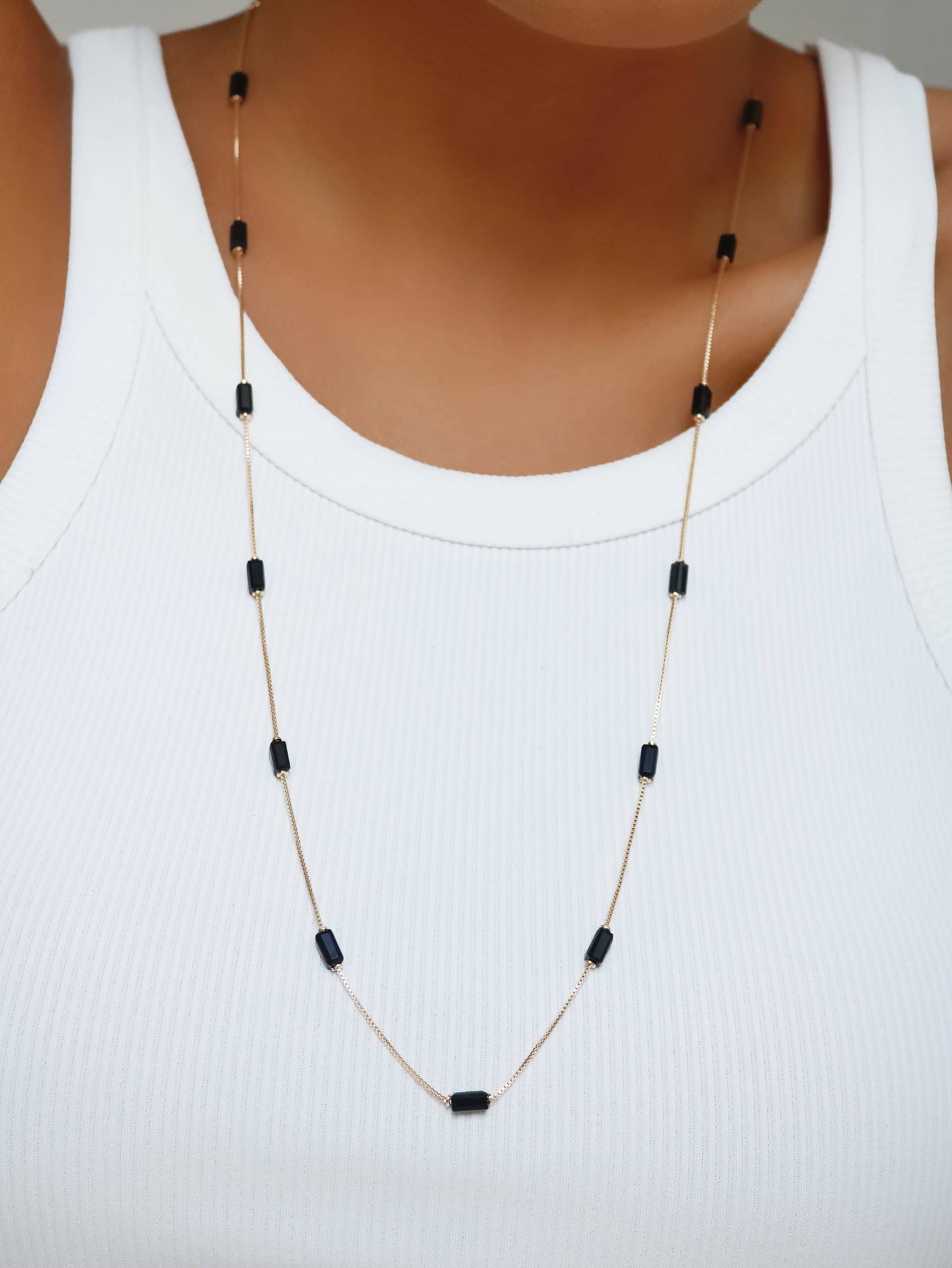 GARGANTILHA ZIRCONIA 7 FLORES DE QUATRO PETALAS PONTO DE LUZ 80CM