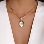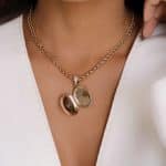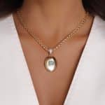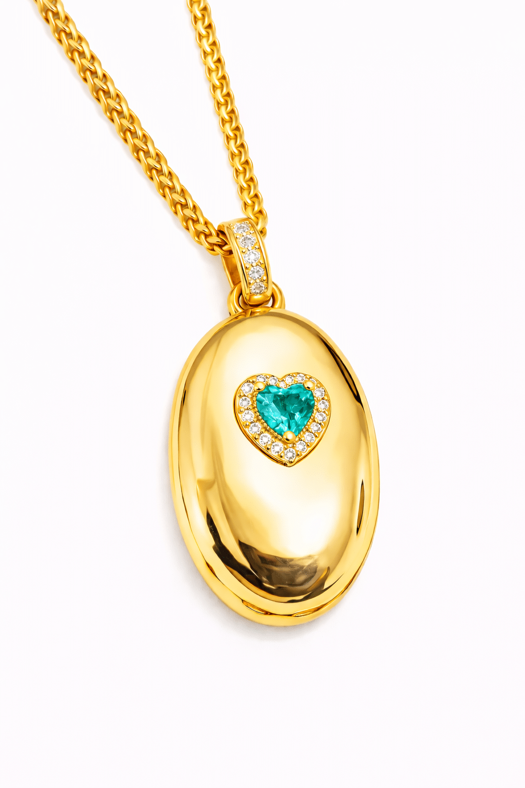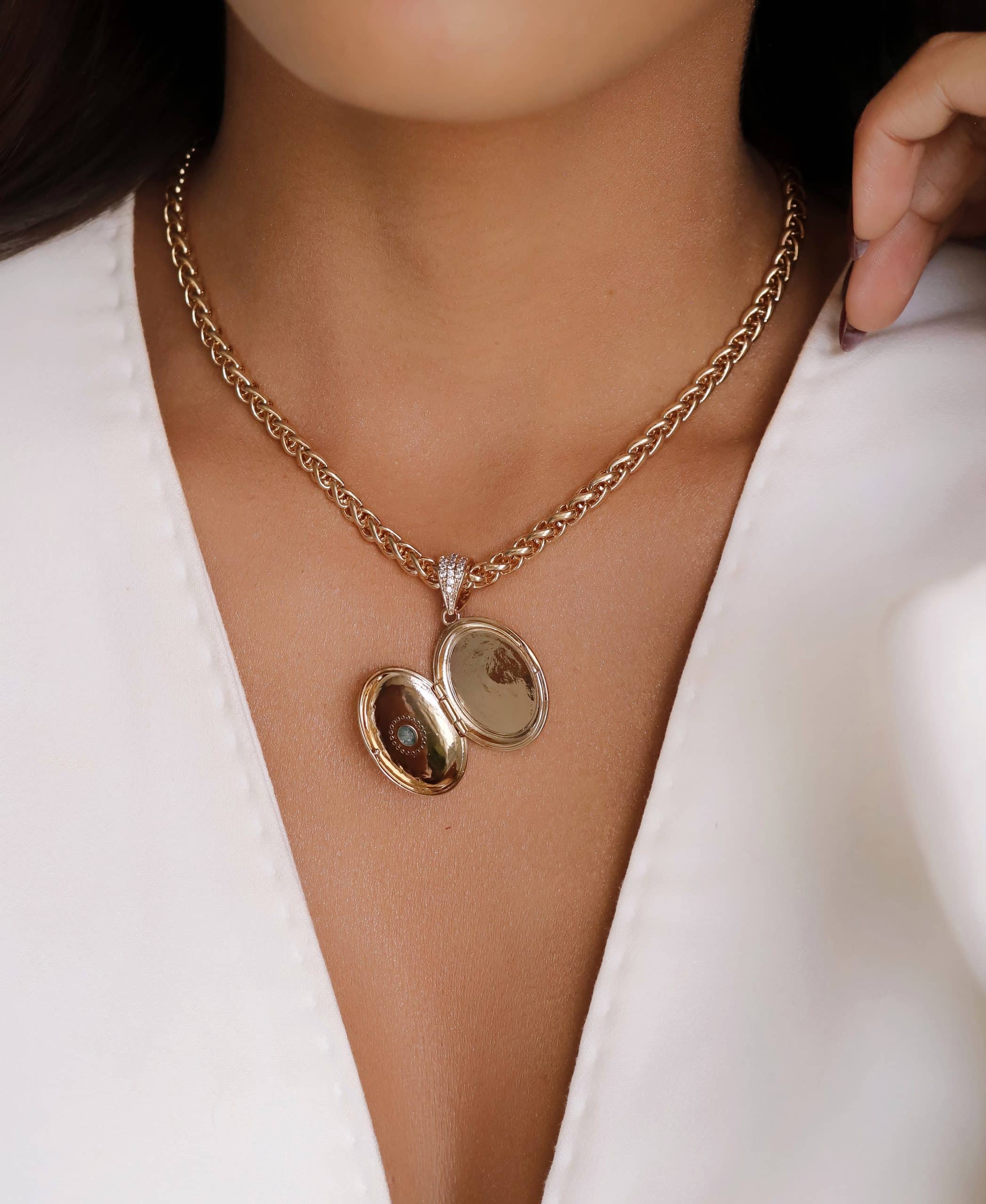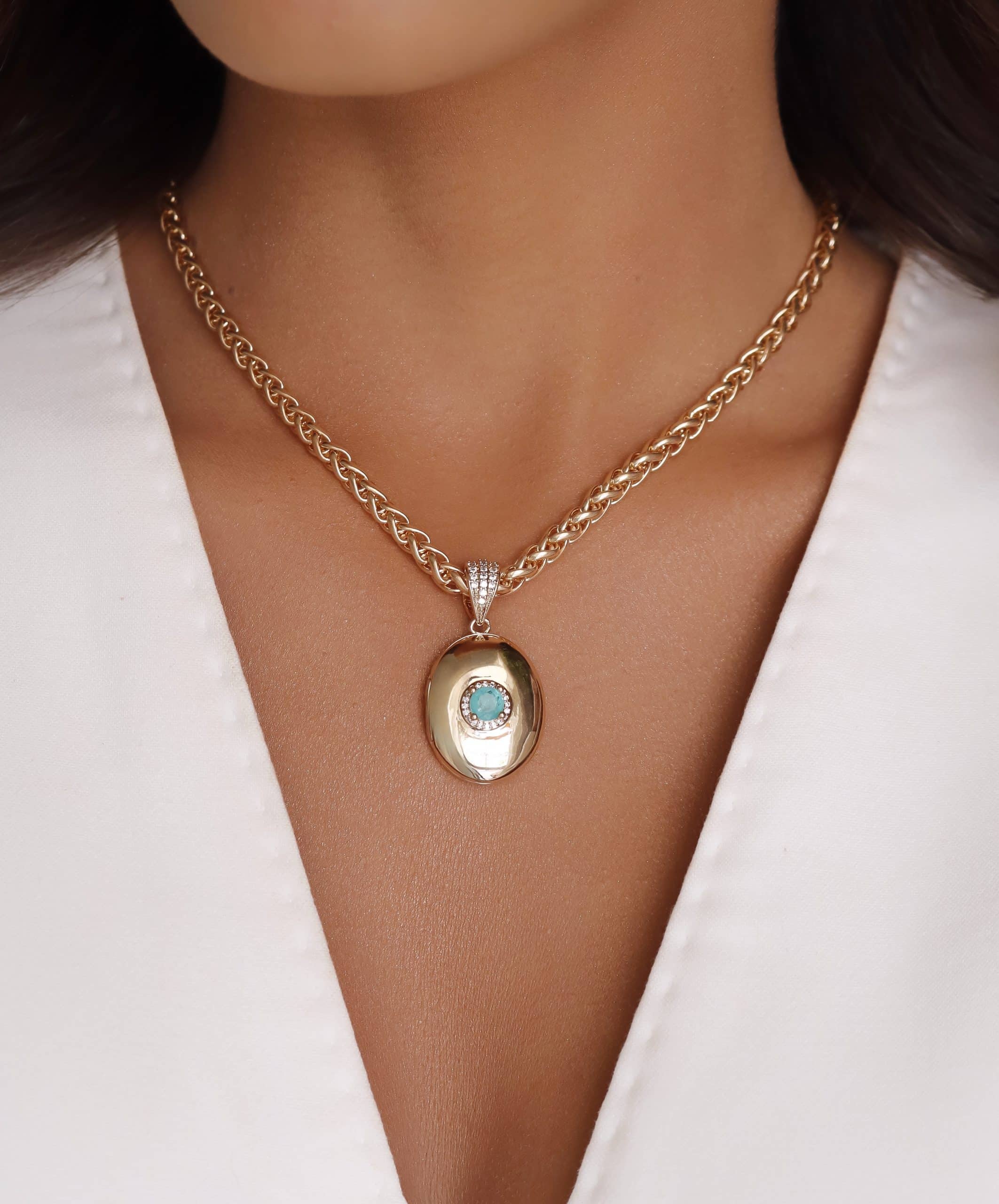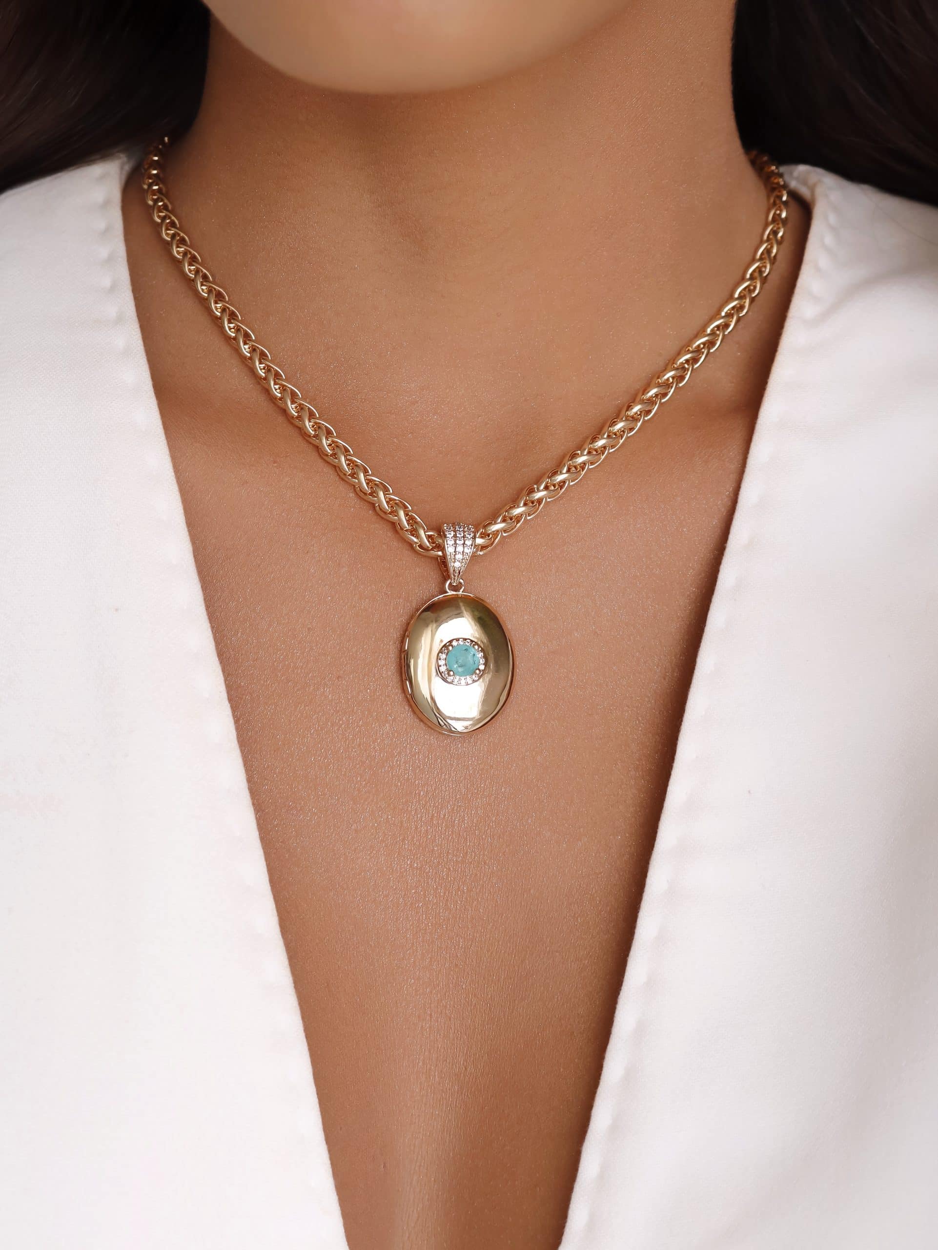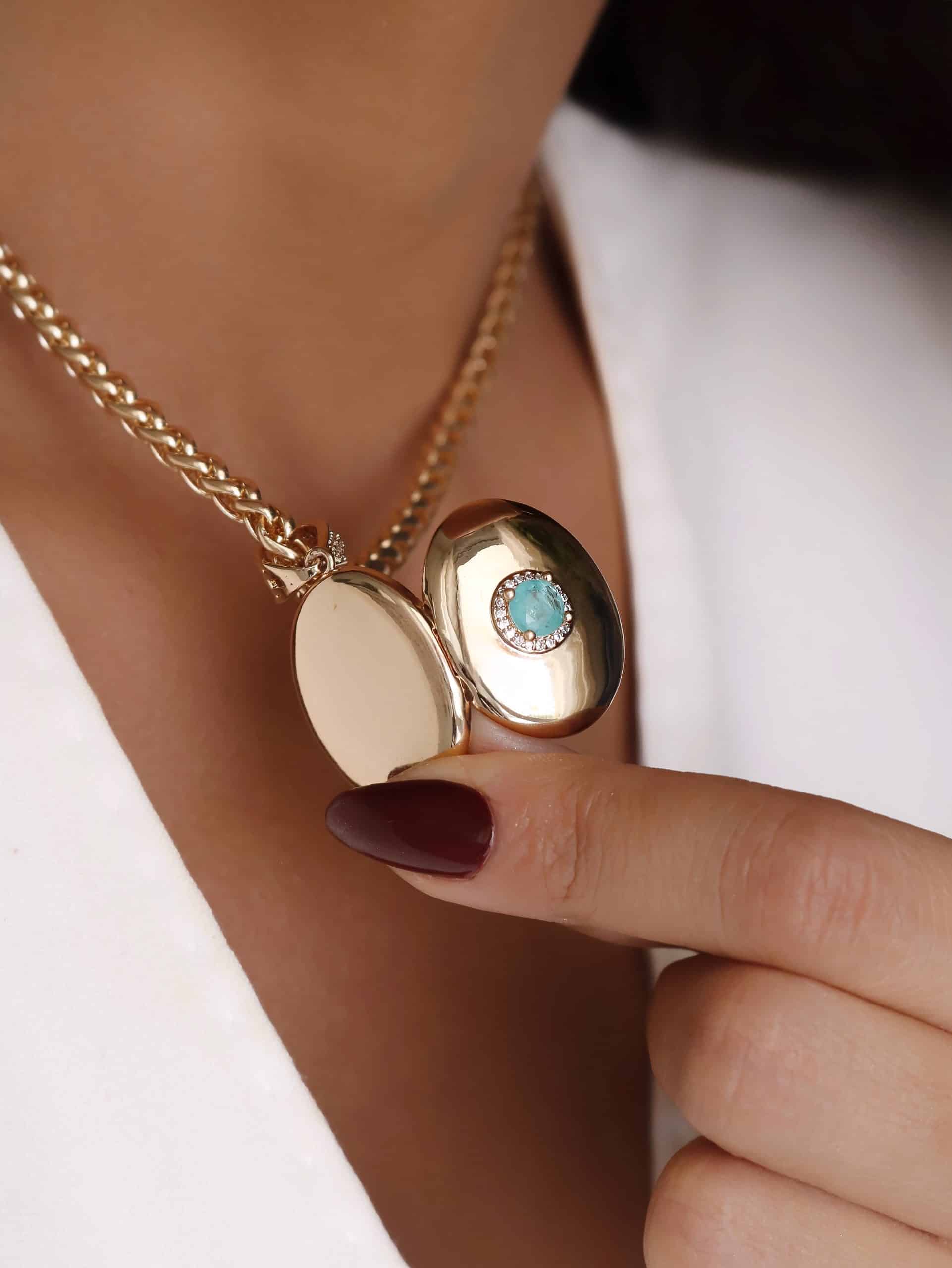 GARGANTILHA CRISTAL REDONDO COM ZIRCONIAS E RELICARIO OVAL PEQUENO 40CM