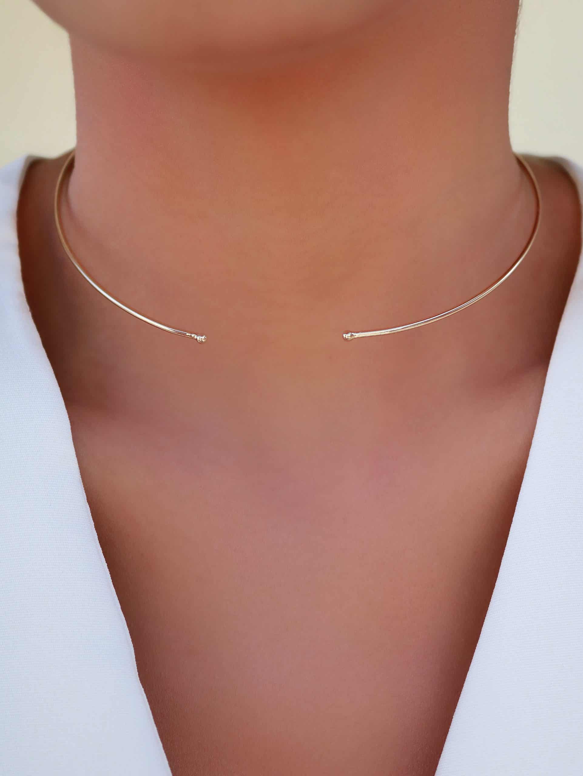 GARGANTILHA ARO LISO FORMATO V BOLINHA NA PONTA ABERTO