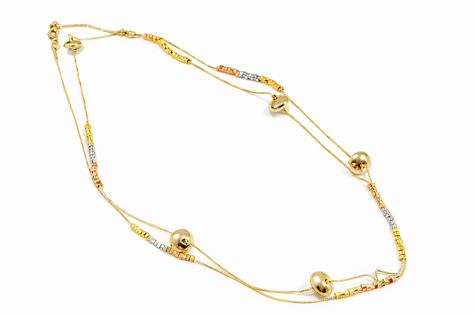 GARGANTILHA ZIRCONIA COM BOLINHAS E SETE RODINHAS CRAVEJADAS 40CM