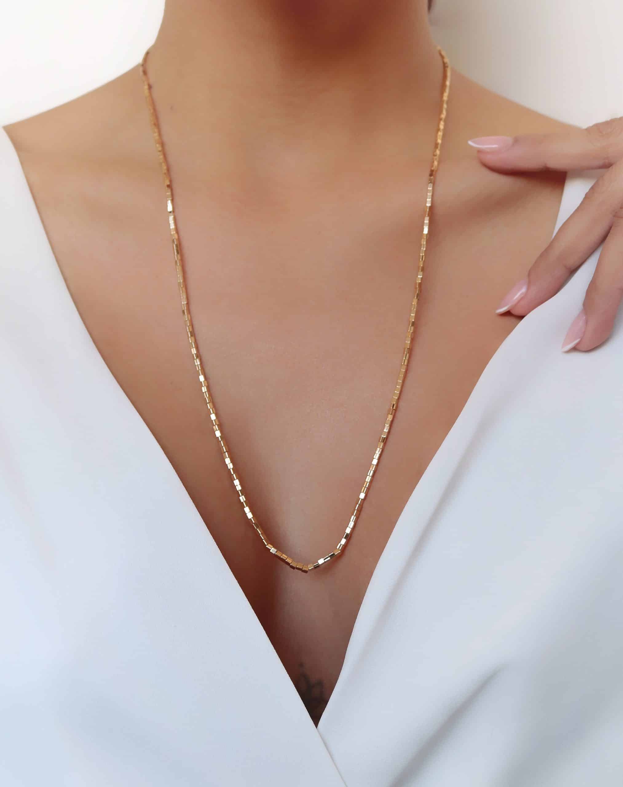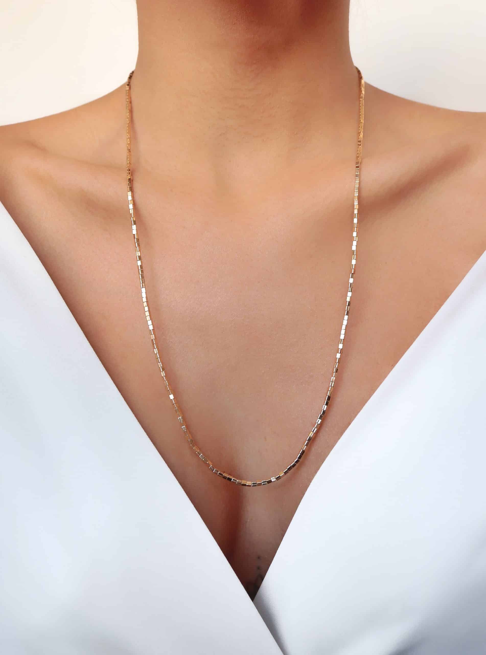 GARGANTILHA LISA COM CANUTILHOS QUADRADOS PEQUENOS 80CM