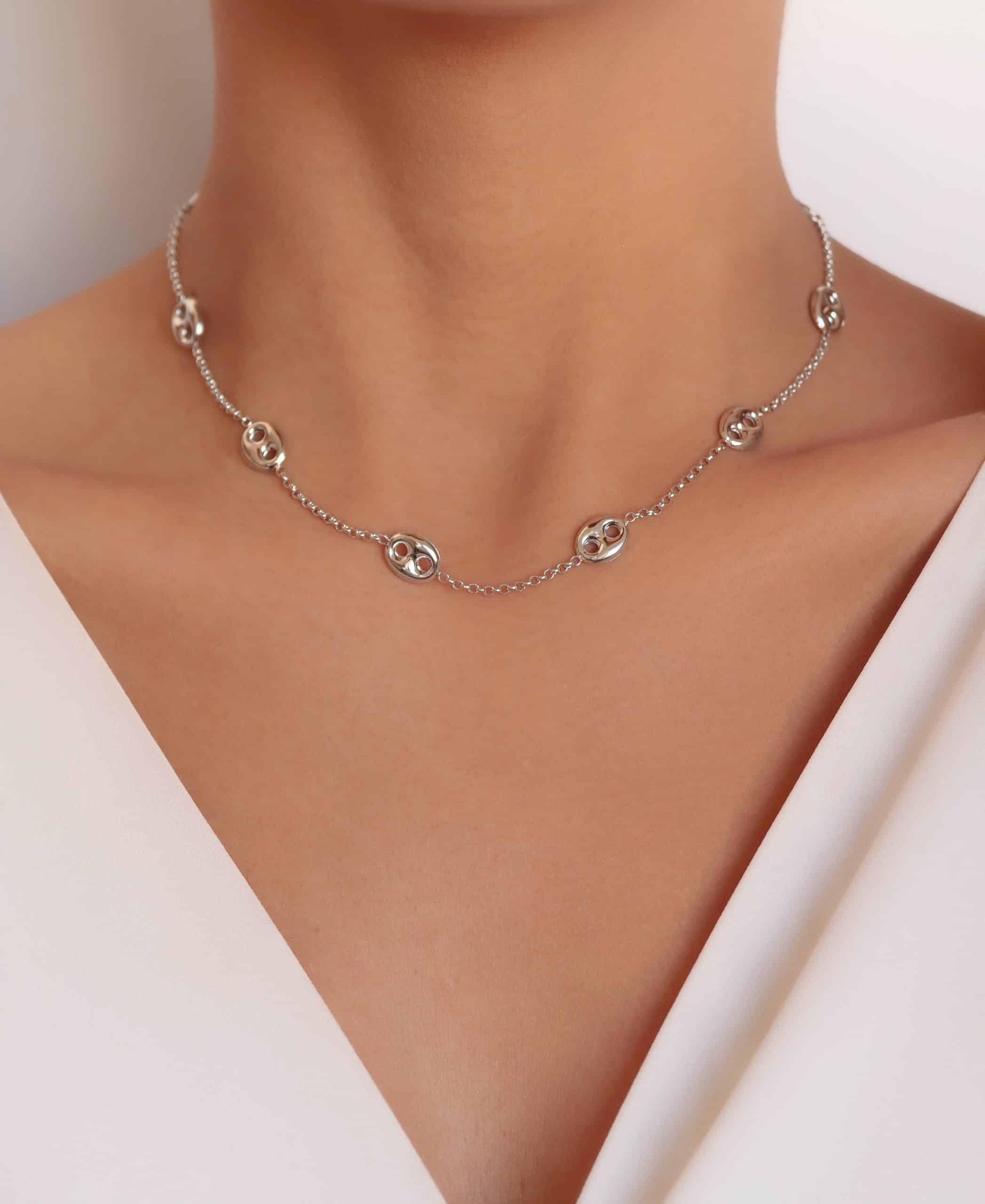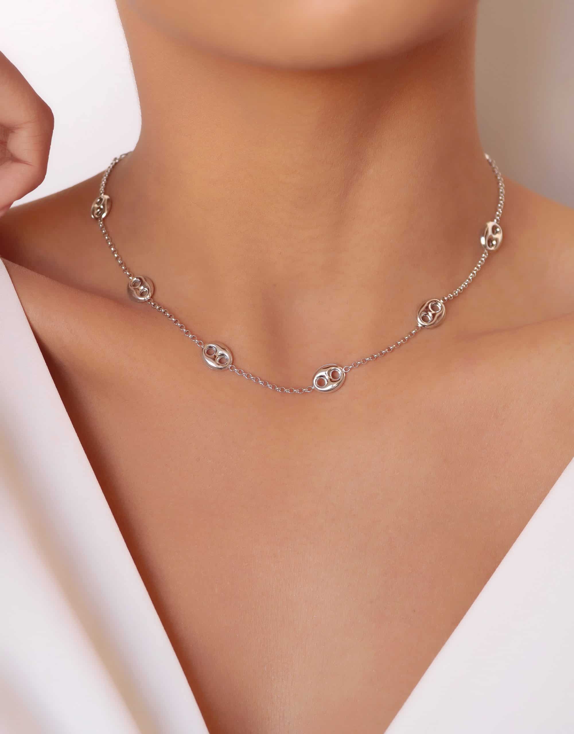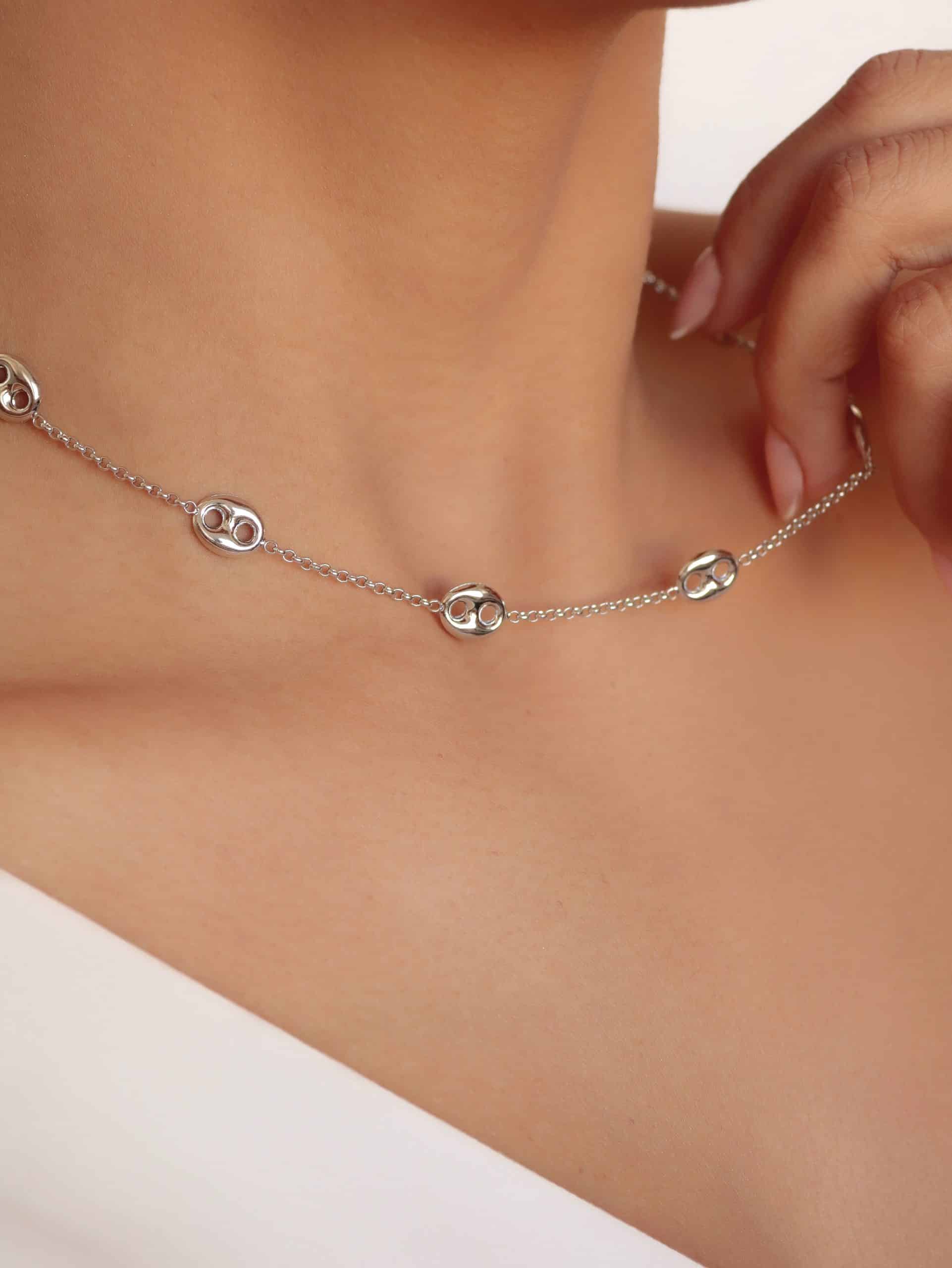 GARGANTILHA ZIRCONIA METADE RIVIERA E METADE ELOS LISOS GRAVATA 40CM