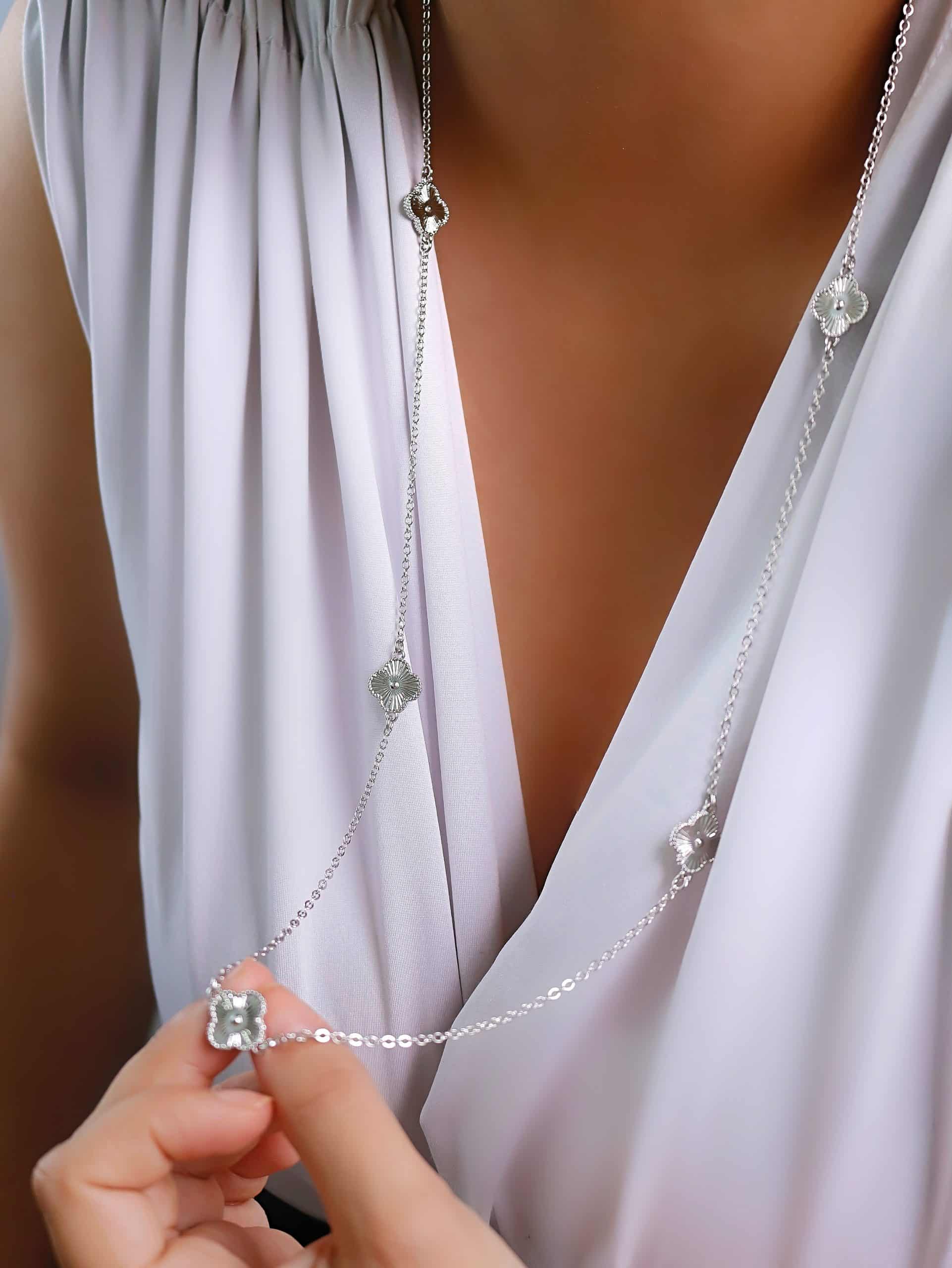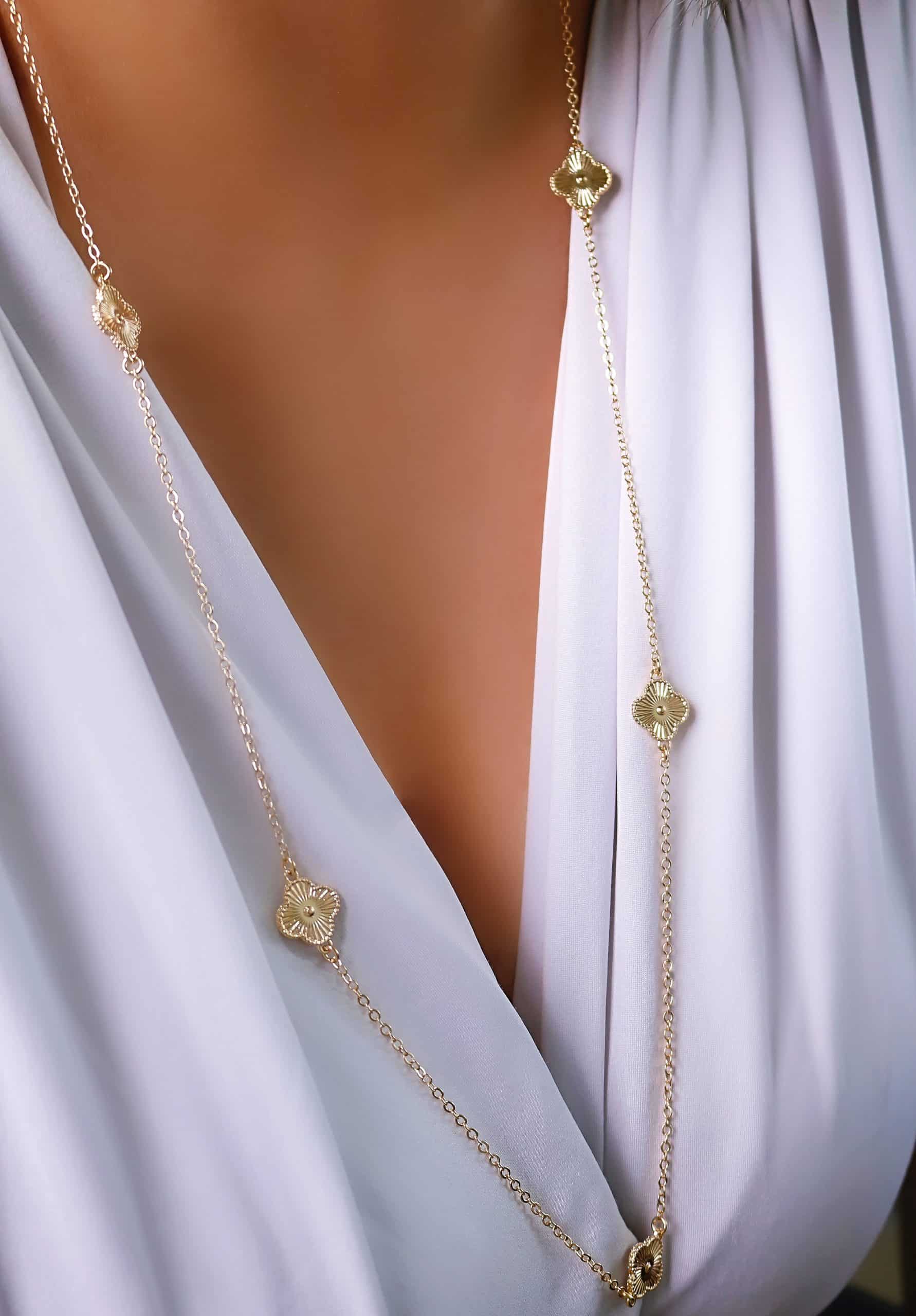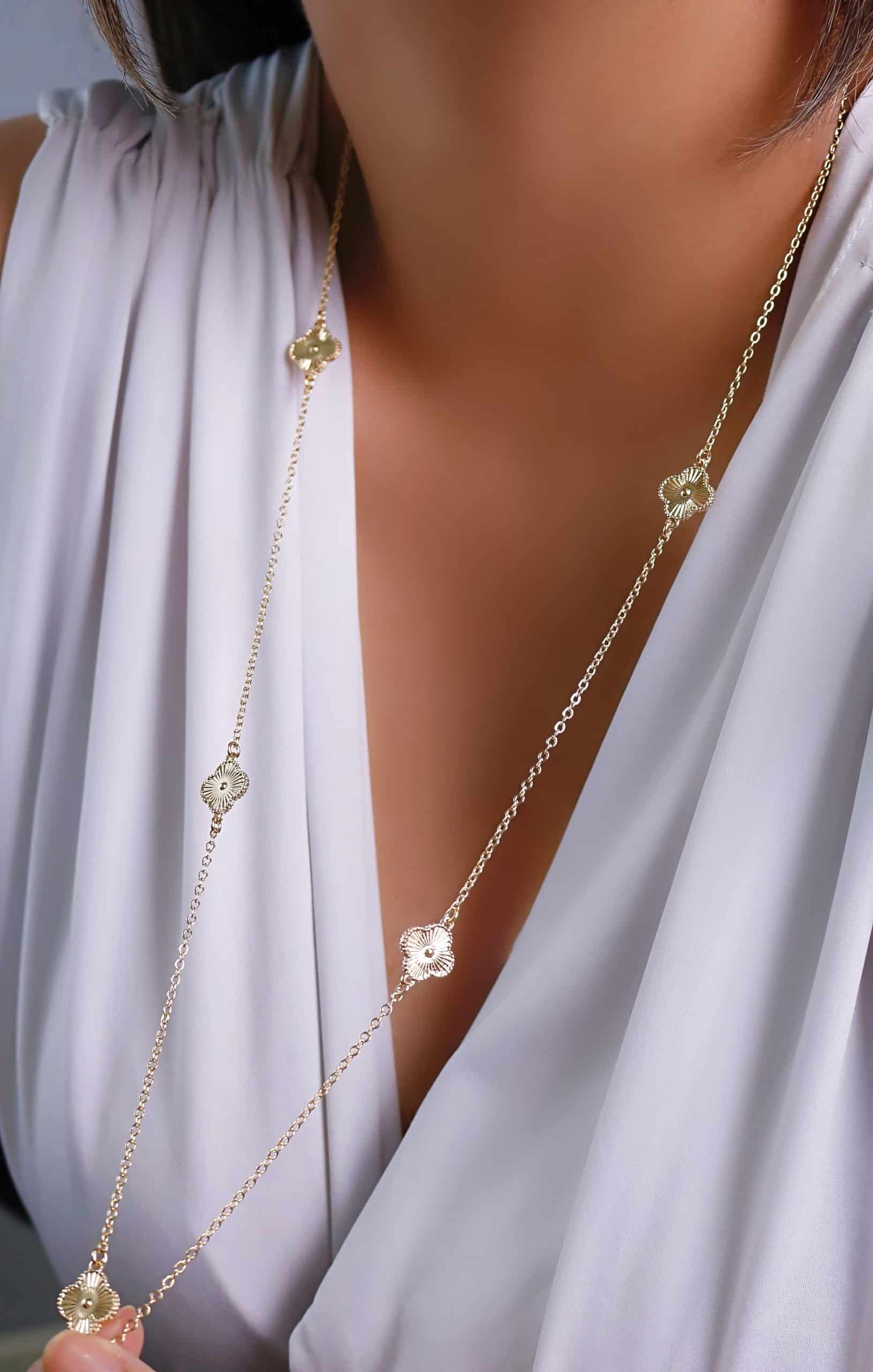 GARGANTILHA ZIRCONIA COM DEZESSEIS FLORES 80CM