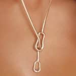 GARGANTILHA LISA GRAVATA RABO DE RATO E DOIS PINGENTES ONDULADOS E VAZADOS