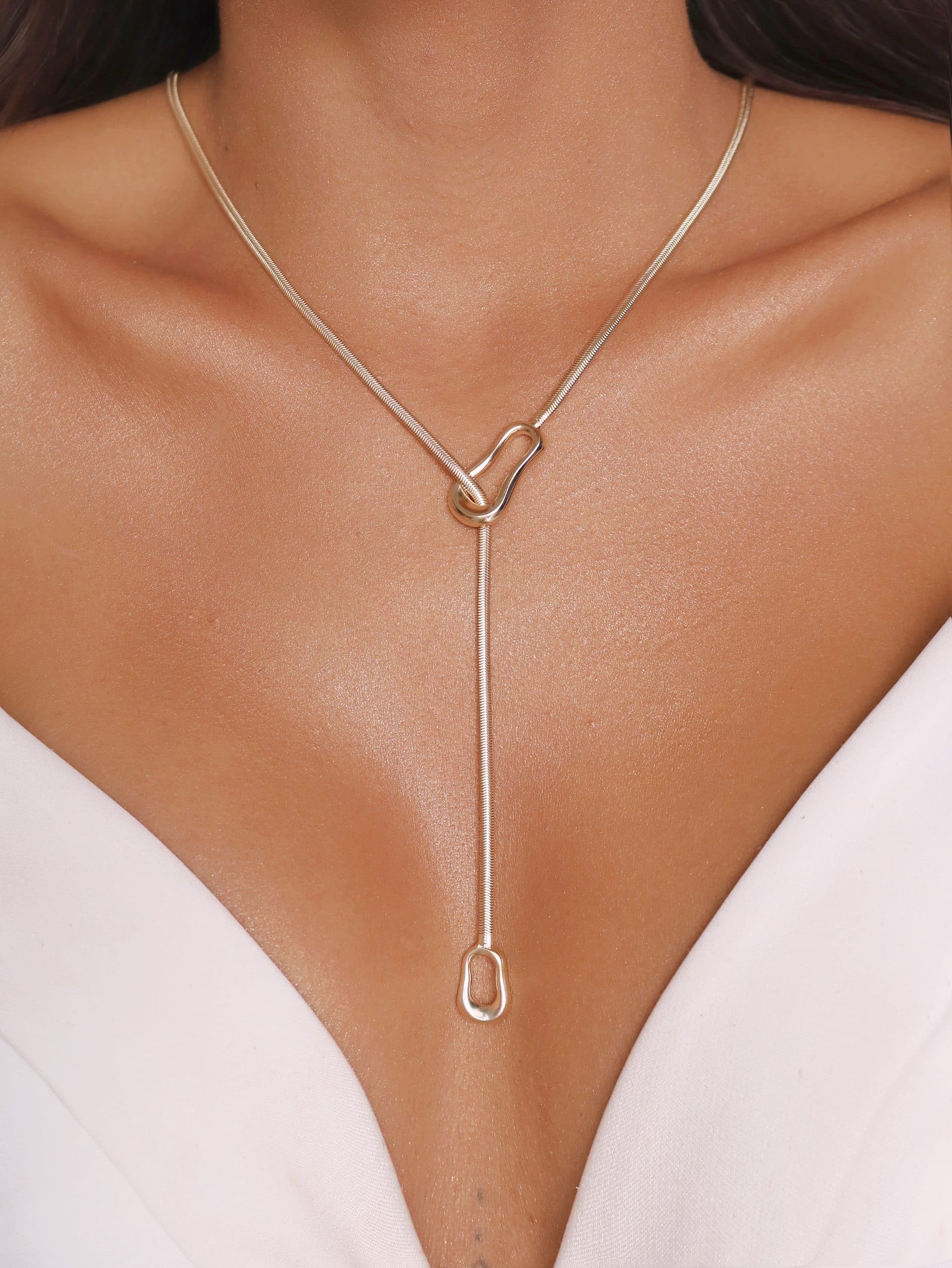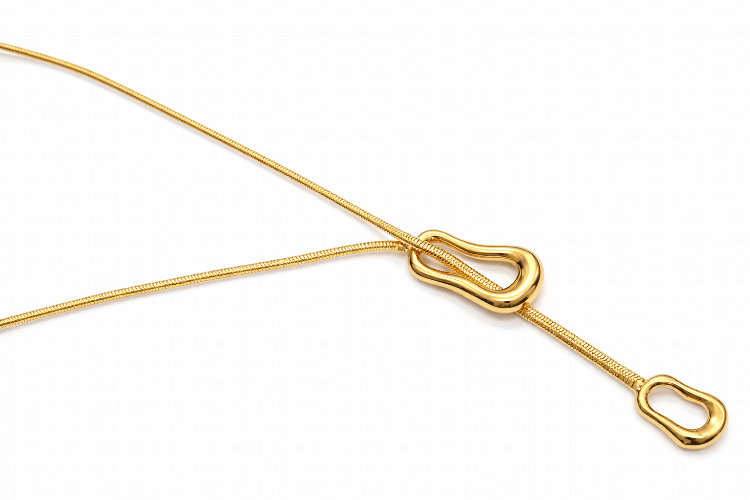 GARGANTILHA LISA GRAVATA RABO DE RATO  E DOIS PINGENTES ONDULADOS  E VAZADOS