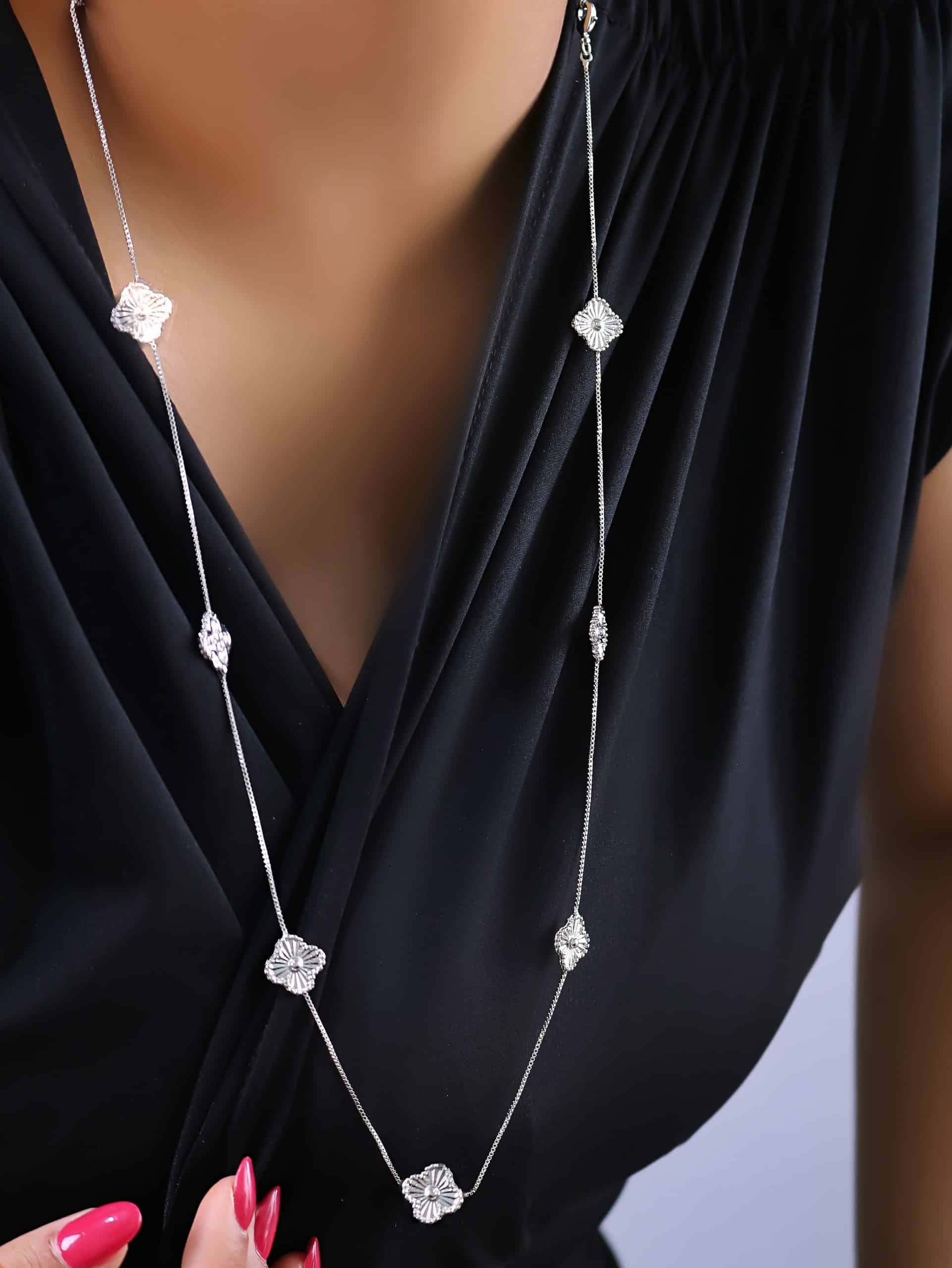 GARGANTILHA LISA NOVE FLORES CHAPA 60CM