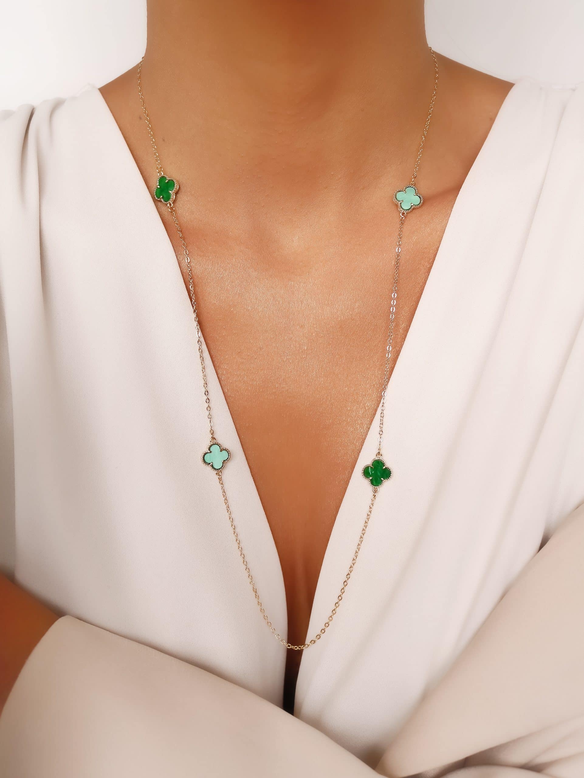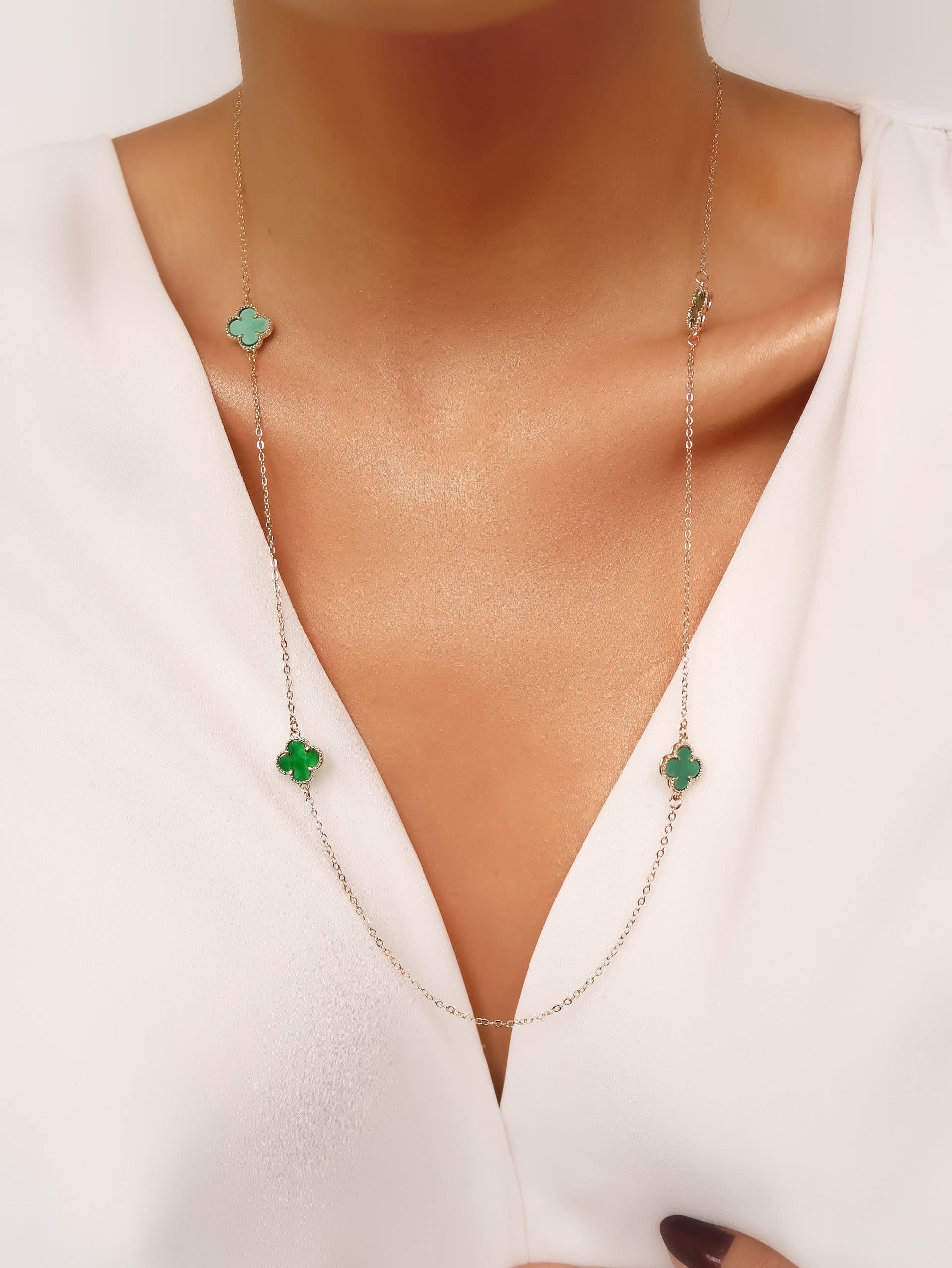 GARGANTILHA ZIRCONIA TREVO TODO CRAVEJADO E VAZADO NAS LATERAIS 40 CM