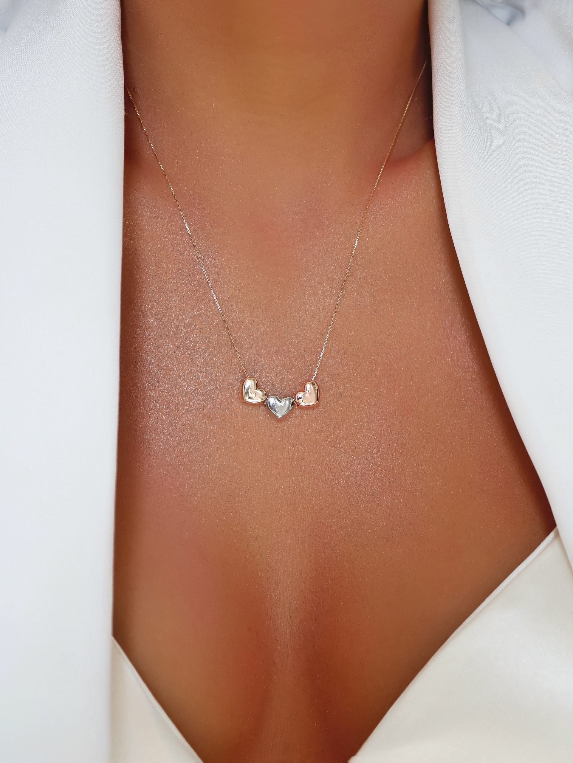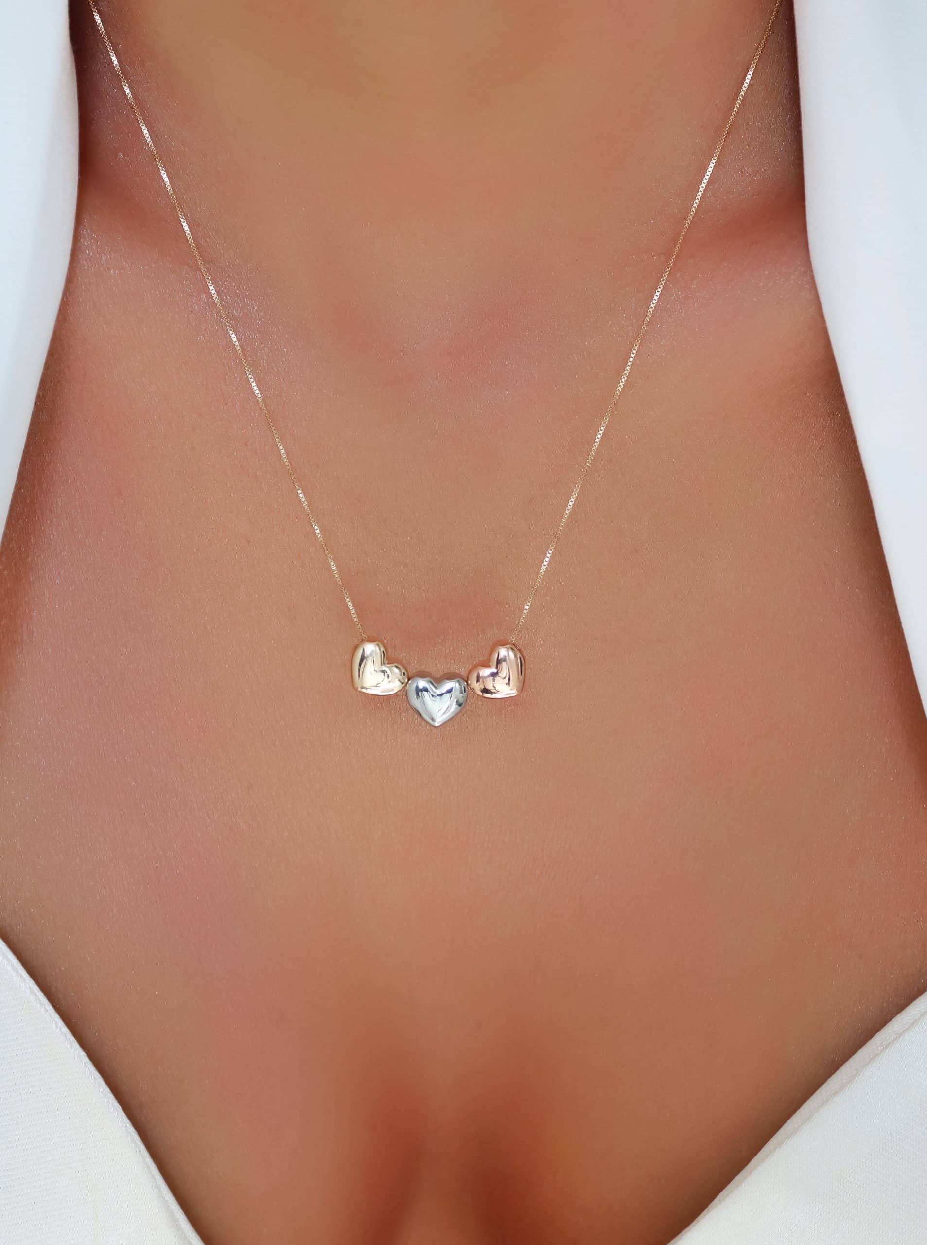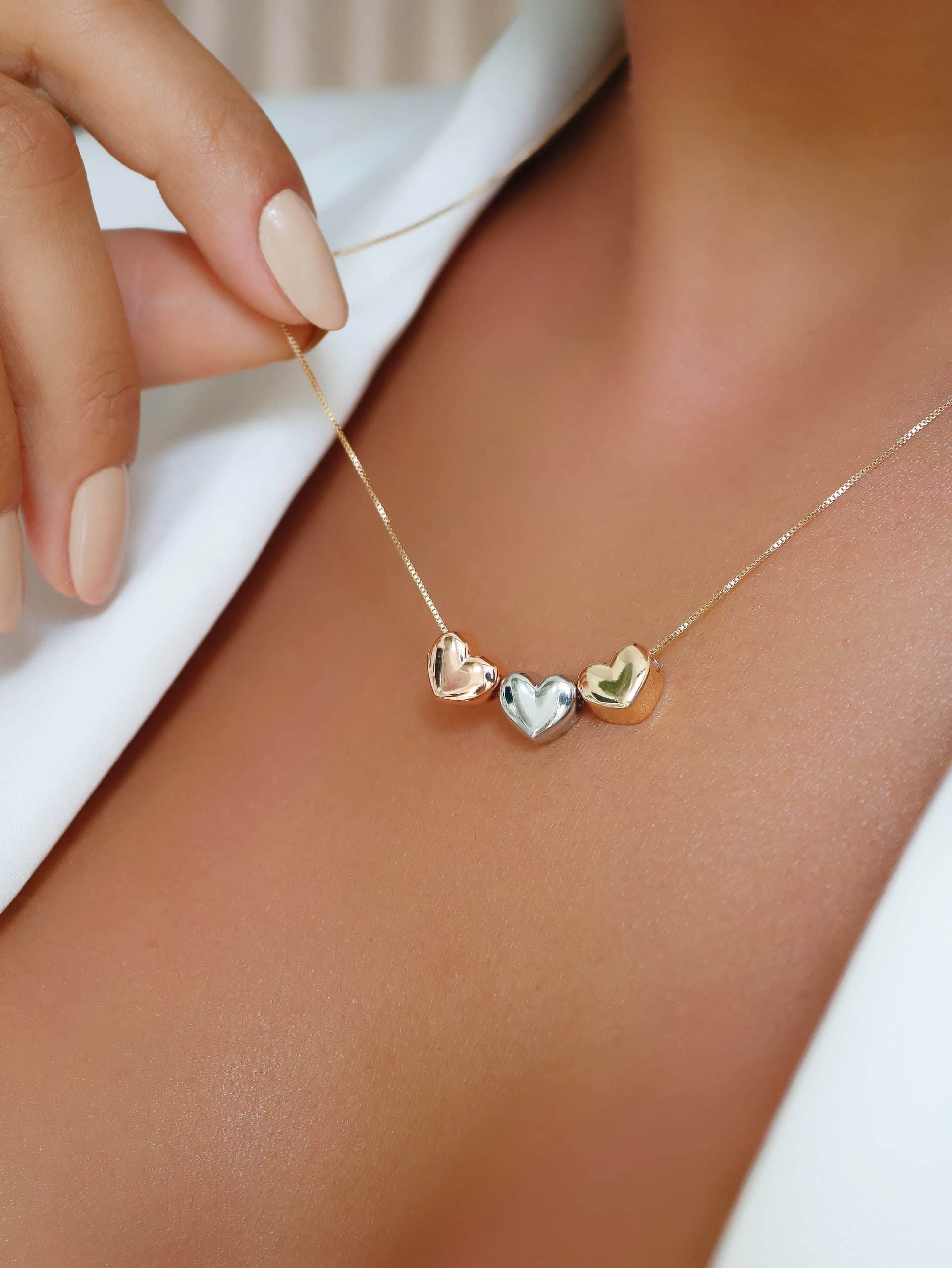 GARGANTILHA LISA TRES CORACOES TRES CORES
