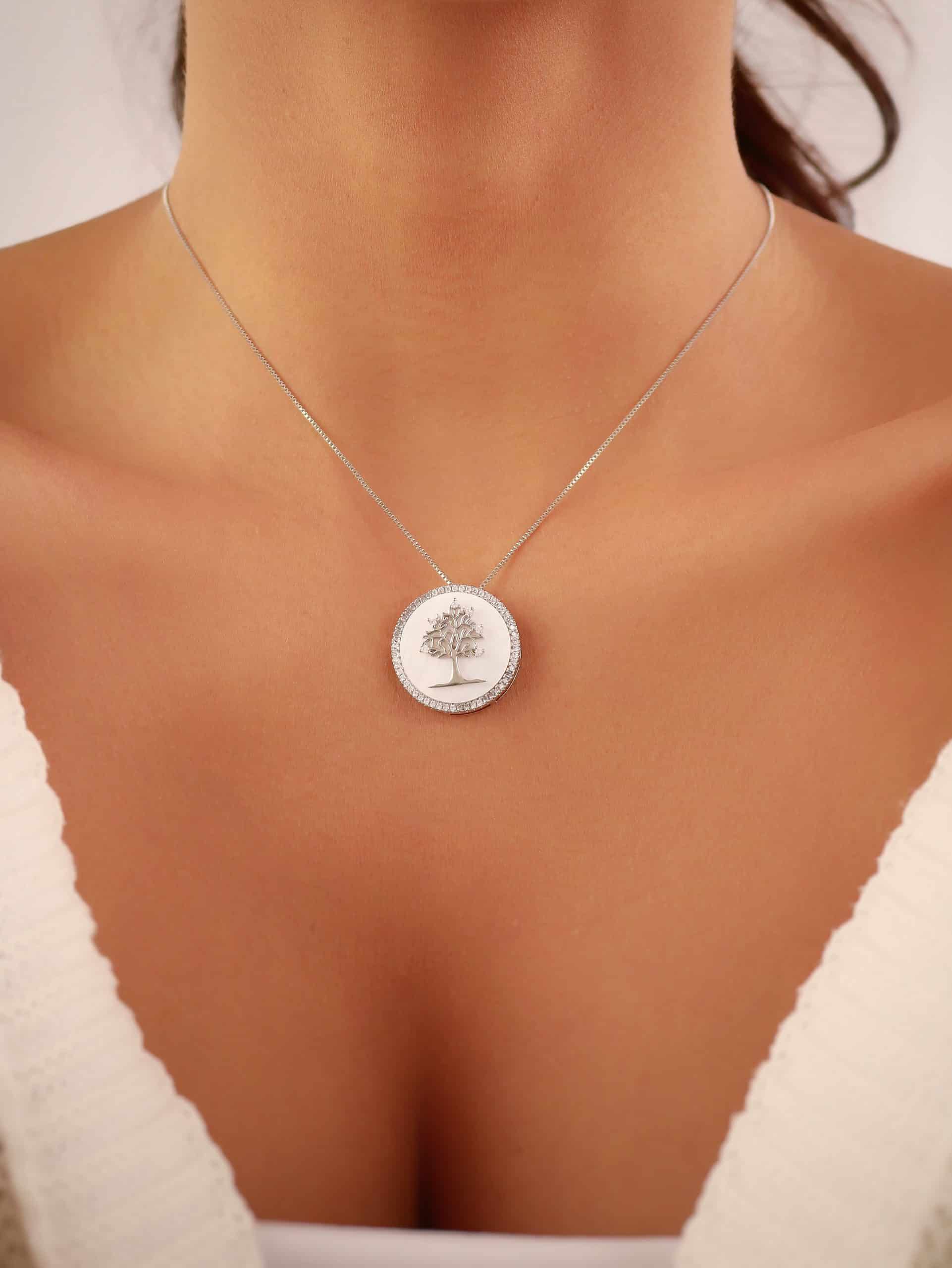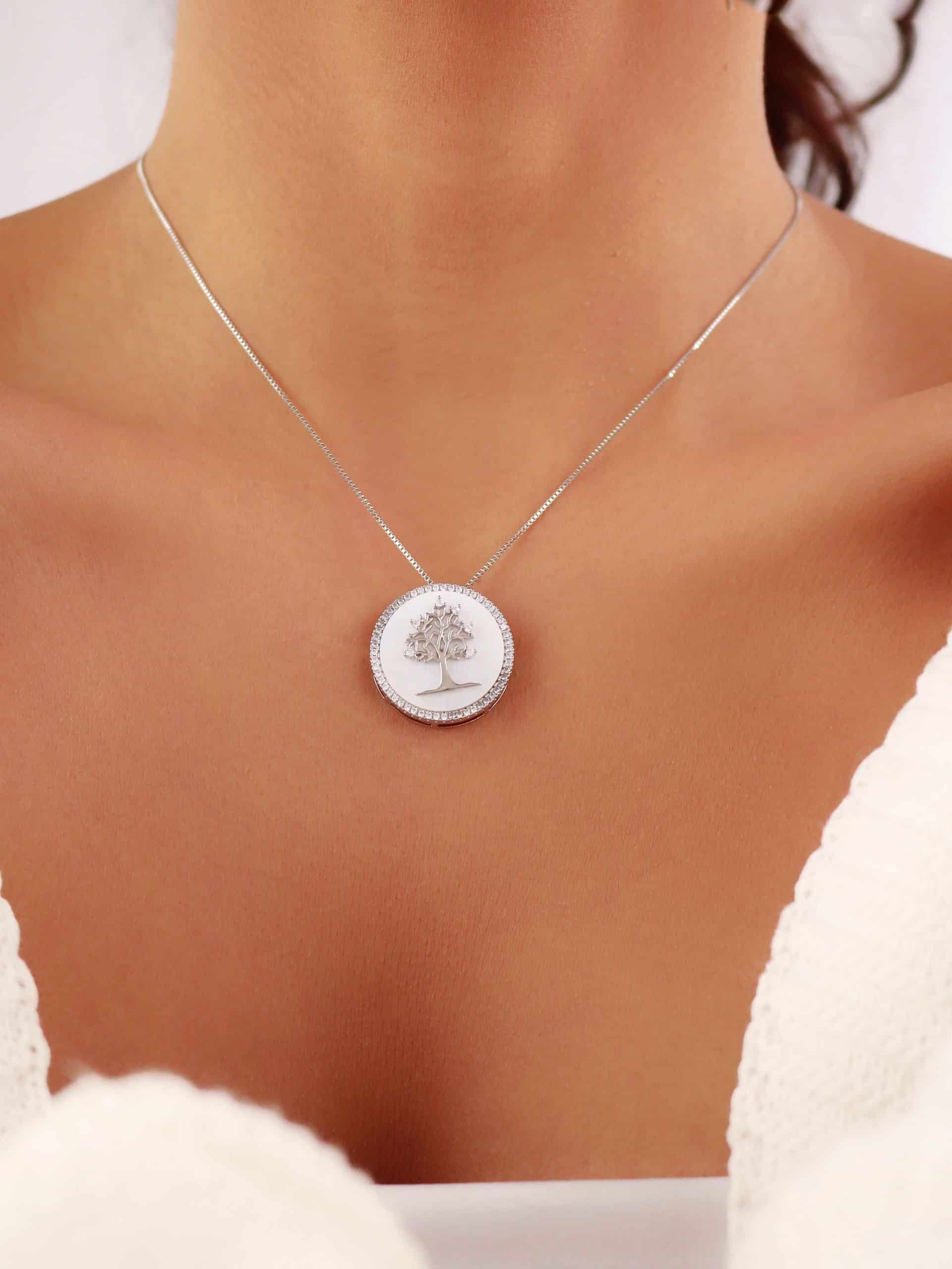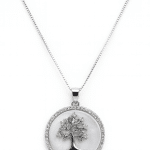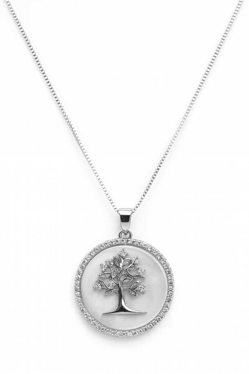 GARGANTILHA ZIRCONIA ARVORE DA VIDA COM CORACOES LISOS E CRAVEJADOS 40CM
