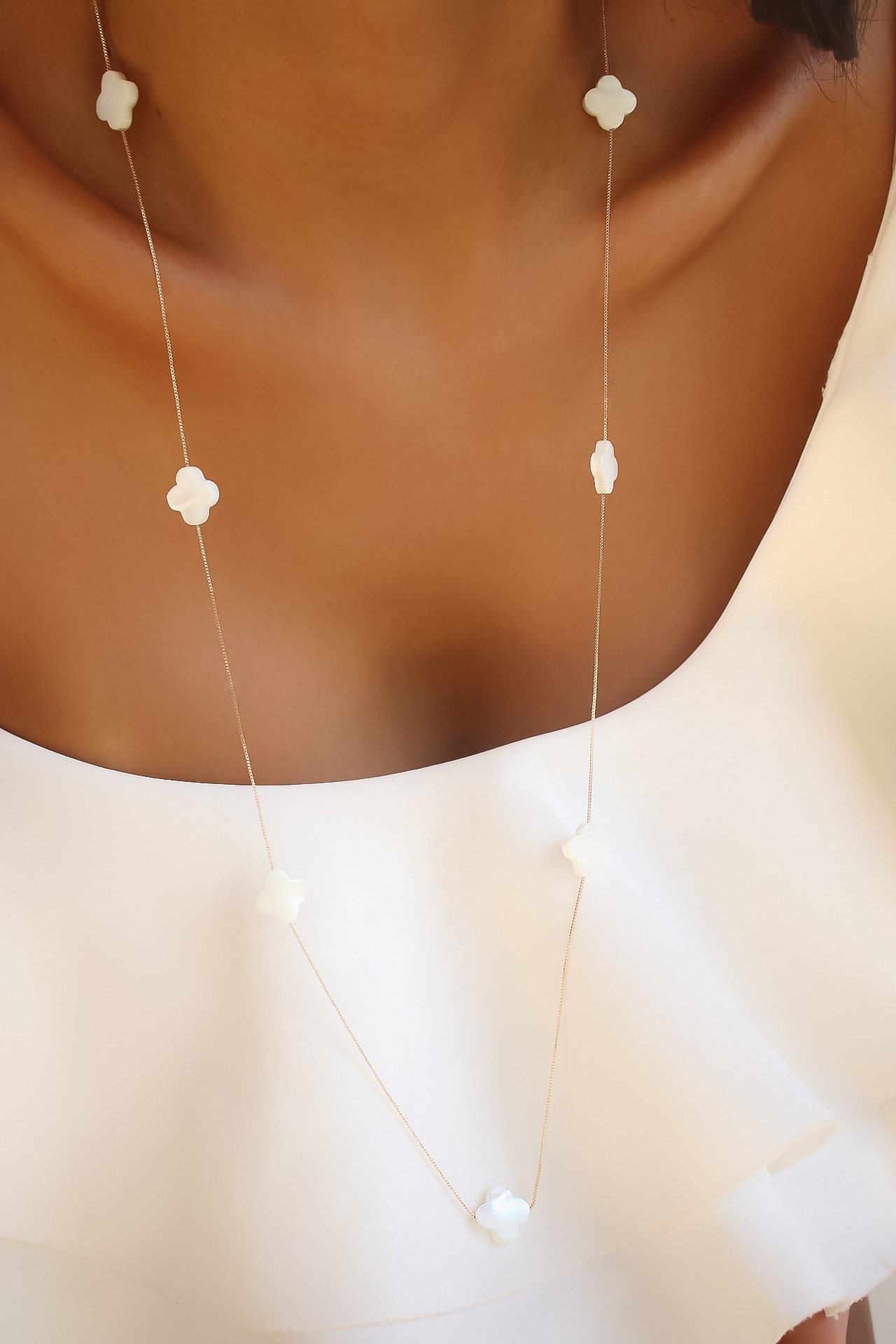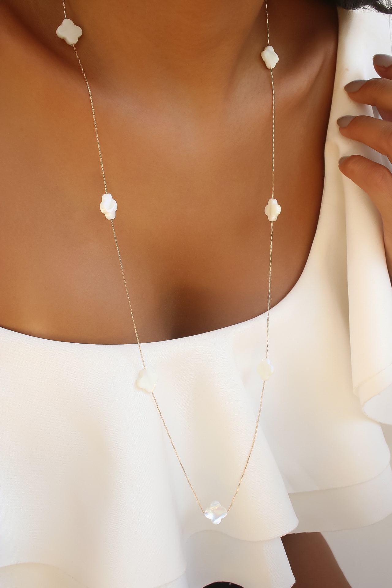 CONJUNTO MADRE PEROLA FLOR COM CINCO ZIRCONIAS EM VOTLA 40CM