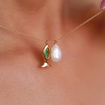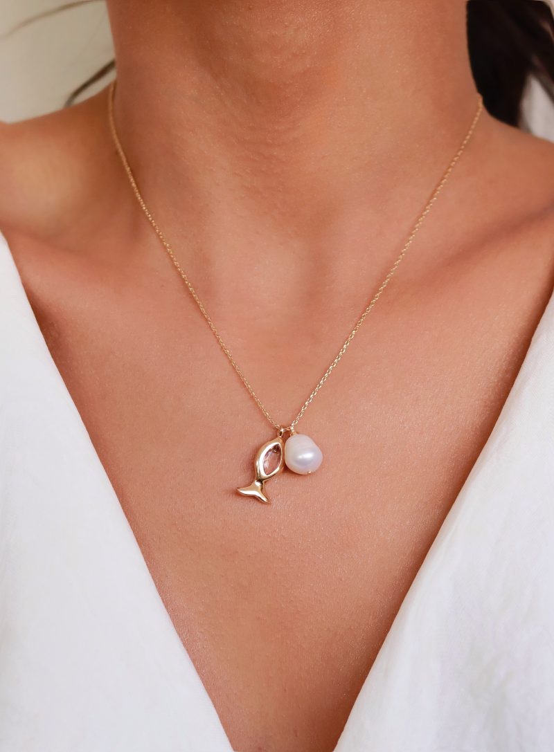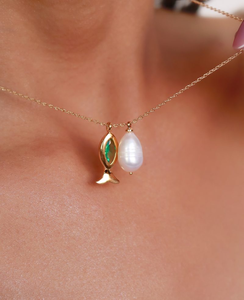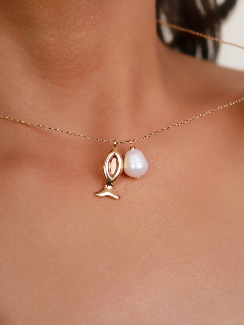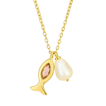 GARGANTILHA PEROLA BARROCA E PEIXE COM CRISTAL CORES 40CM