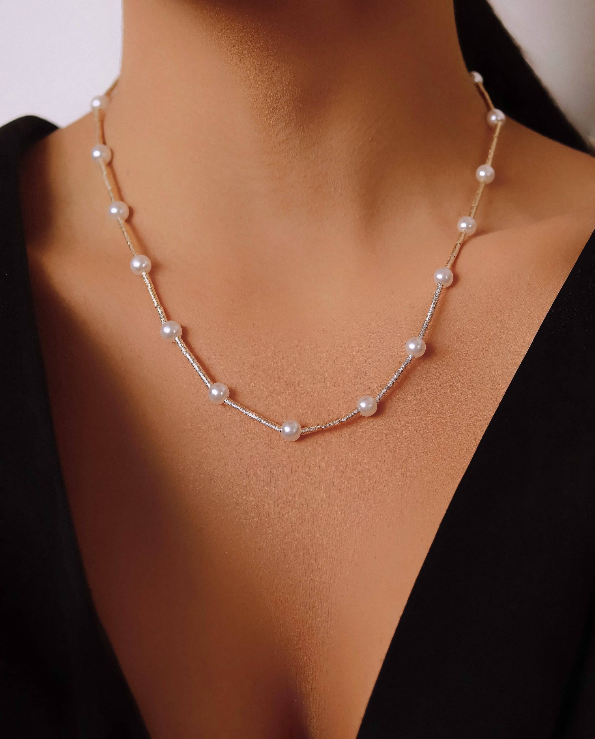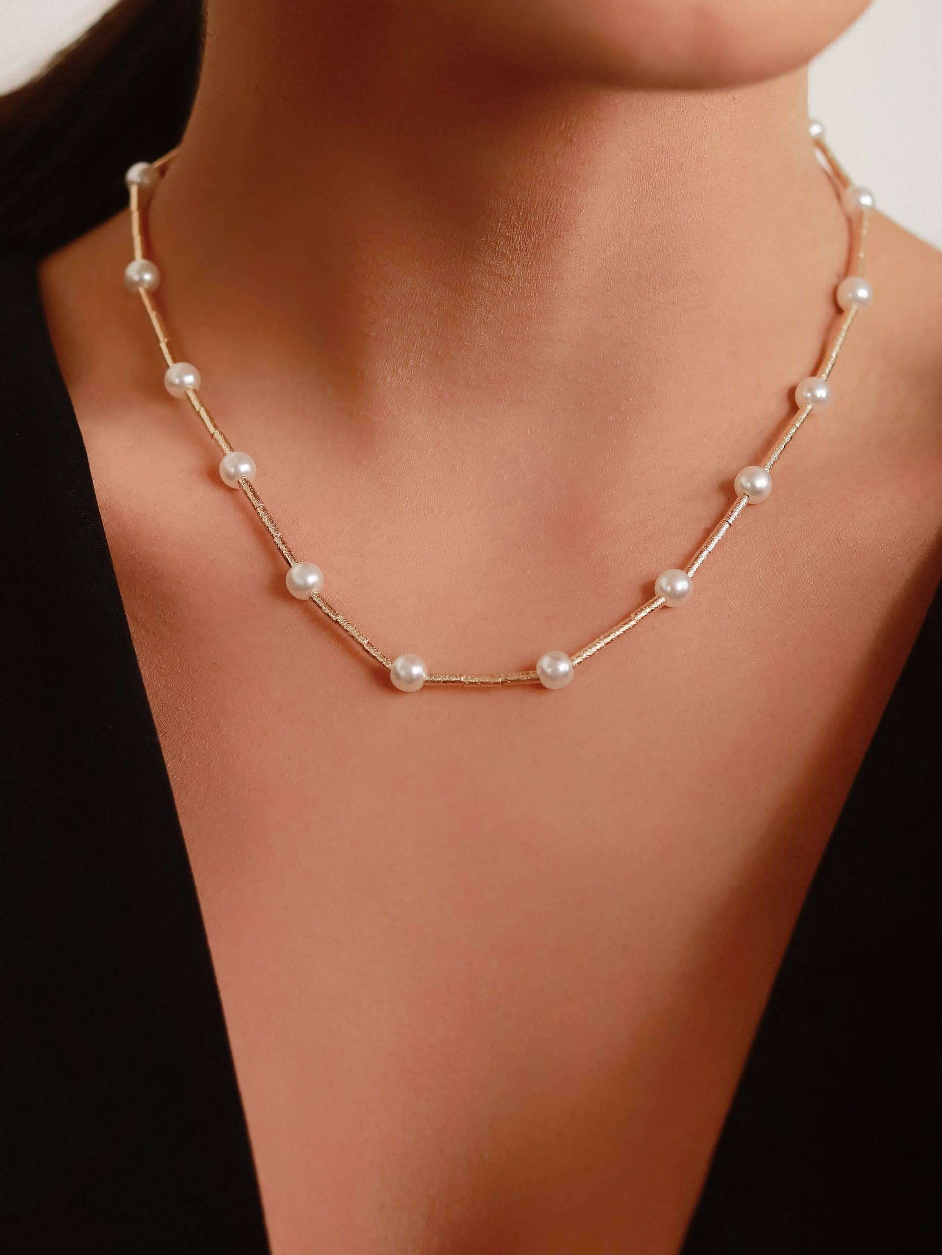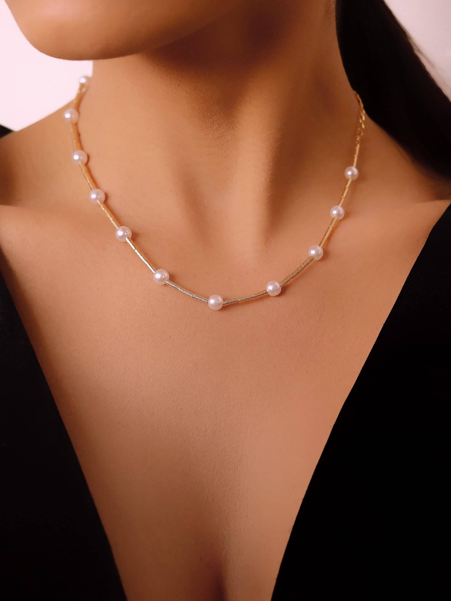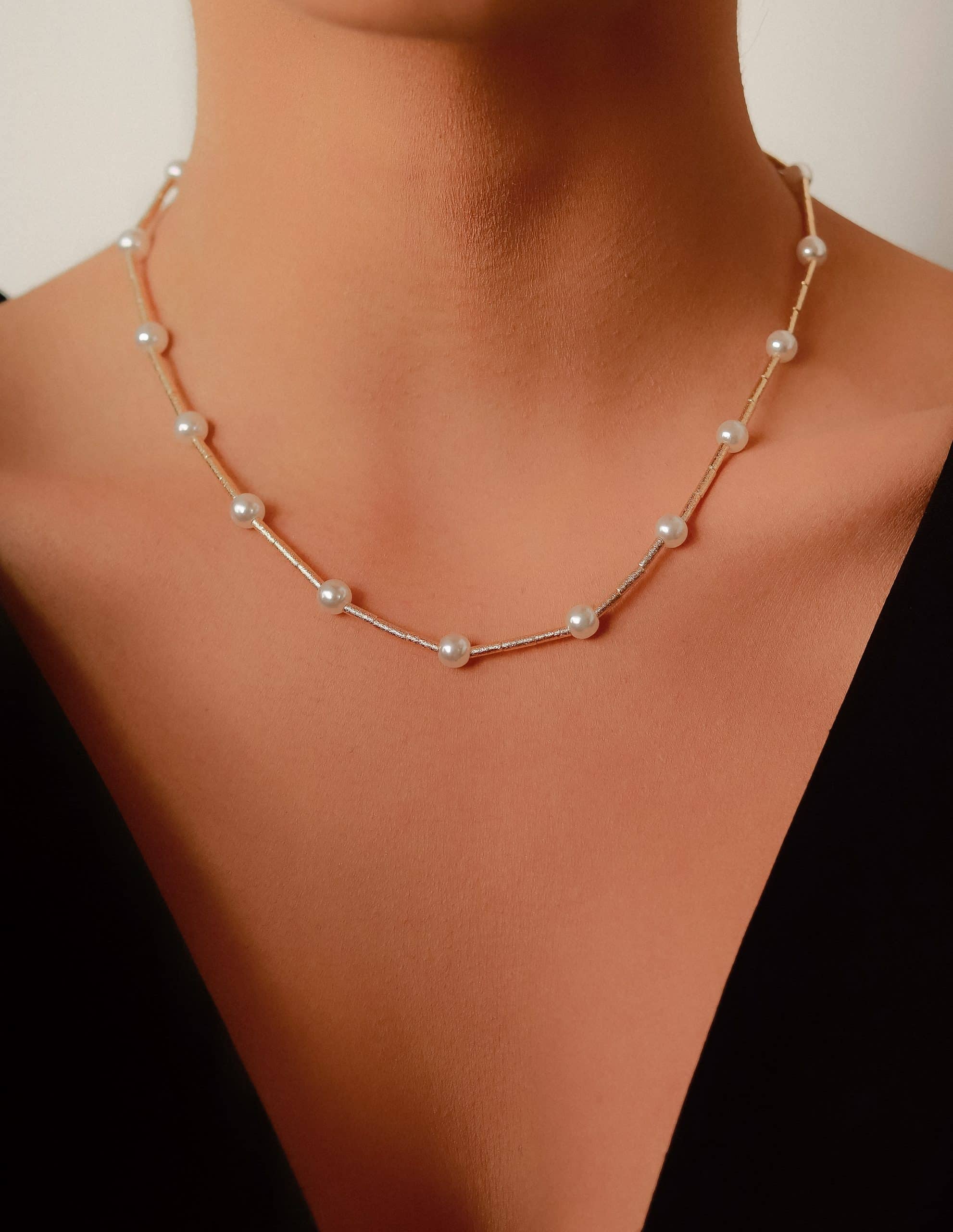 GARGANTILHA CHOKER PEROLA COM CANUTILHO FOSCO E QUINZE PEROLAS 30CM