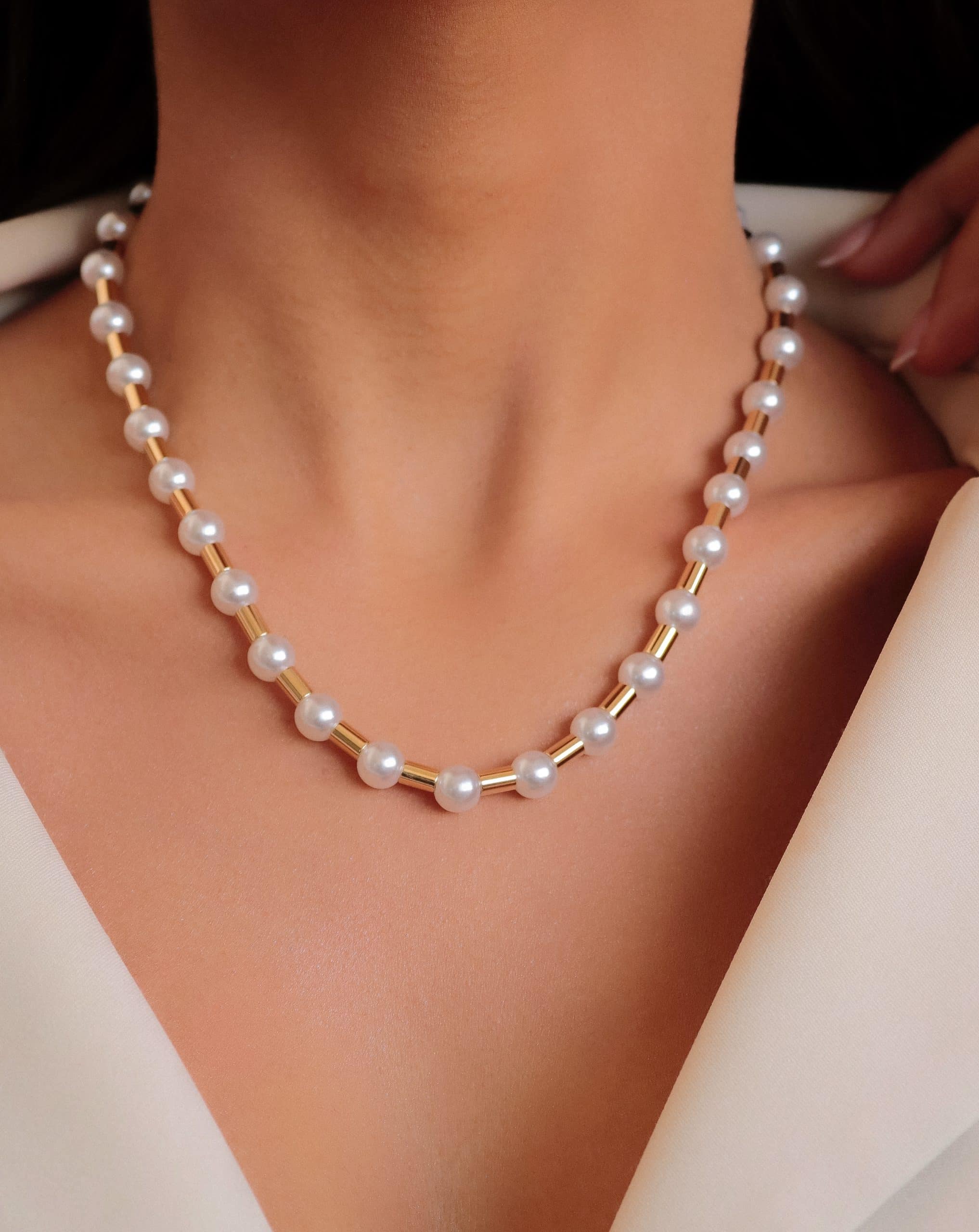 GARGANTILHA PEROLA COM CANUTILHO FOSCO 60 CM