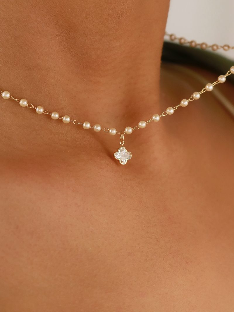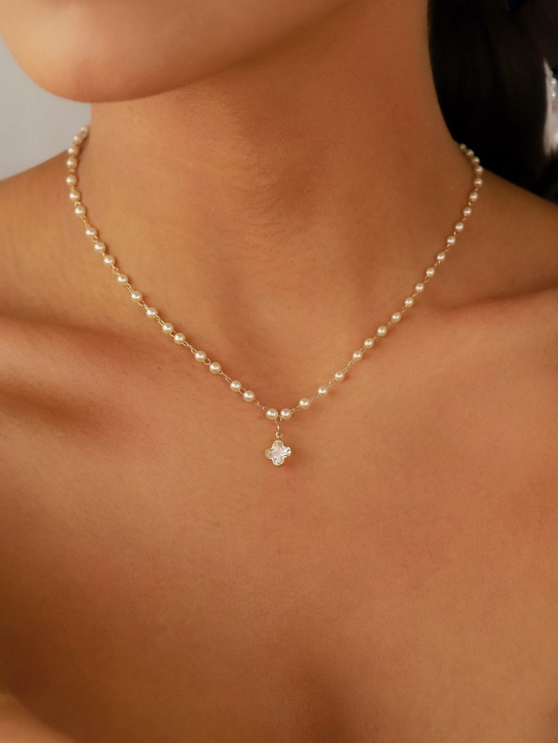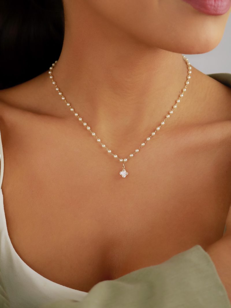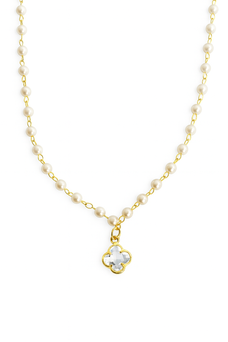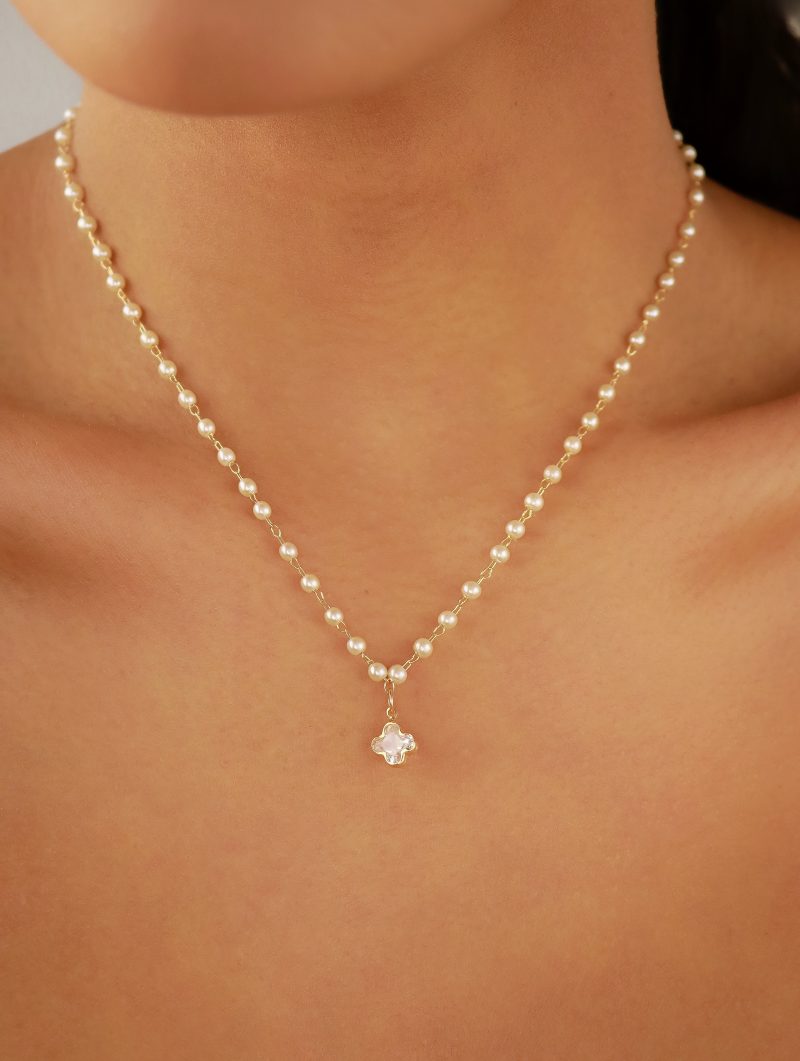 PULSEIRA PEROLA COM FLOR PENDURADA E PEROLAS PEQUENAS