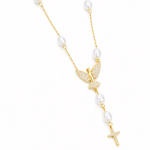 GARGANTILHA PEROLA ESPIRITO SANTO E CRUZ PENDURADA TERCO MAIOR 40CM