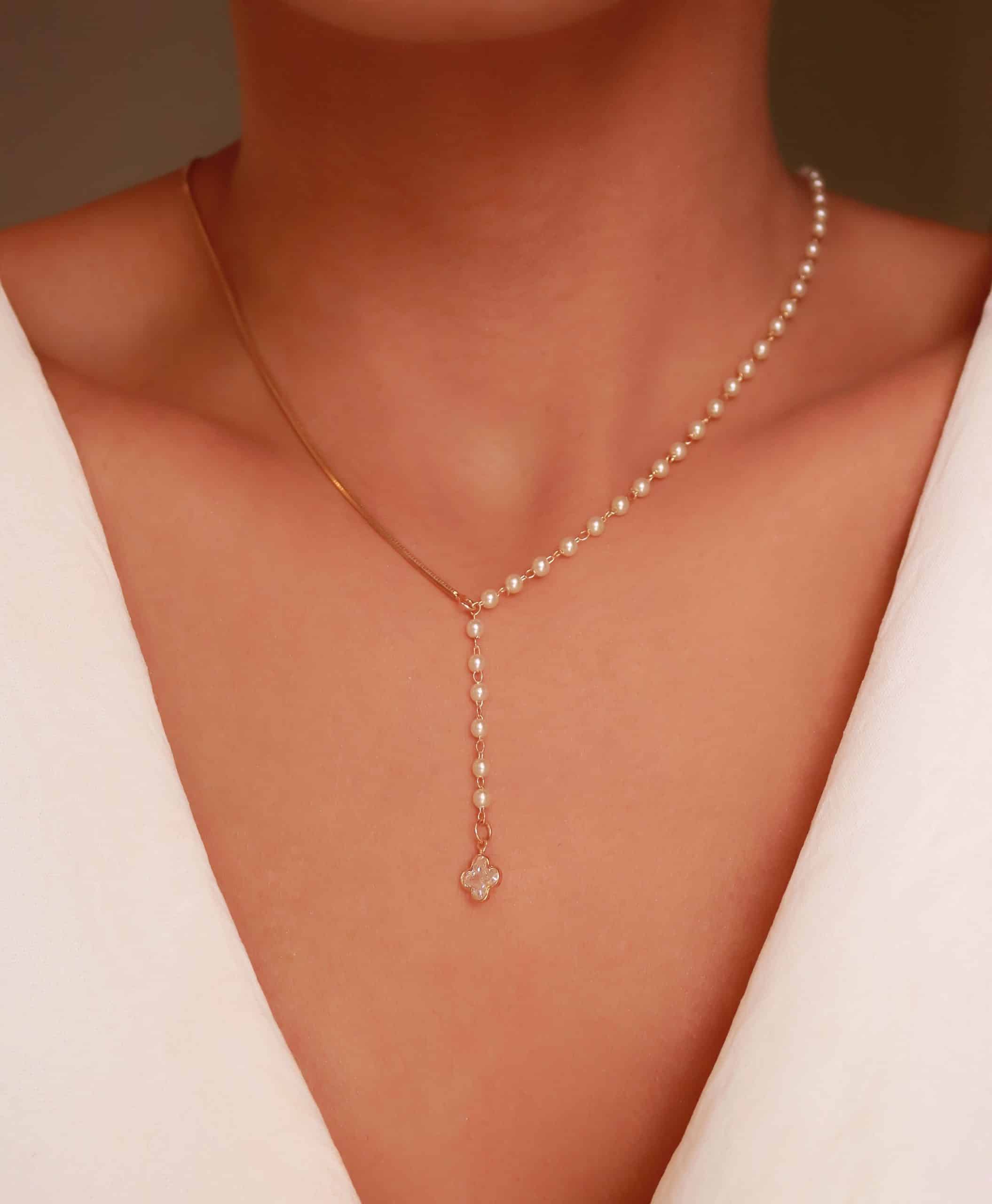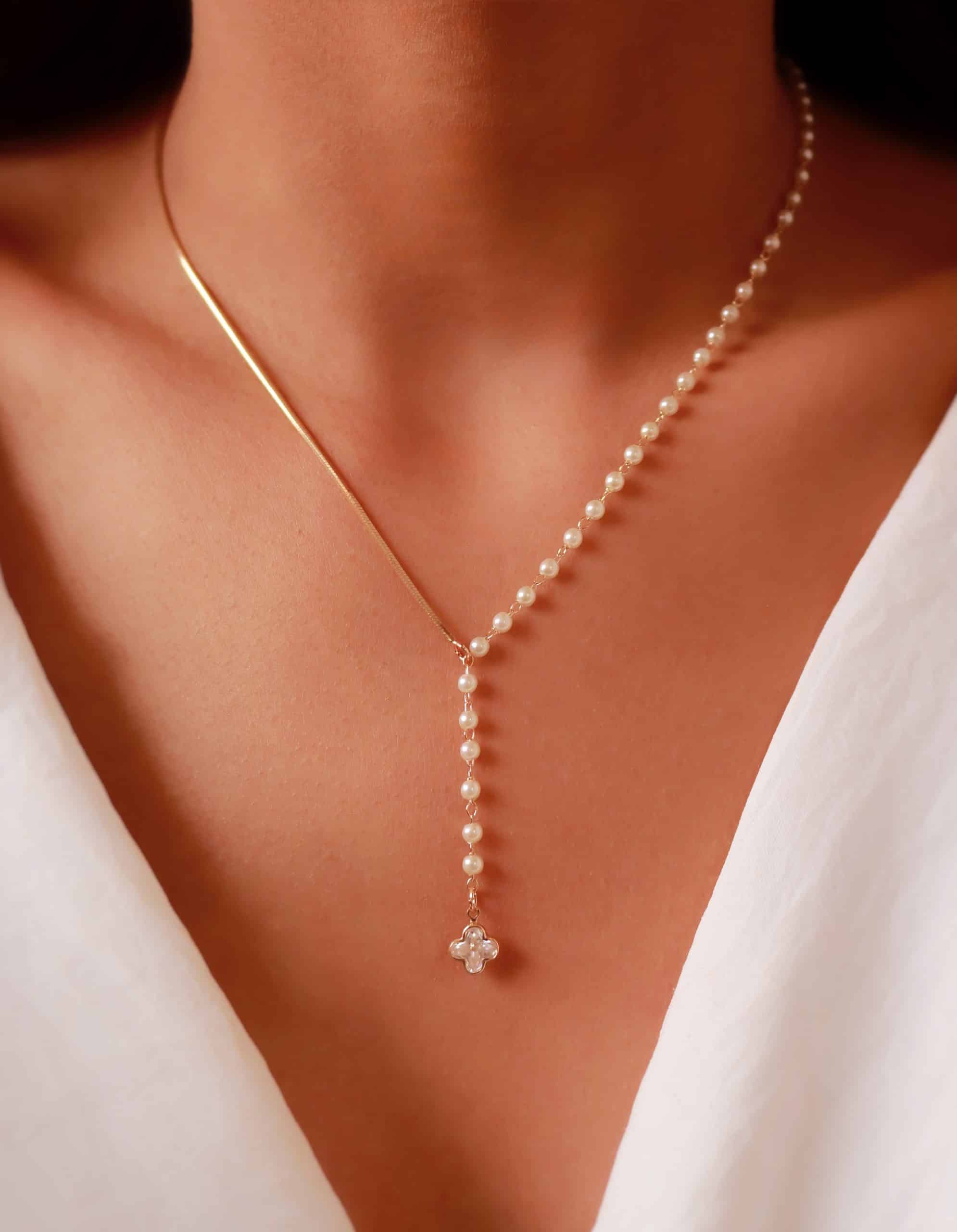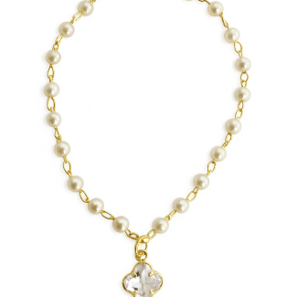 PULSEIRA PEROLA COM FLOR PENDURADA E PEROLAS PEQUENAS