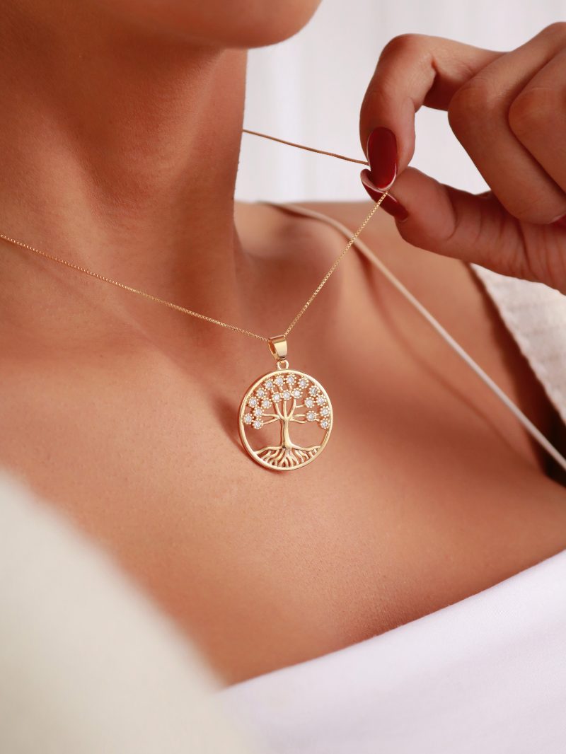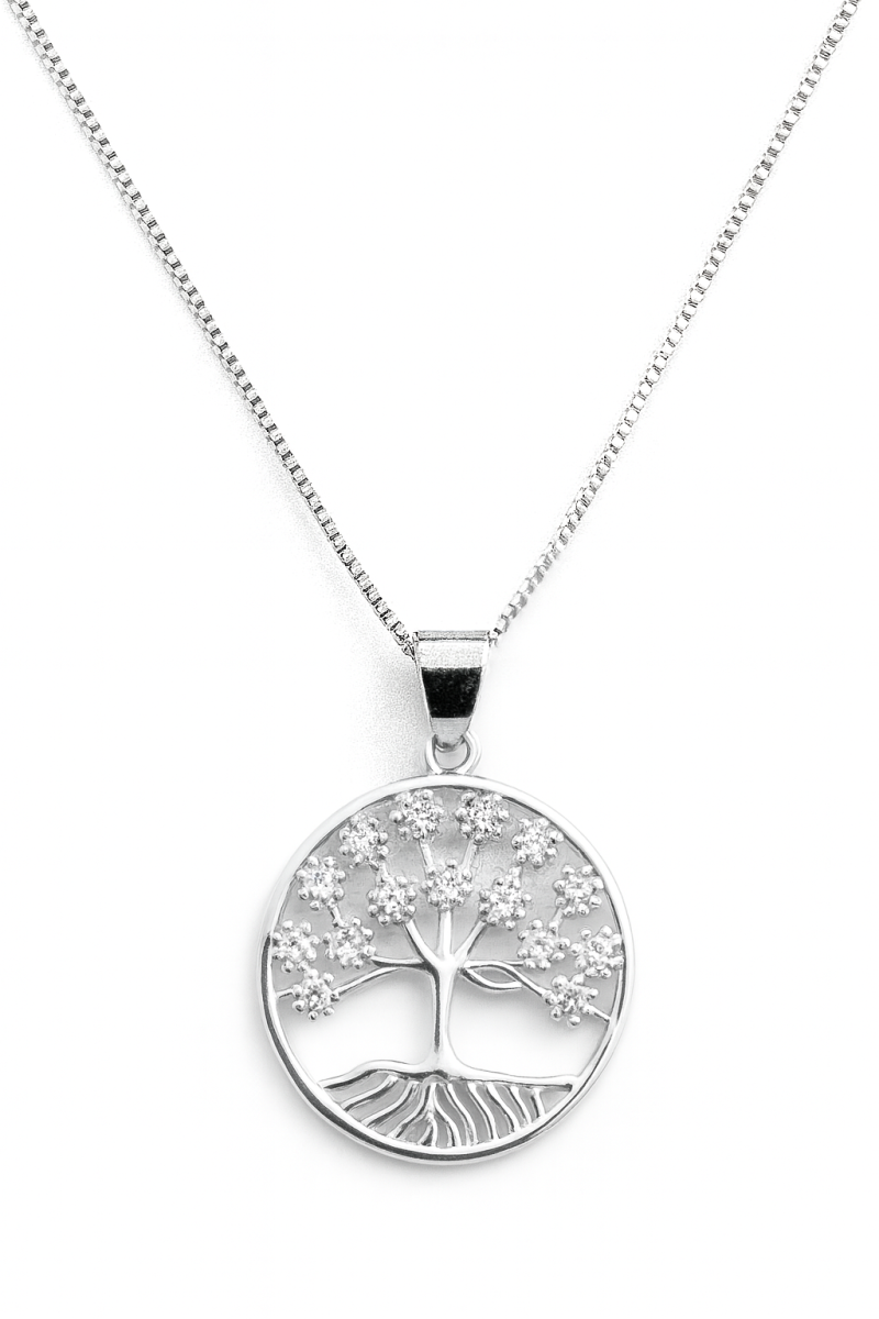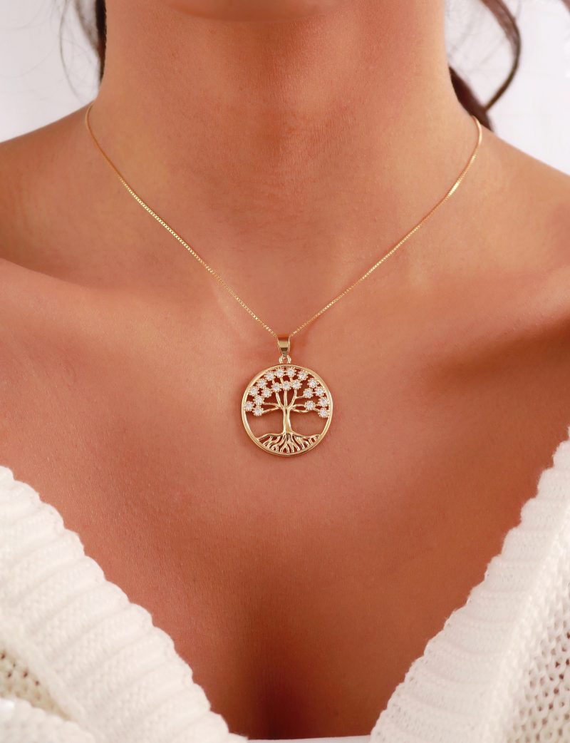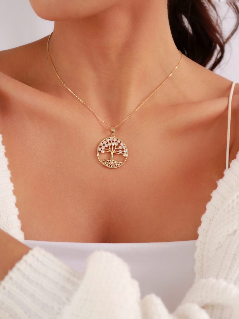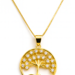 GARGANTILHA ZIRCONIA ARVORE DA VIDA LISA E COM ZIRCONIAS 40CM