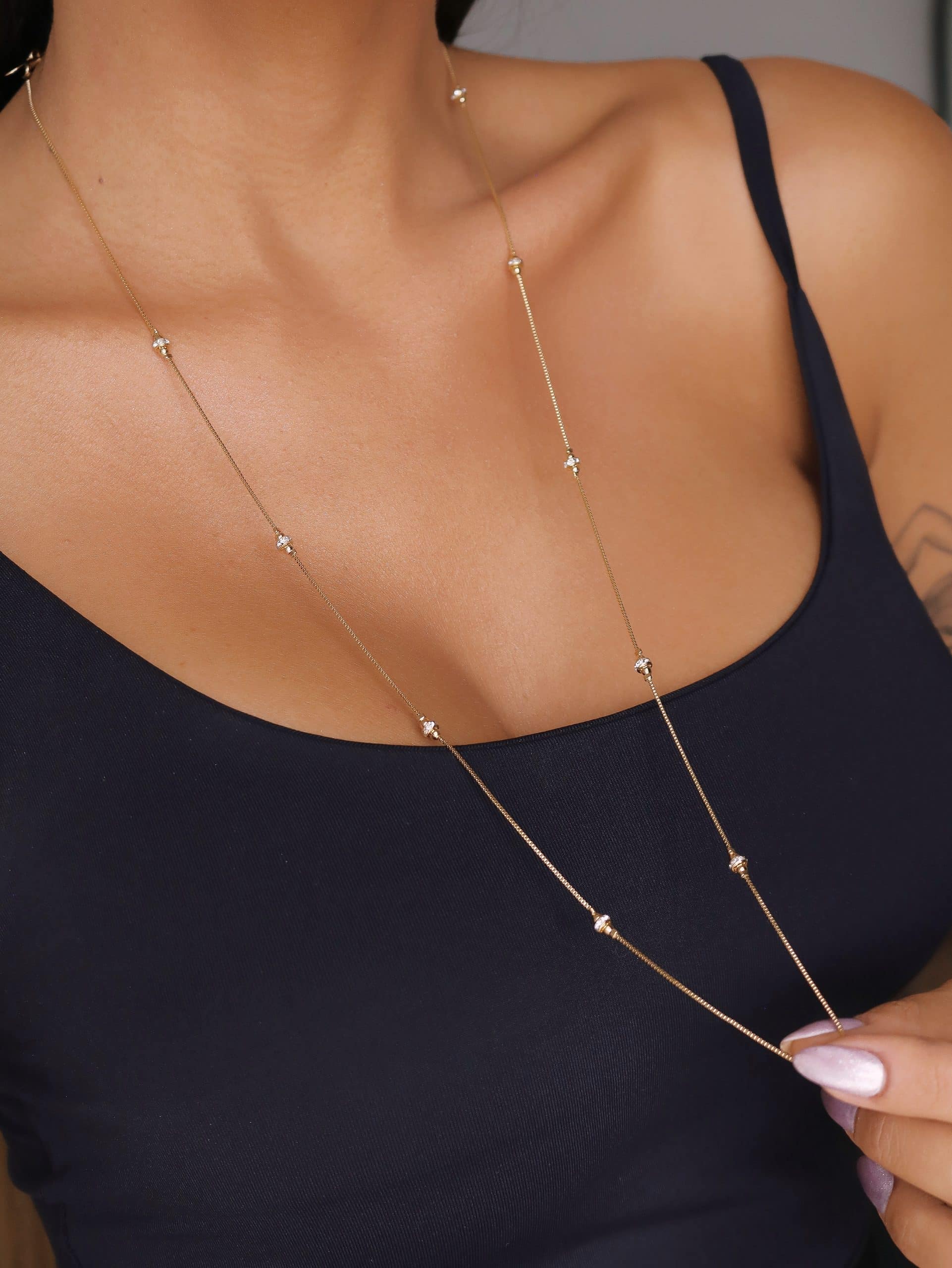 GARGANTILHA ZIRCONIA COM BOLINHAS E RODINHA CRAVEJADA 80CM