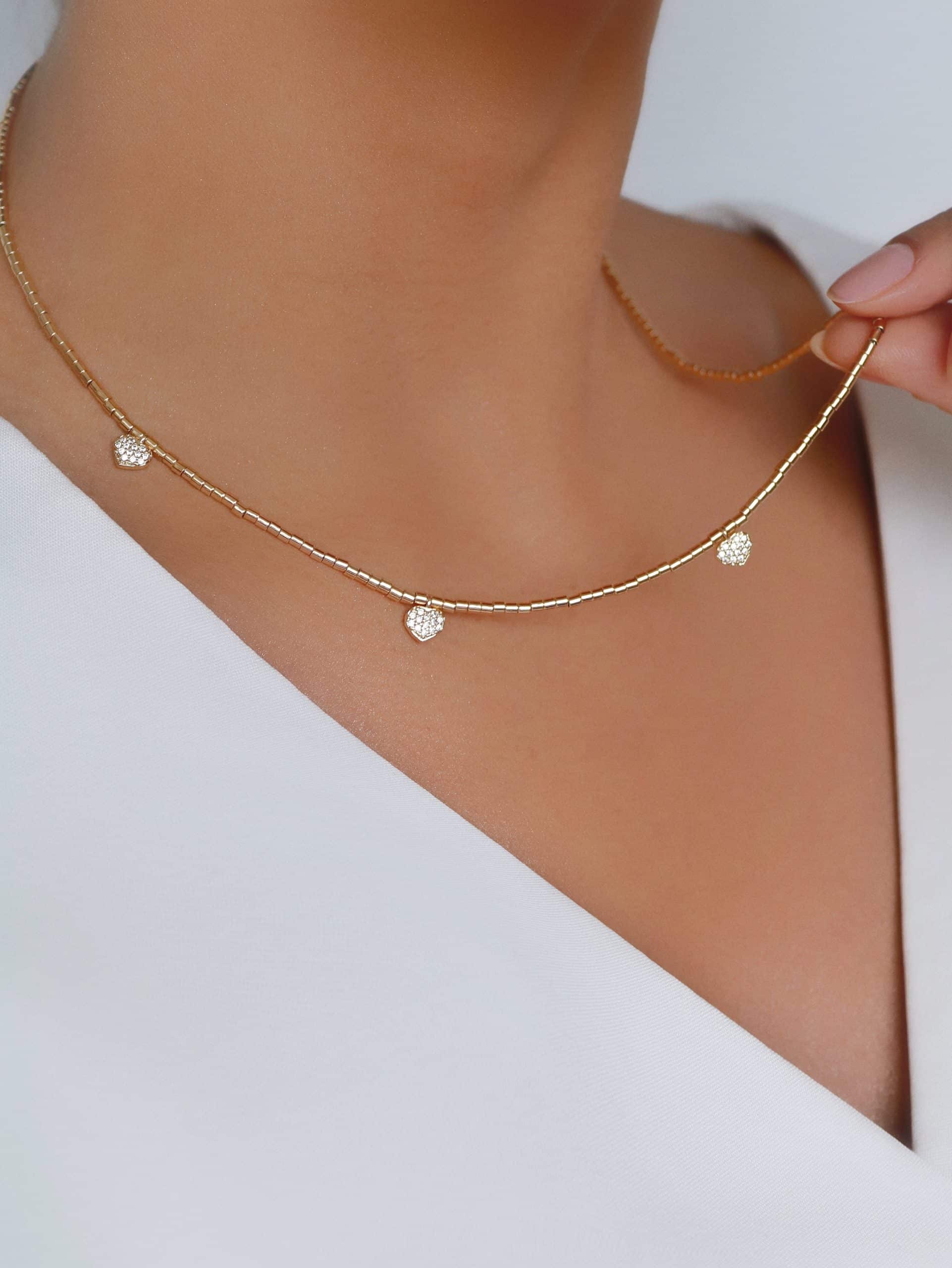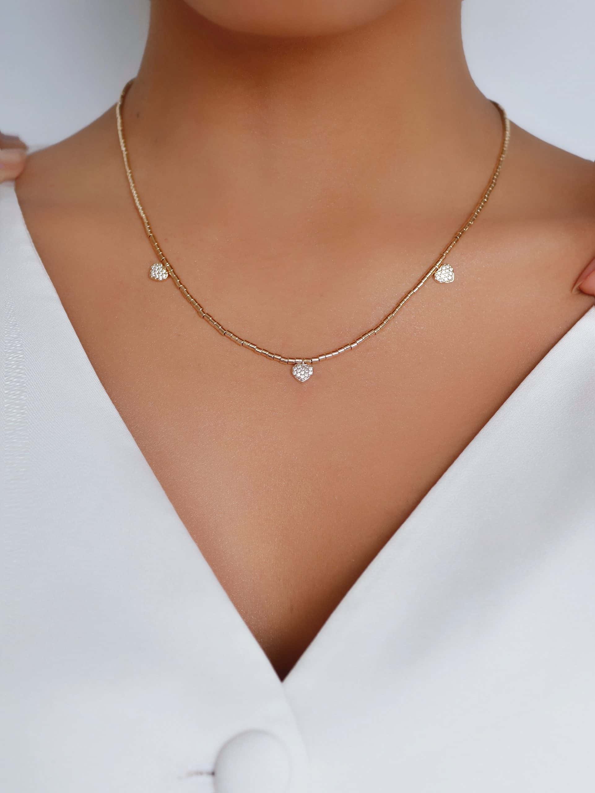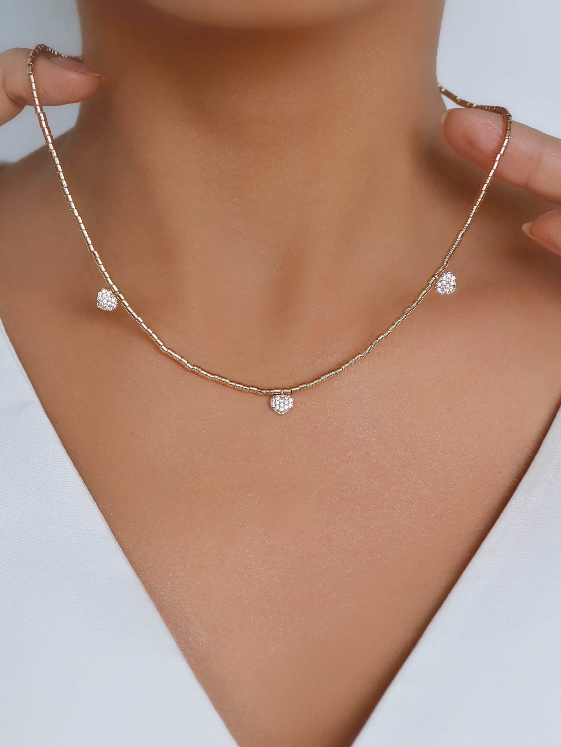 GARGANTILHA ZIRCONIA COM CANUTILHOS LISOS E CORACOES CRAVEJADOS 40CM