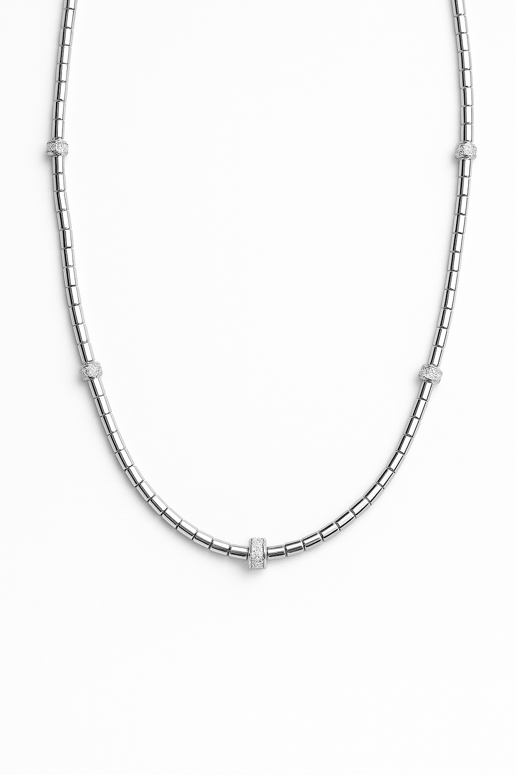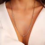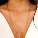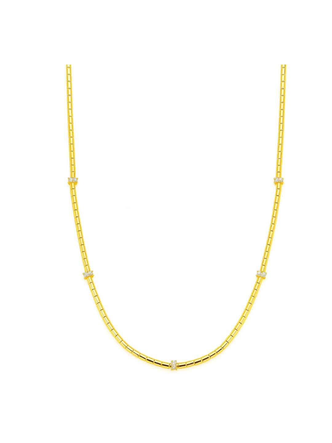 GARGANTILHA ZIRCONIA COM CINCO RODAS CRAVEJADAS E CANUTILHO FINO 50CM