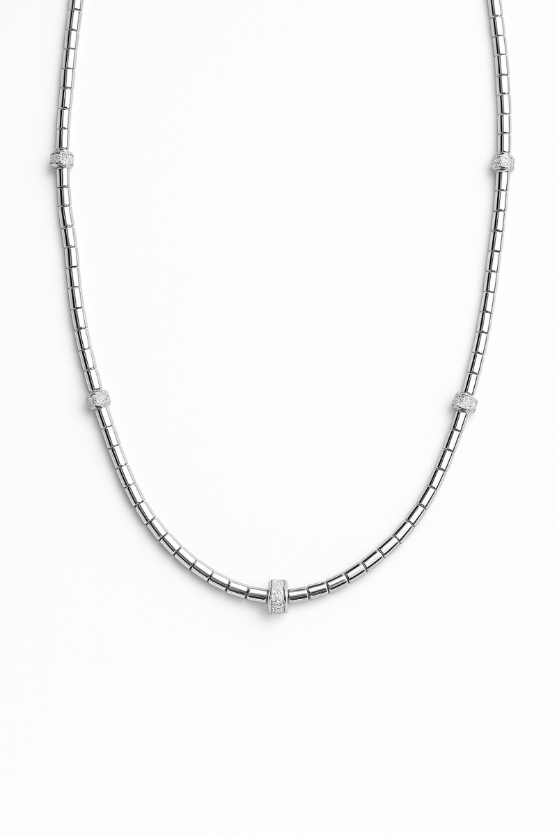 GARGANTILHA ZIRCONIA COM CINCO RODAS E CANUTILHO FINO 35CM