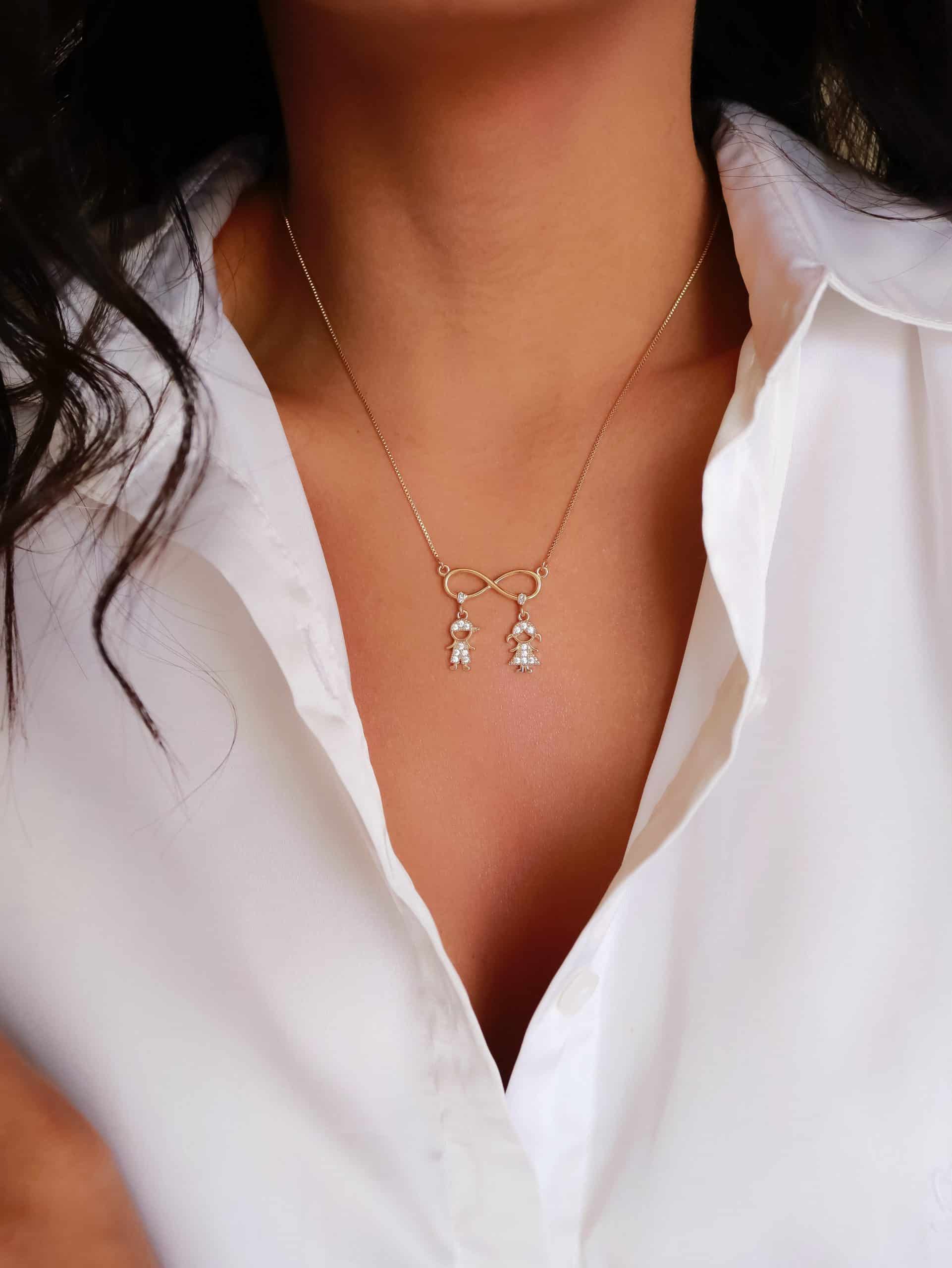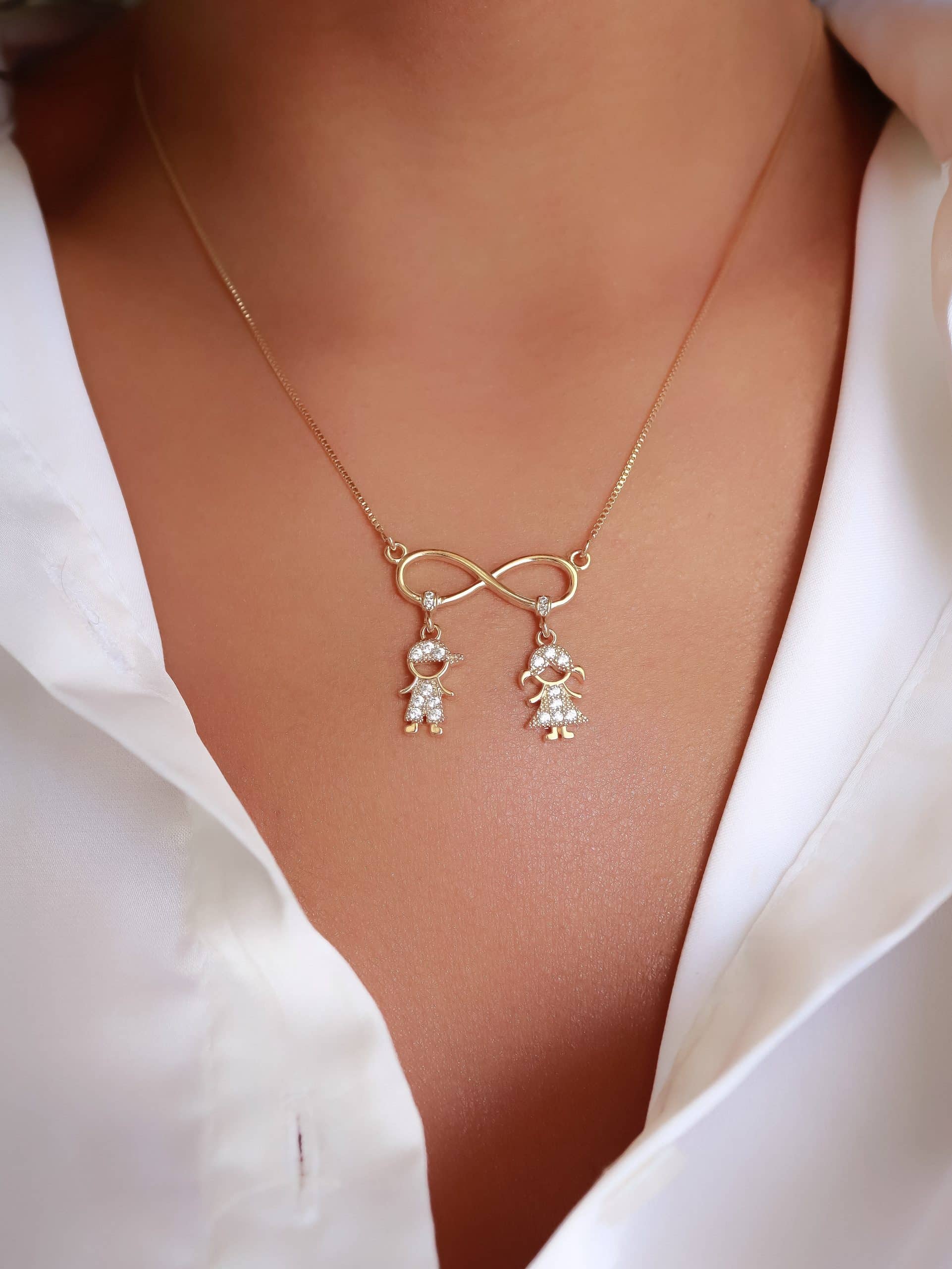 GARGANTILHA ZIRCONIA FILHOS COM SIMBOLO INFINITO E CORACAO 45CM
