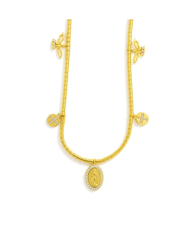 GARGANTILHA ZIRCONIA COM NOSSA SENHORA DAS GRAÇAS E CRUZ E ESPIRITO SANTO CANUTILHO FINO 40CM