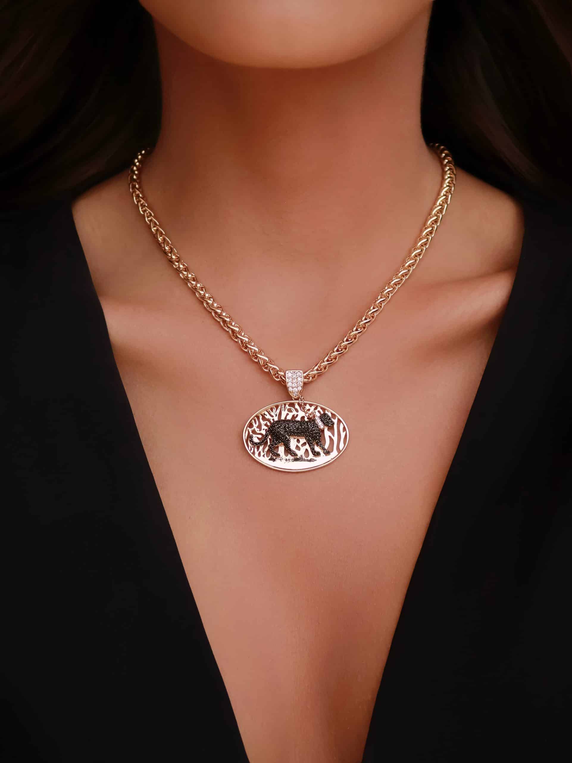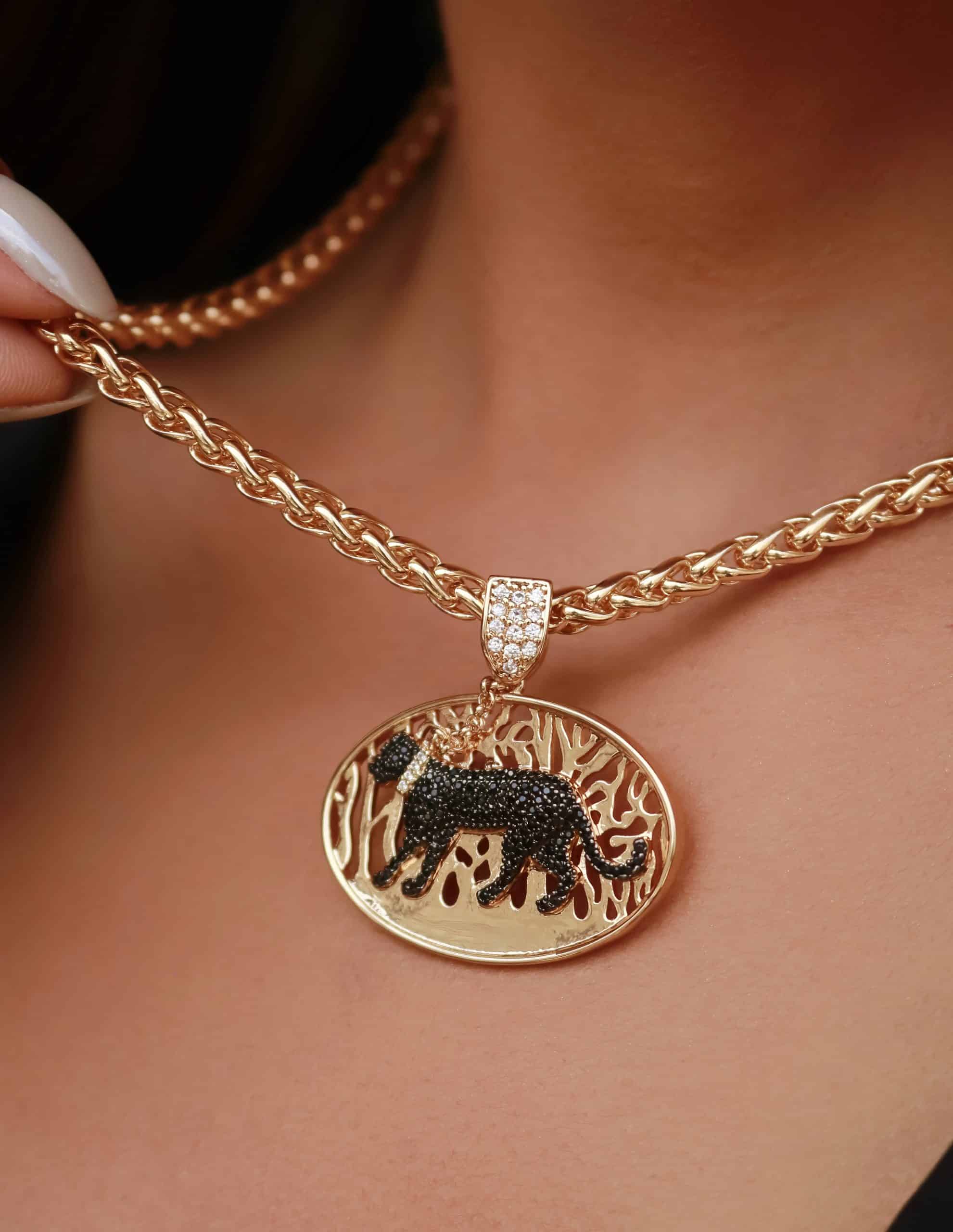 GARGANTILHA ZIRCONIA COM PANTERA NEGRA E CORRENTE ENTRELACADA 40CM