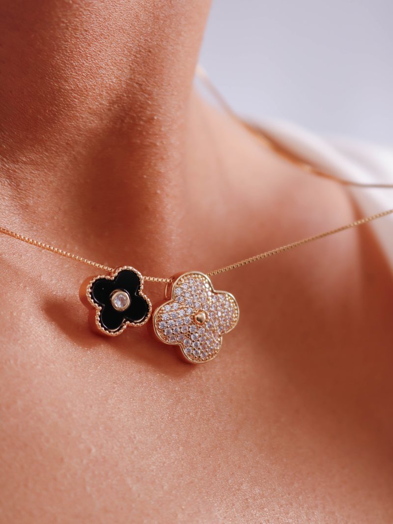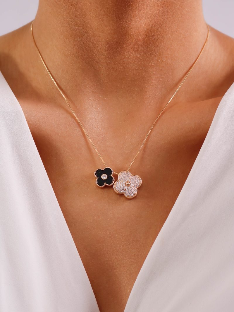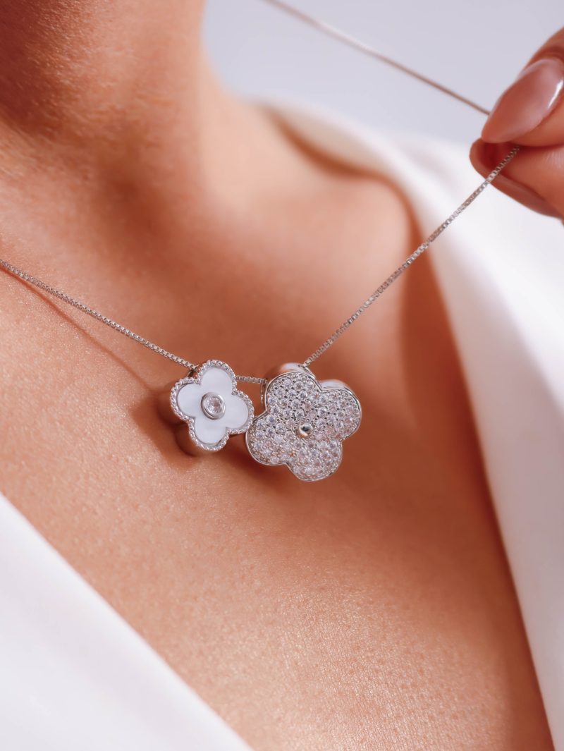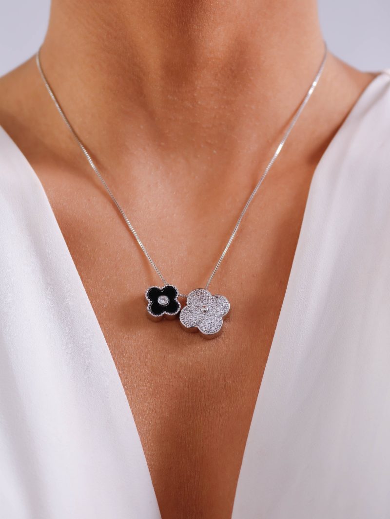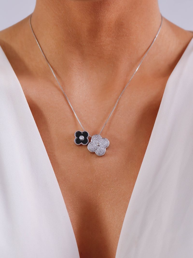 GARGANTILHA ZIRCONIA COM UMA FLOR RESINA E A OUTRA TODA CRAVEJADA MAIOR 40CM