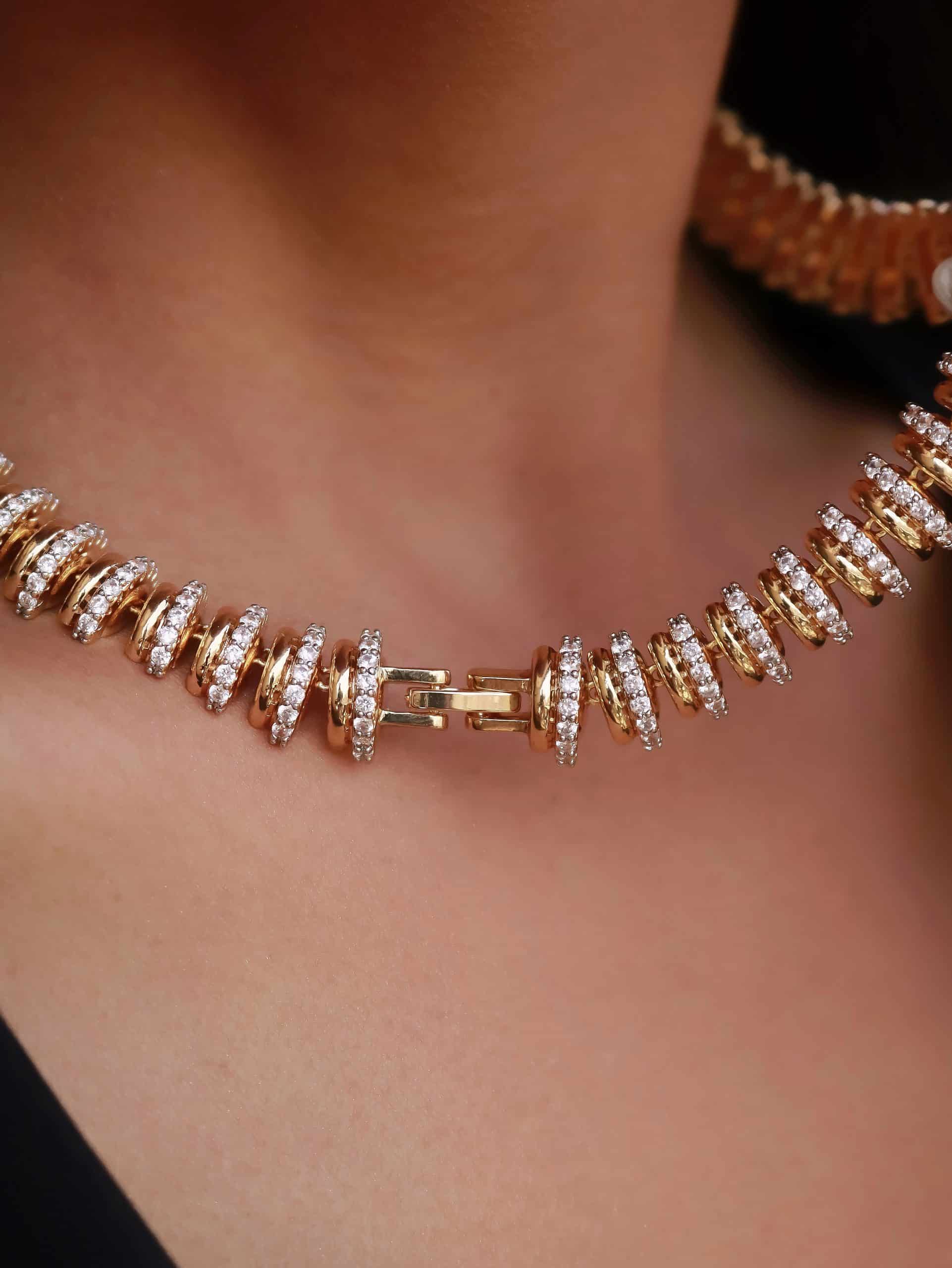 GARGANTILHA ZIRCONIA COM VARIAS FAIXAS CRAVEJADAS E LISAS GROSSA 11.7 MM 40CM