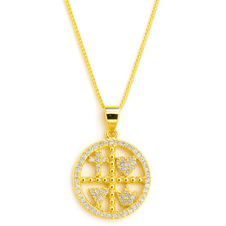 GARGANTILHA ZIRCONIA CRUZ E ESPIRITO SANTO E CALICE E COROA 40CM