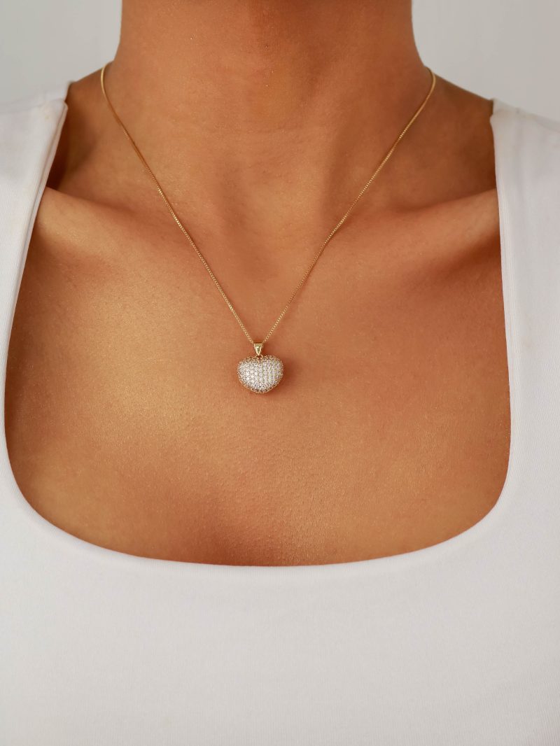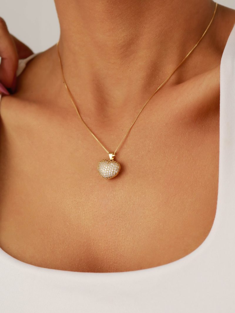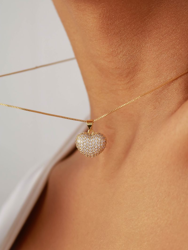 GARGANTILHA ZIRCONIA CORACAO ABAULADO PEQUENO 12.7 MM 40CM