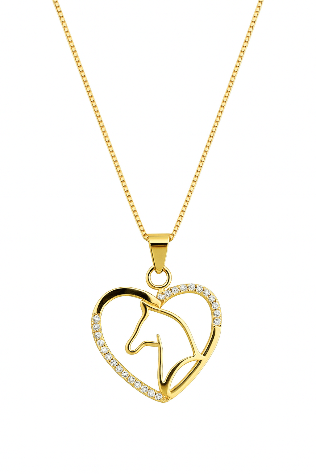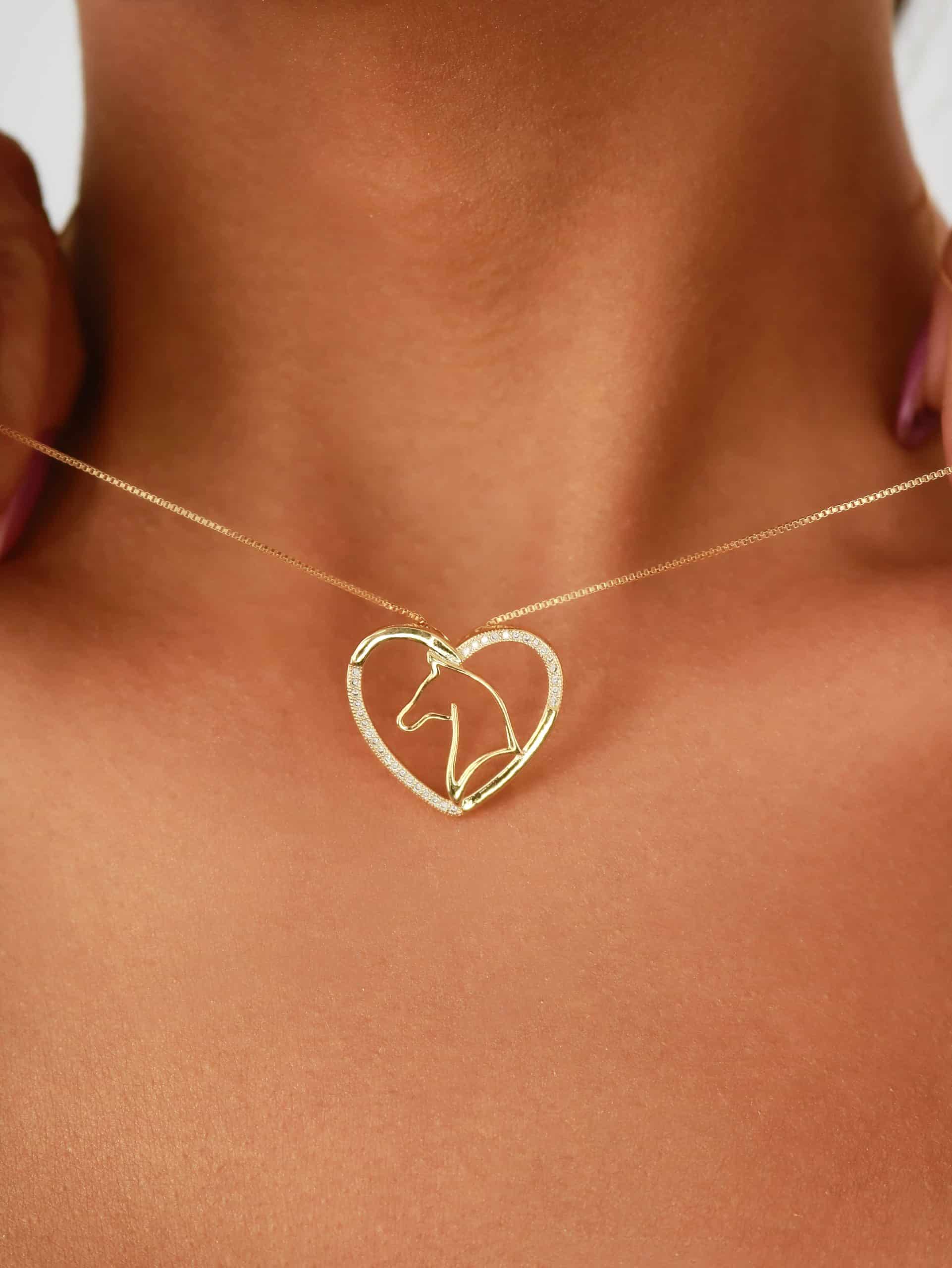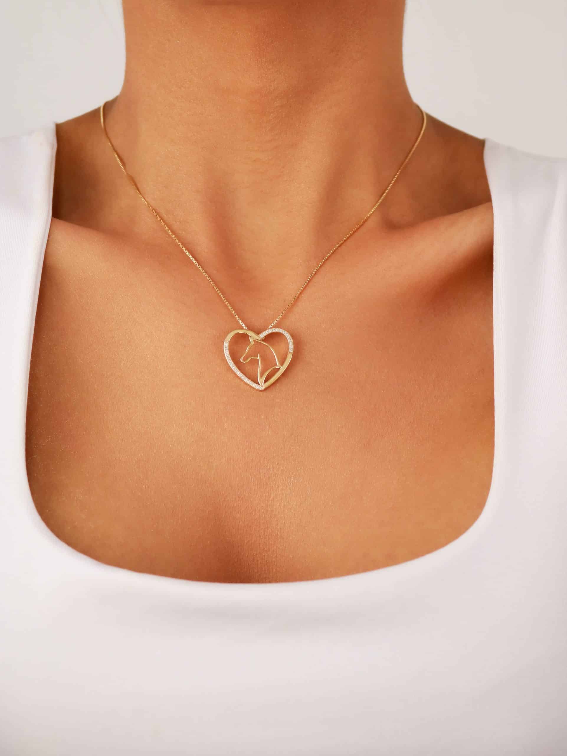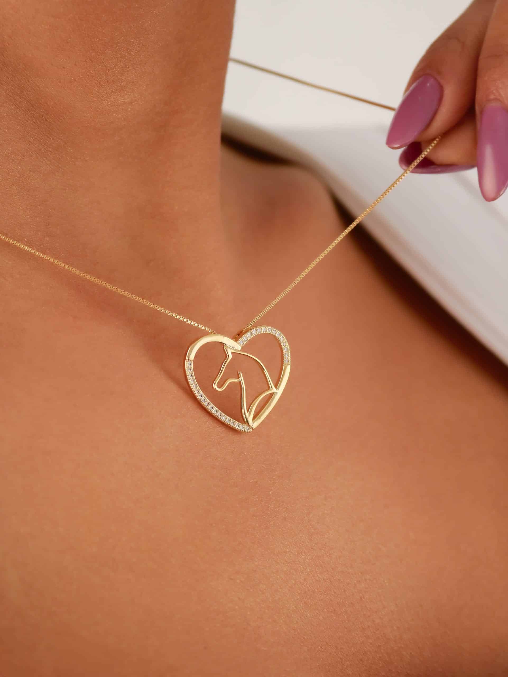 GARGANTILHA ZIRCONIA CORACAO COM CAVALO DENTRO VAZADO LISO 40CM