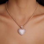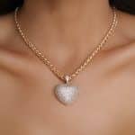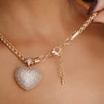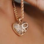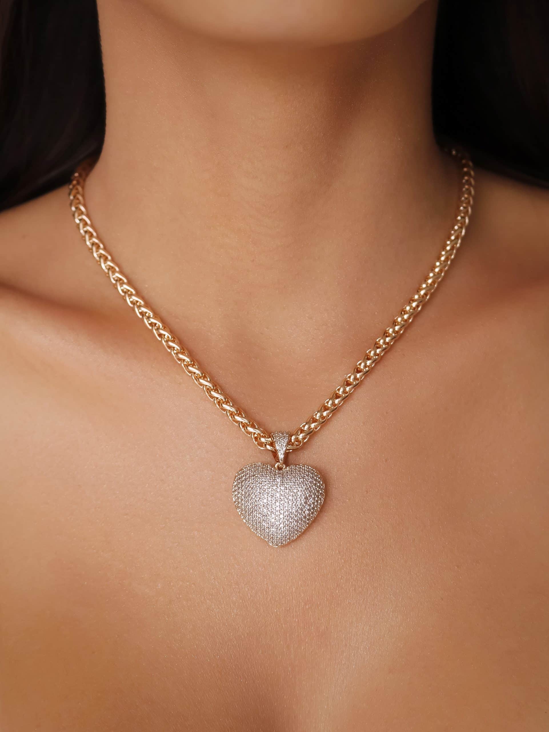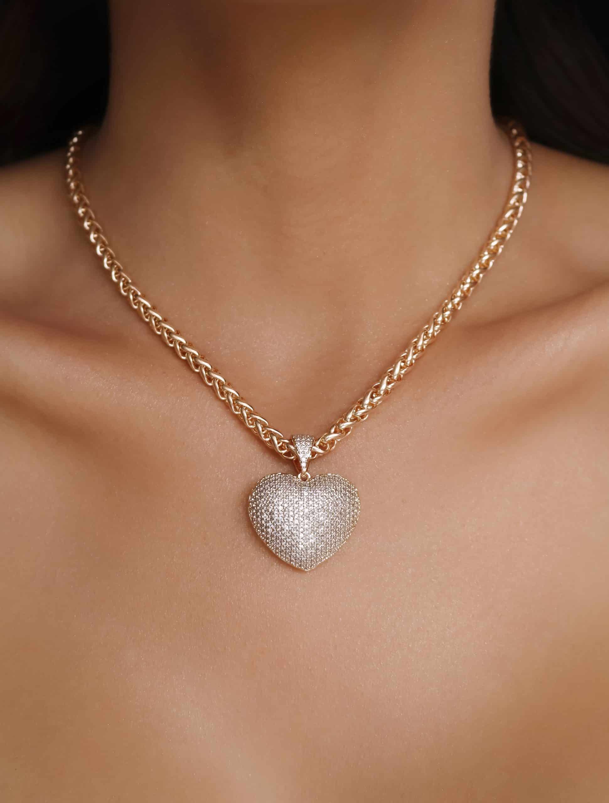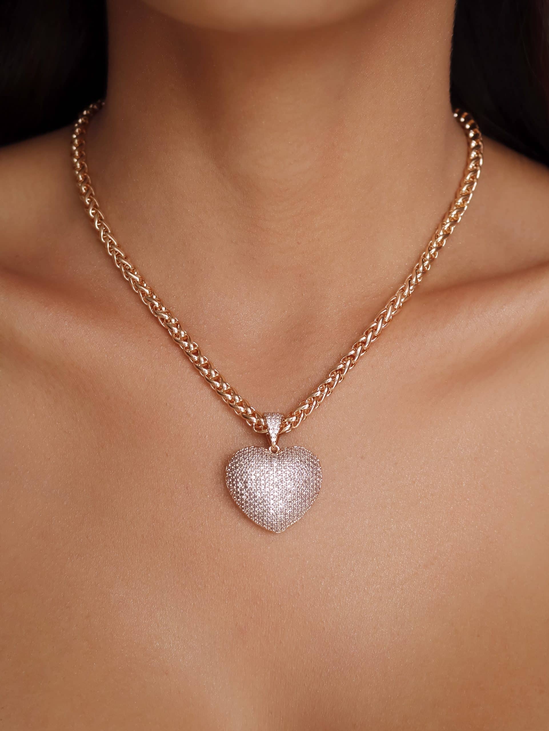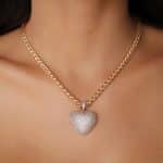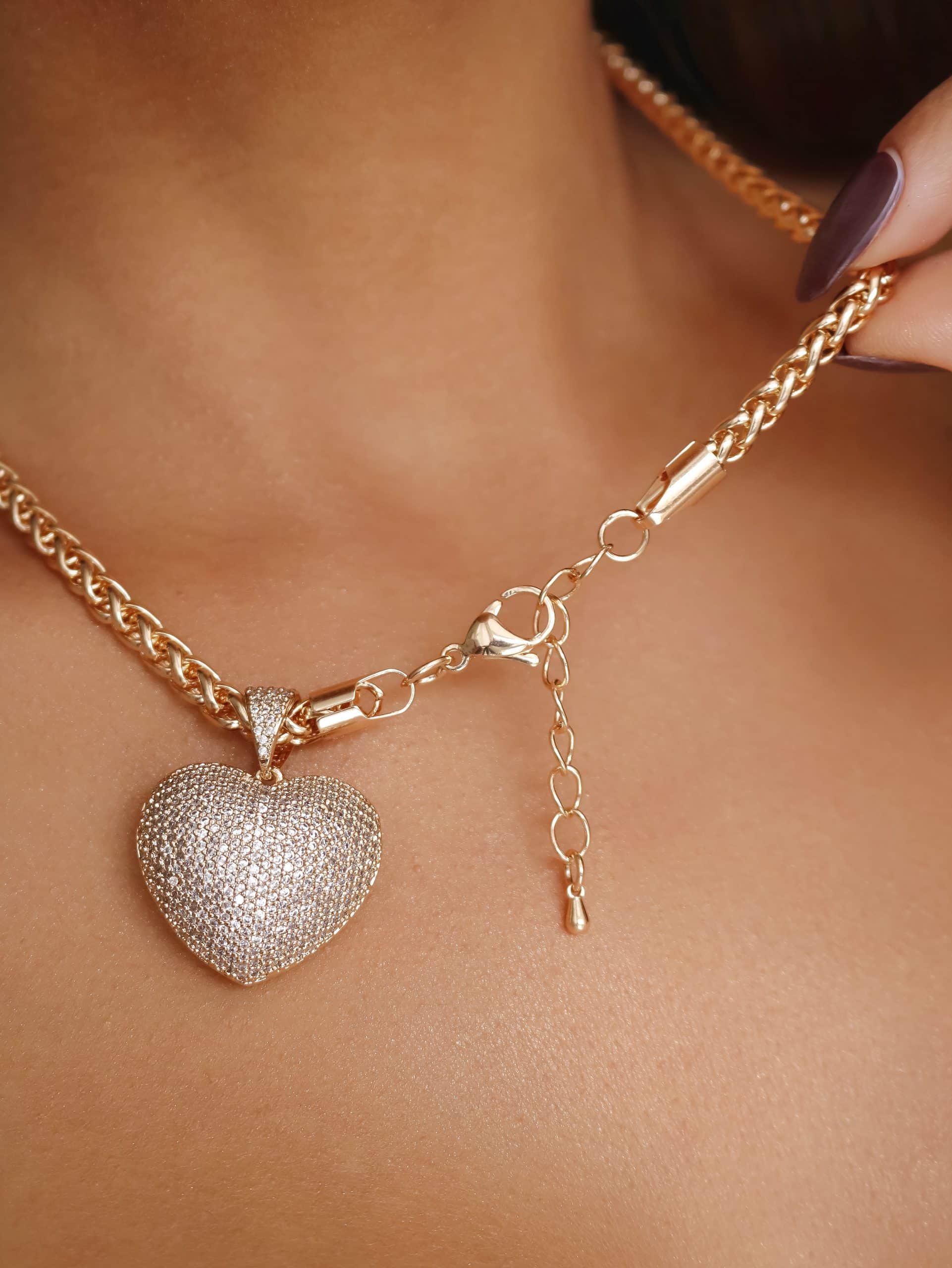 GARGANTILHA ZIRCONIA CORACAO CRAVEJADO VAZADO ATRAS E CORRENTE LISA TORCIDA 40CM