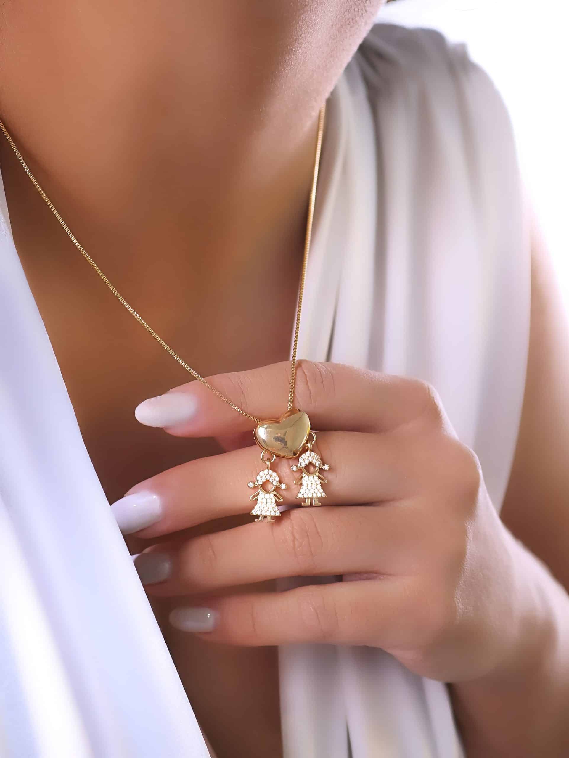 GARGANTILHA ZIRCONIA CORACAO LISO FILHOS 45CM