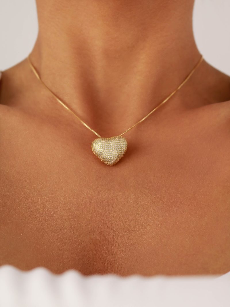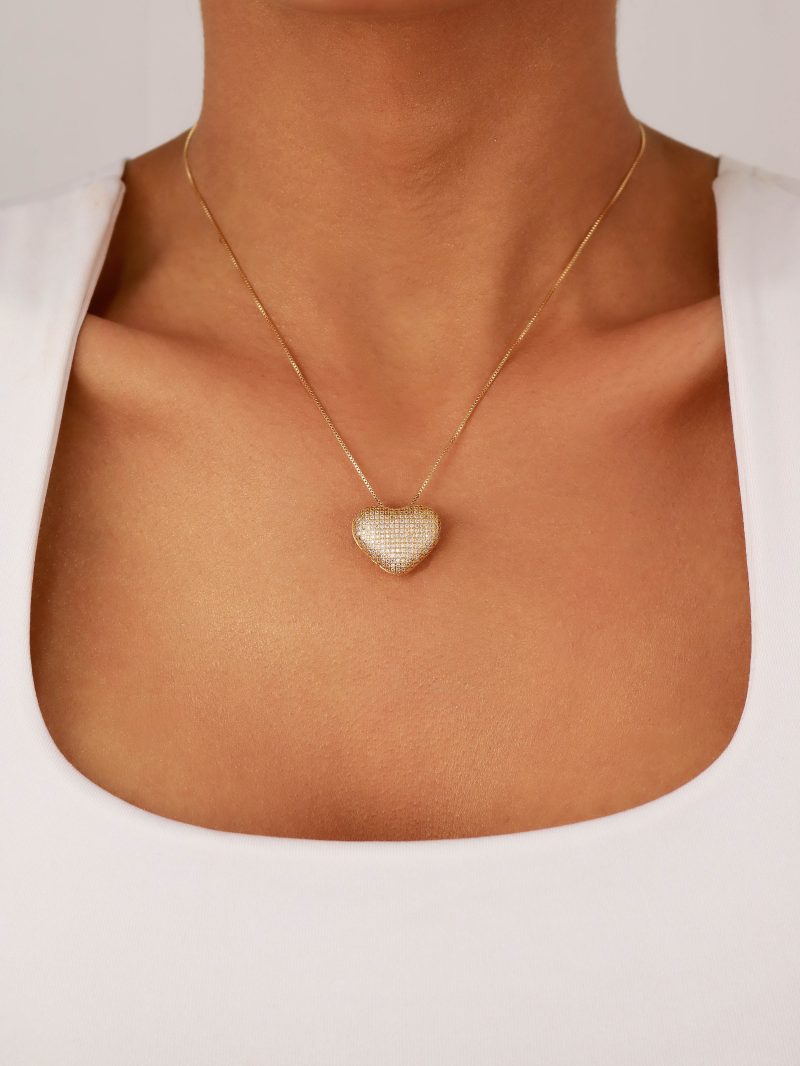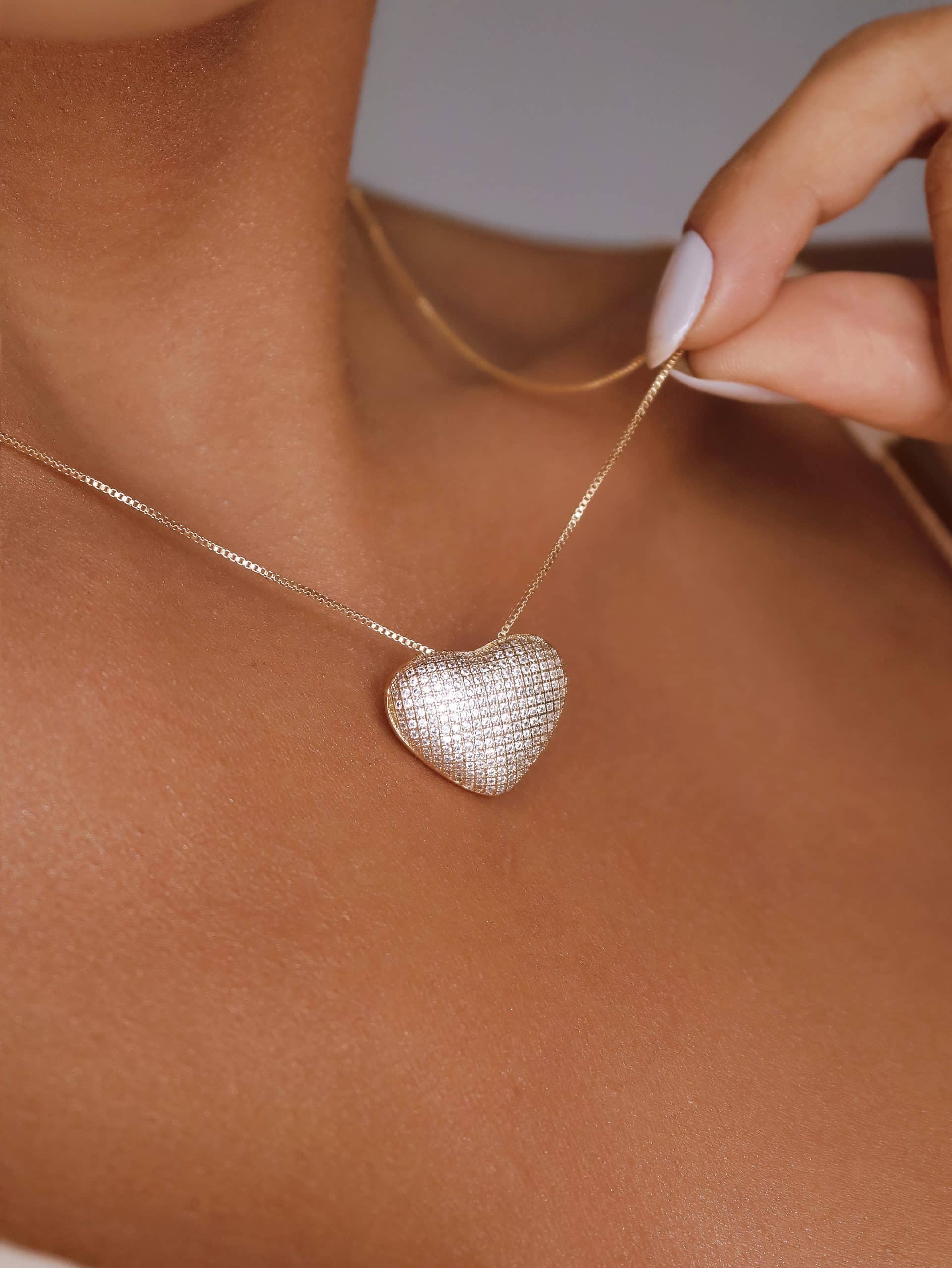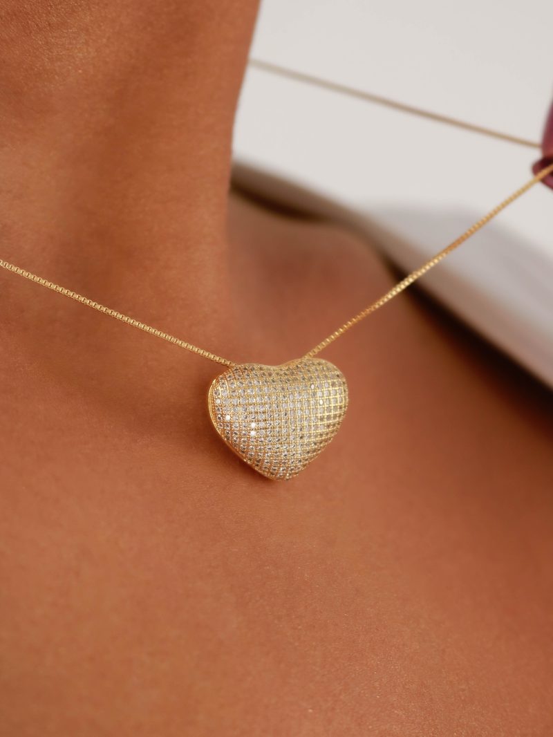 GARGANTILHA ZIRCONIA CORACAO TODO CRAVEJADO ABAULADO 40CM
