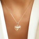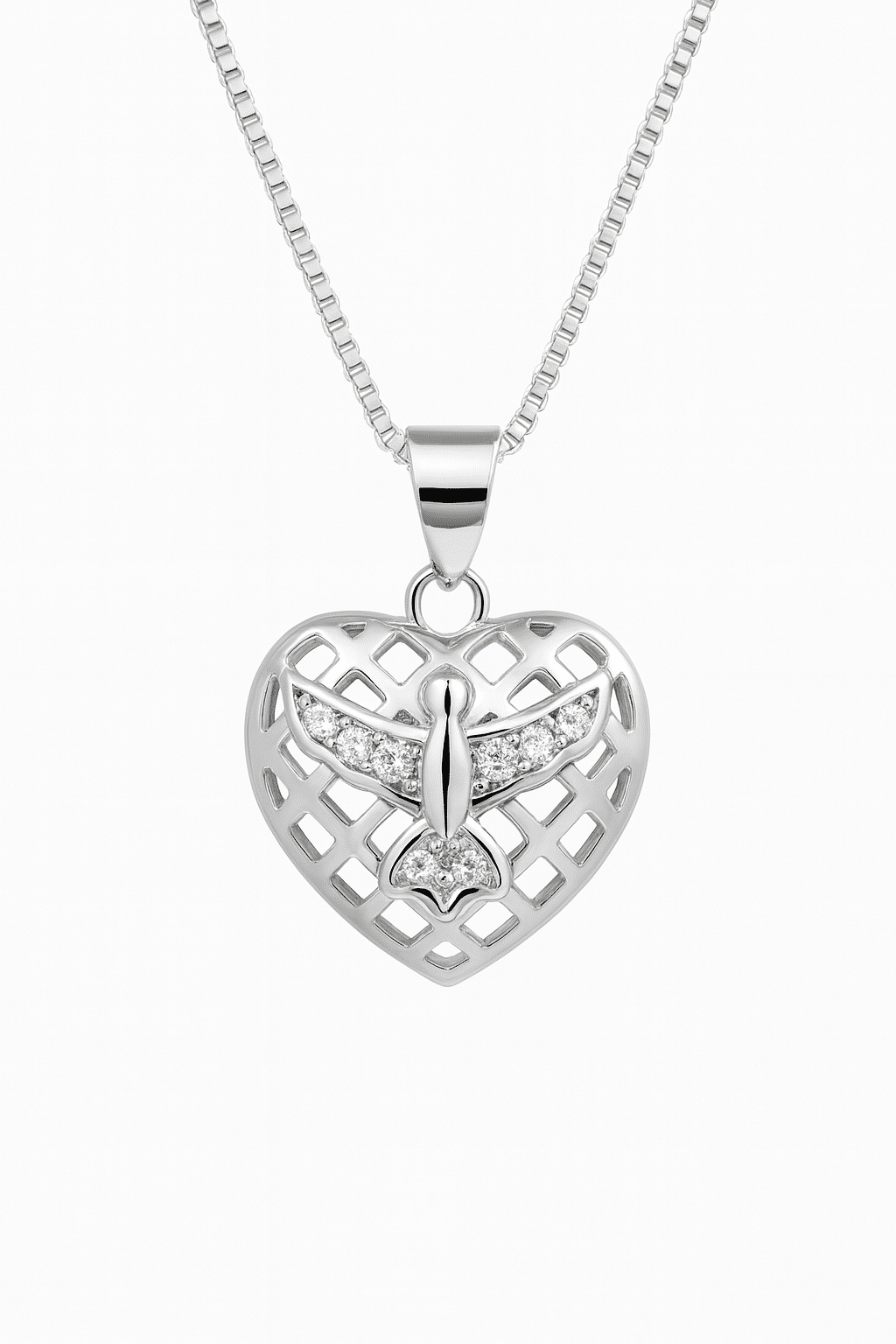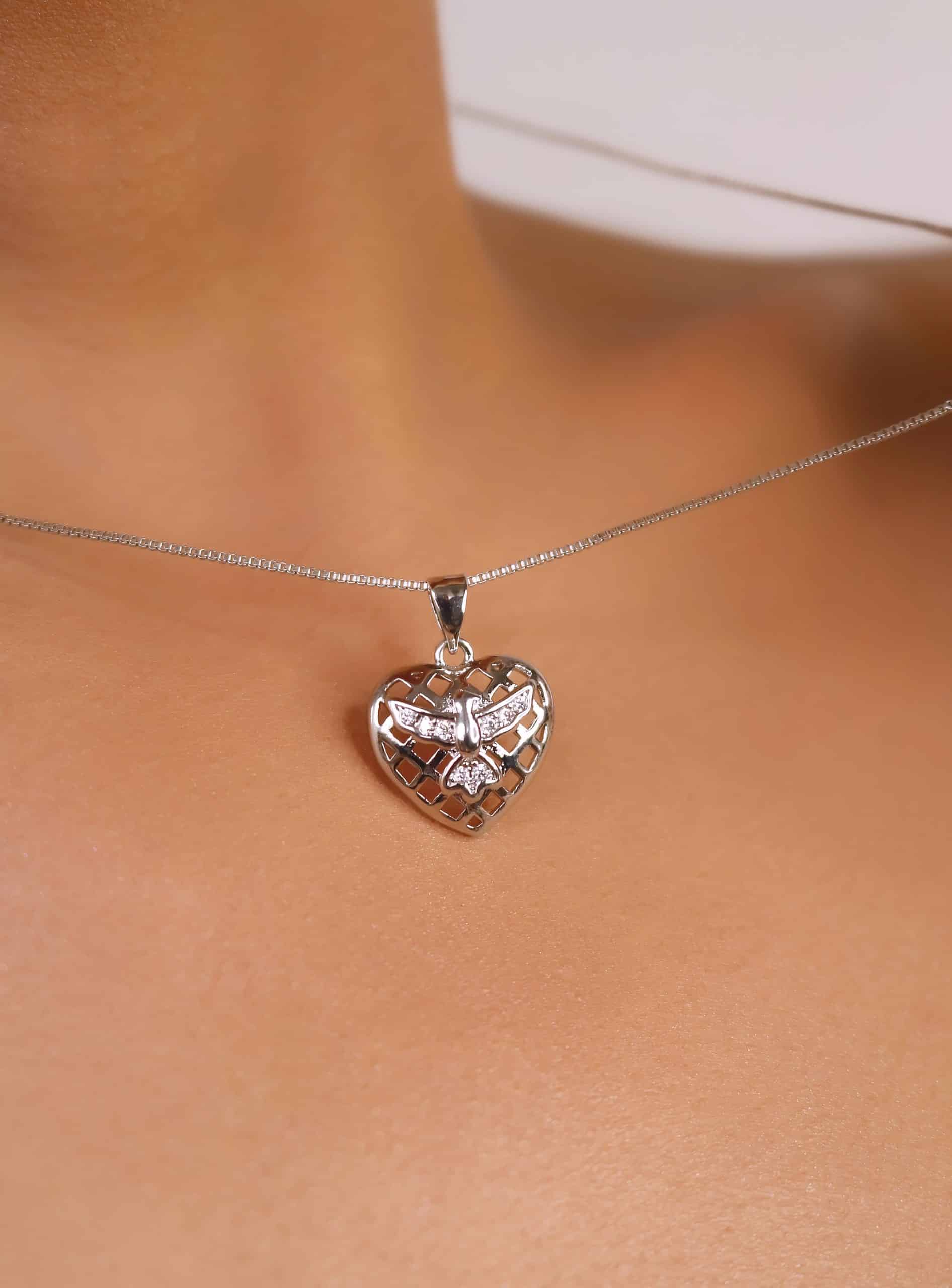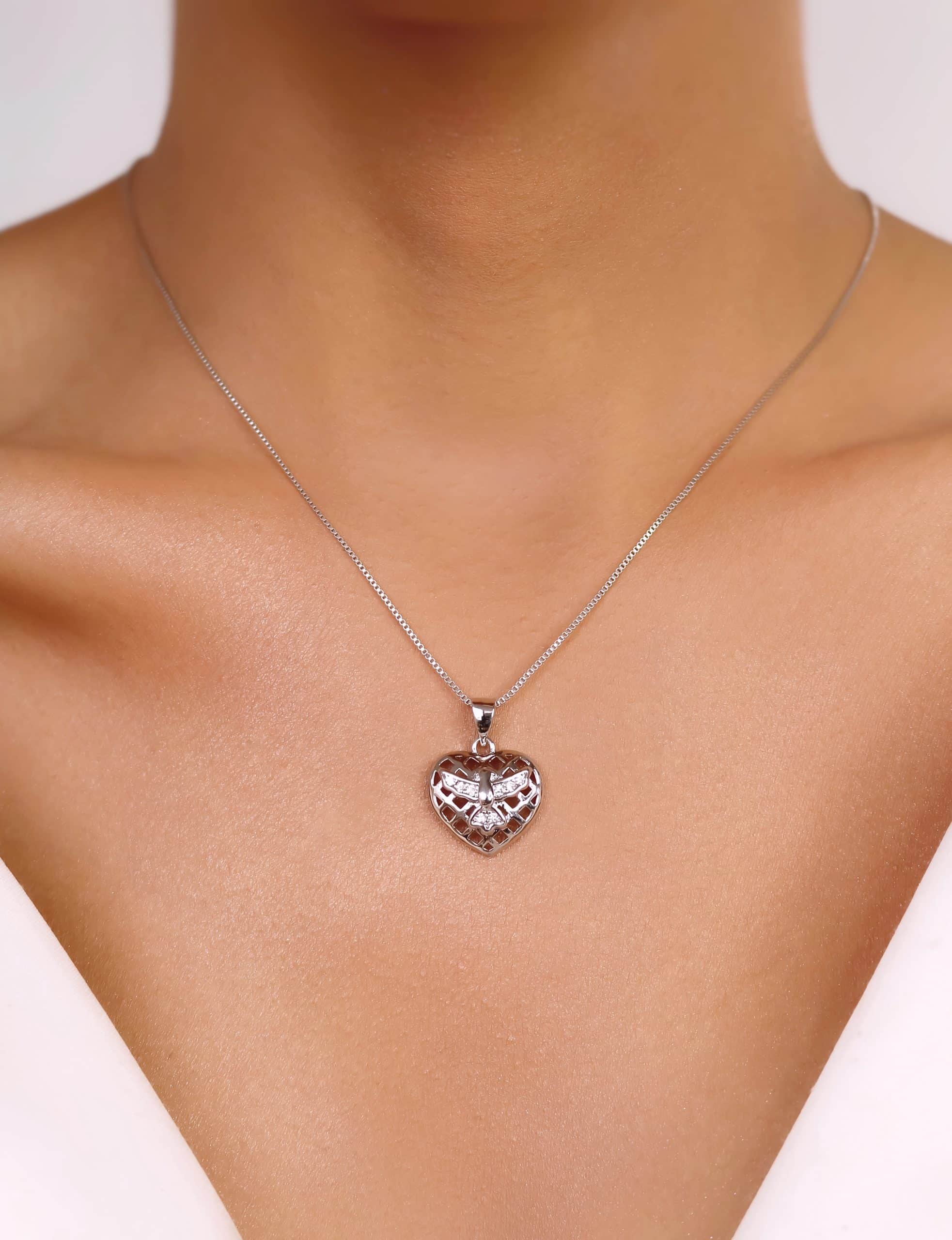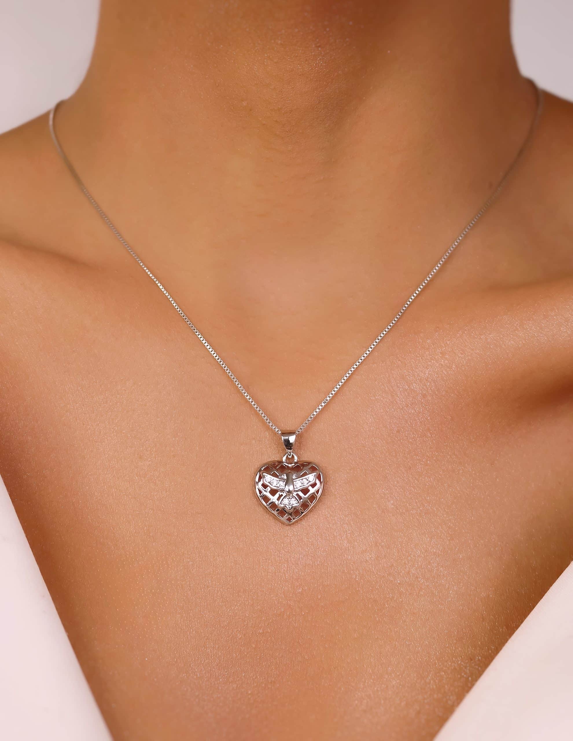 GARGANTILHA ZIRCONIA CORACAO TRABALHADO ESPIRITO SANTO CRAVEJADO 40CM
