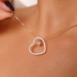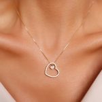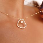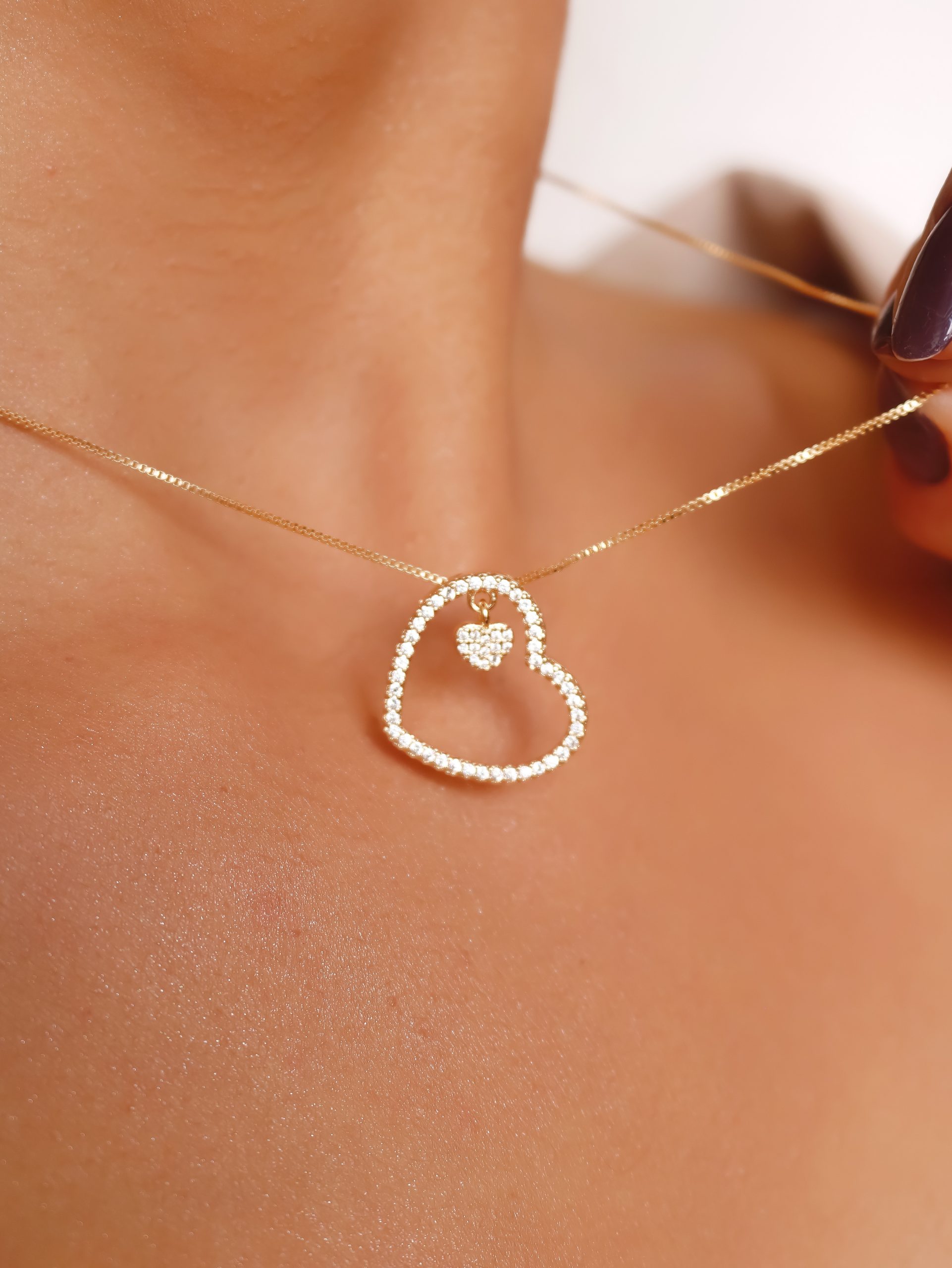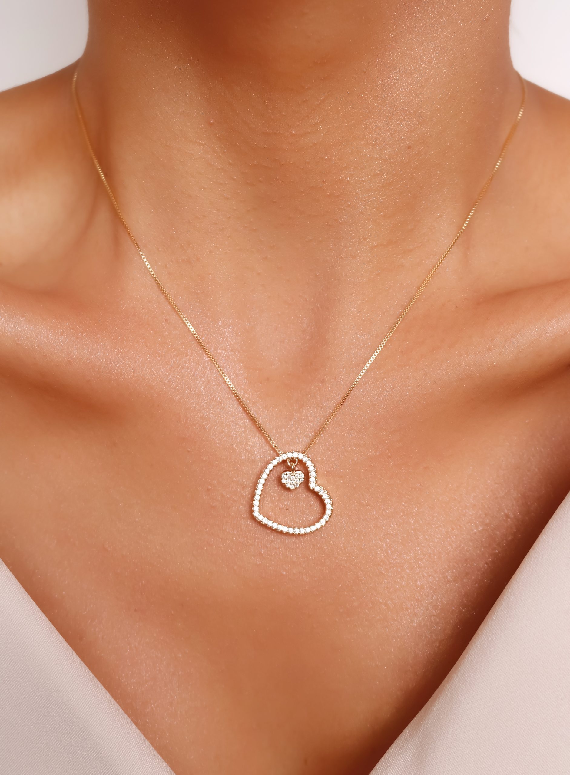 GARGANTILHA ZIRCONIA CORACAO VAZADO COM UM CORACAO PEQUENO DENTRO 40CM